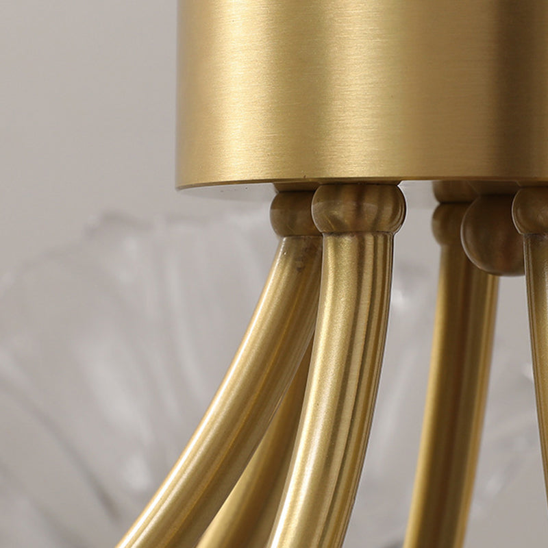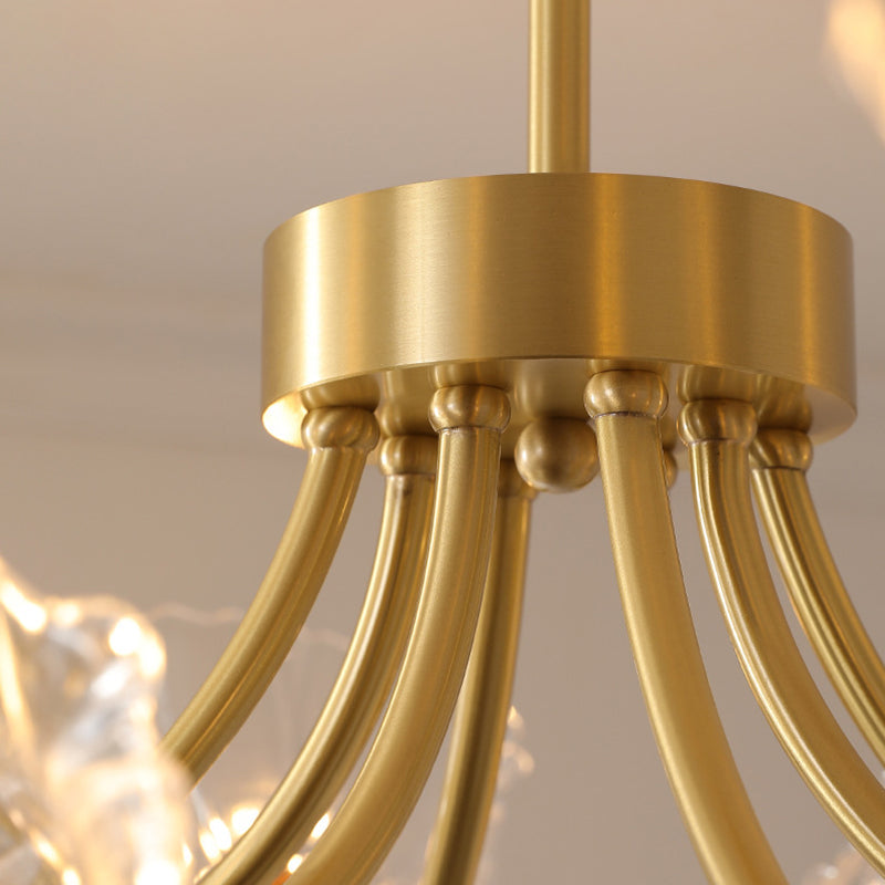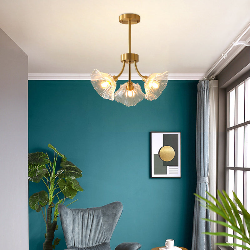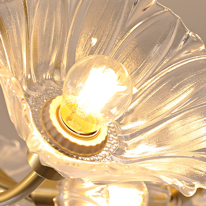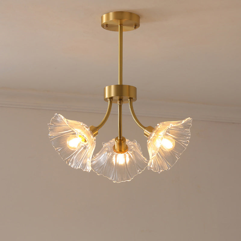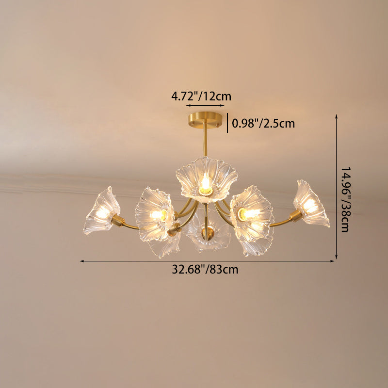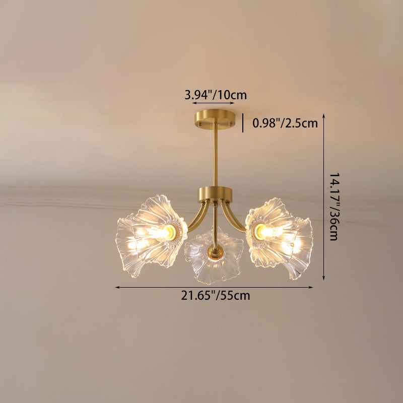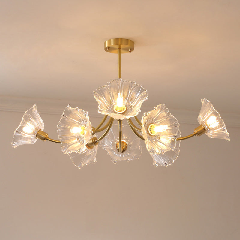 Traditional French Branch Flower Curved Glass Brass 3/5/8 Light Chandelier For Living Room