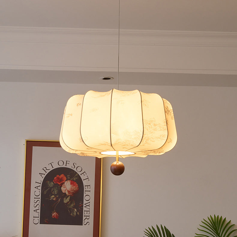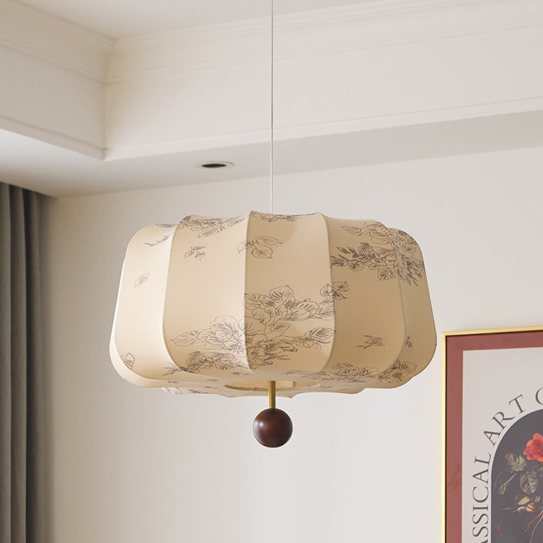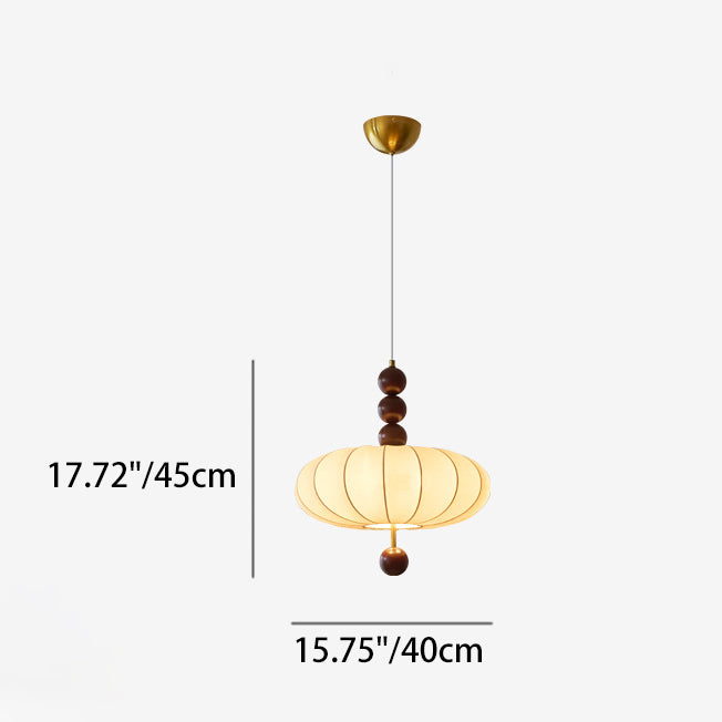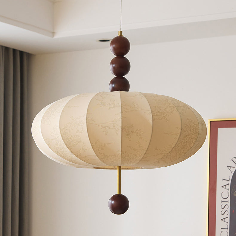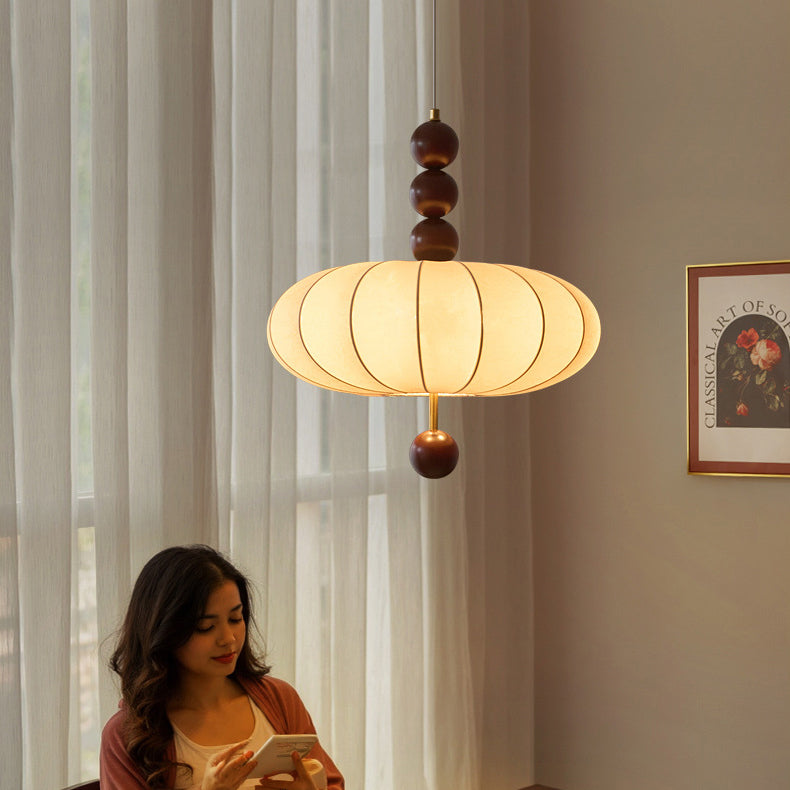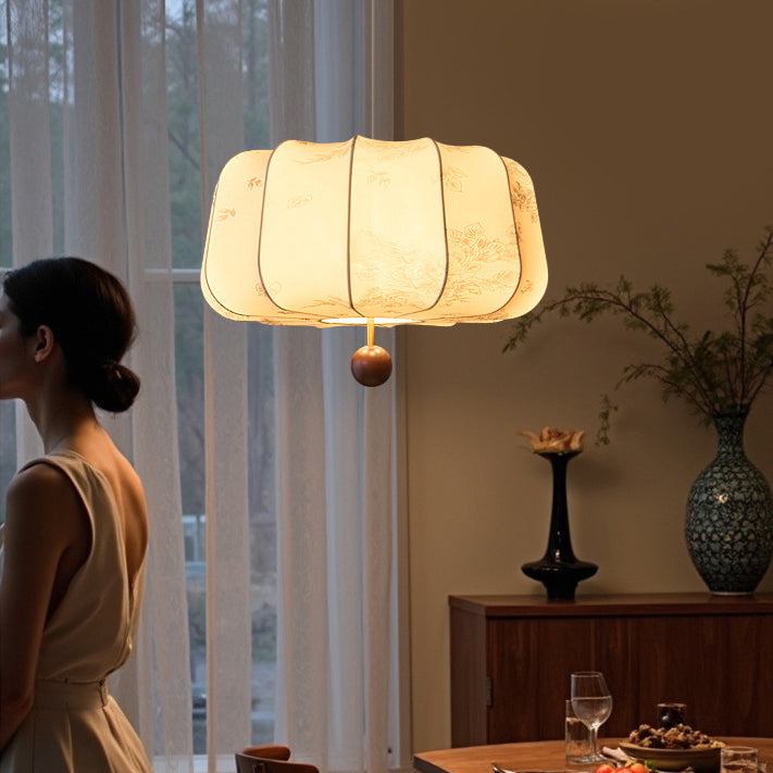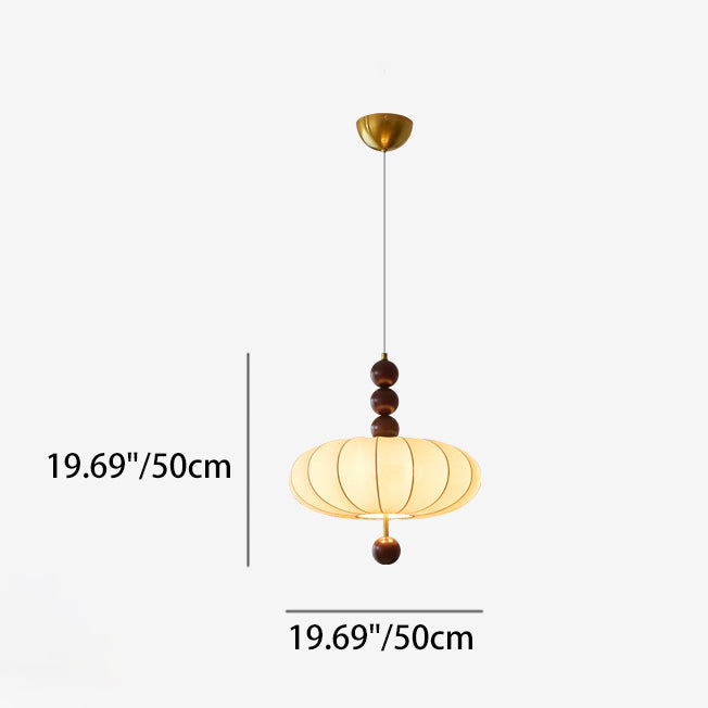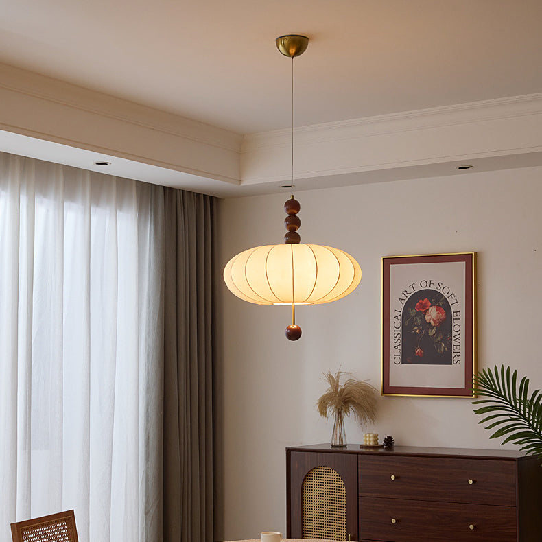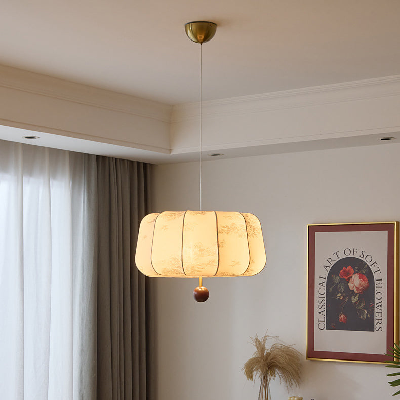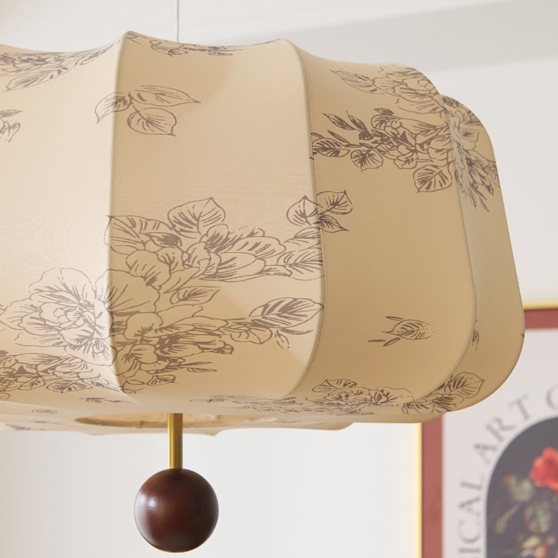Traditional French Cream Round Cylinder Oval Hardware Wood Fabric 3/4 Light Pendant Light For Bedroom