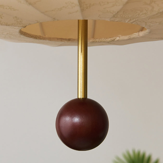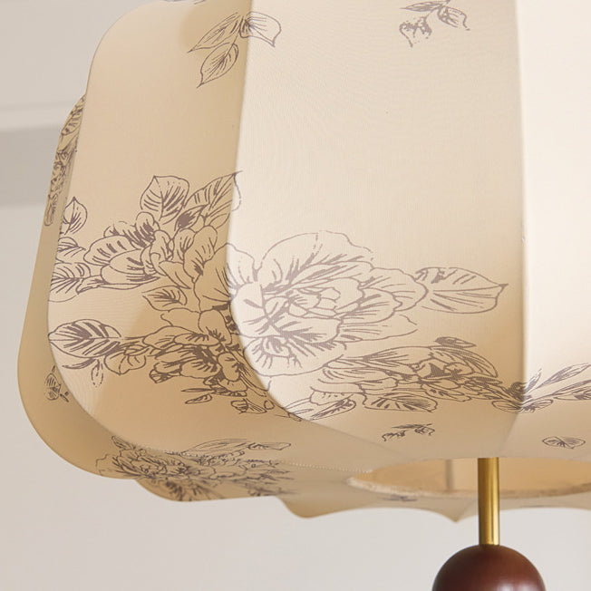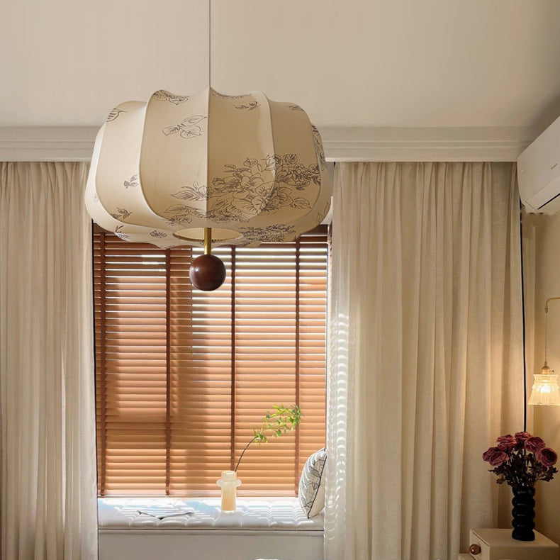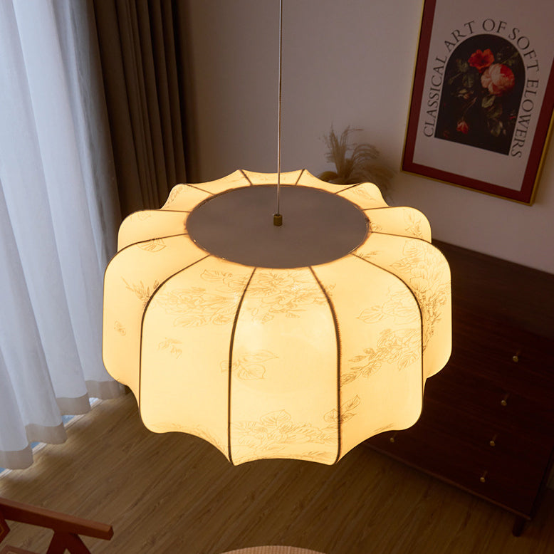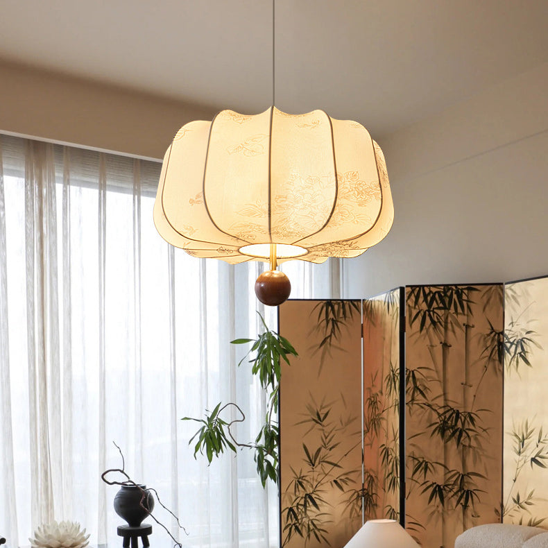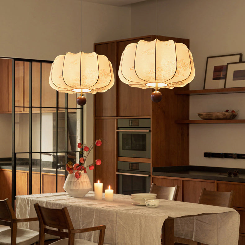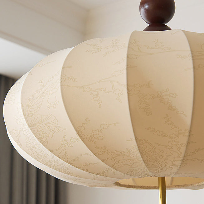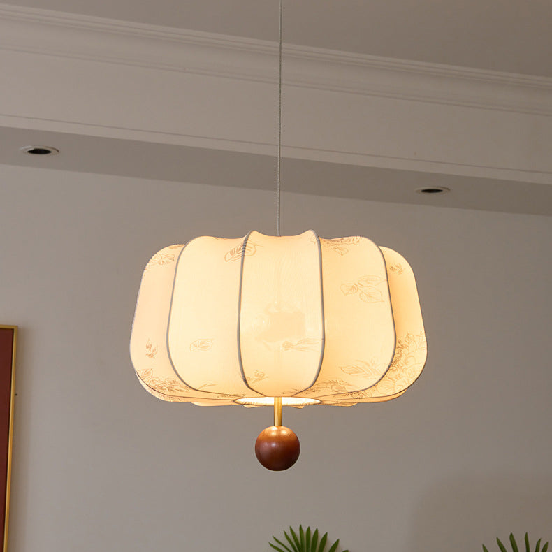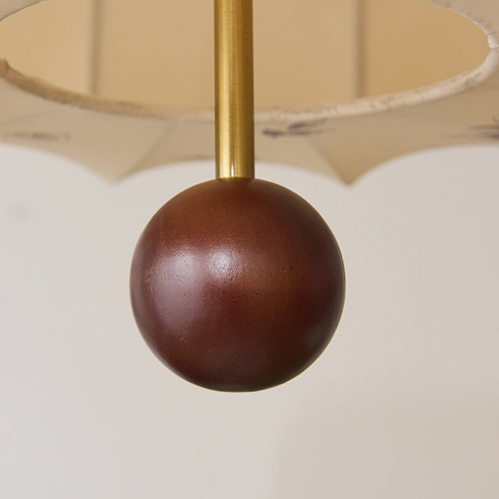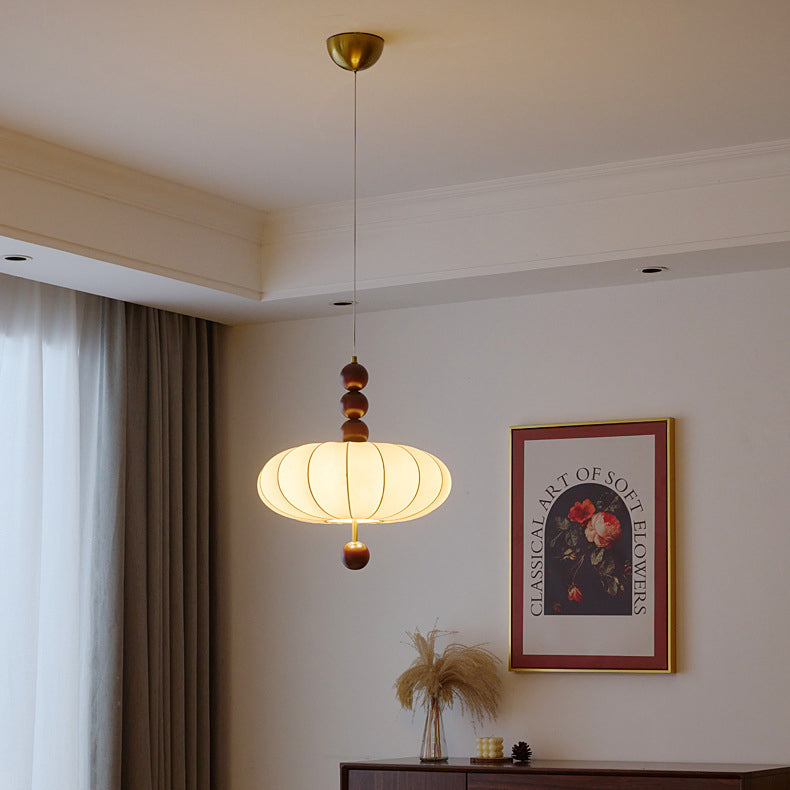 Traditional French Cream Round Cylinder Oval Hardware Wood Fabric 3/4 Light Pendant Light For Bedroom
