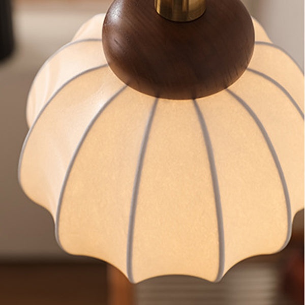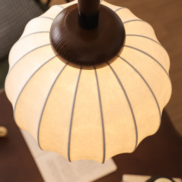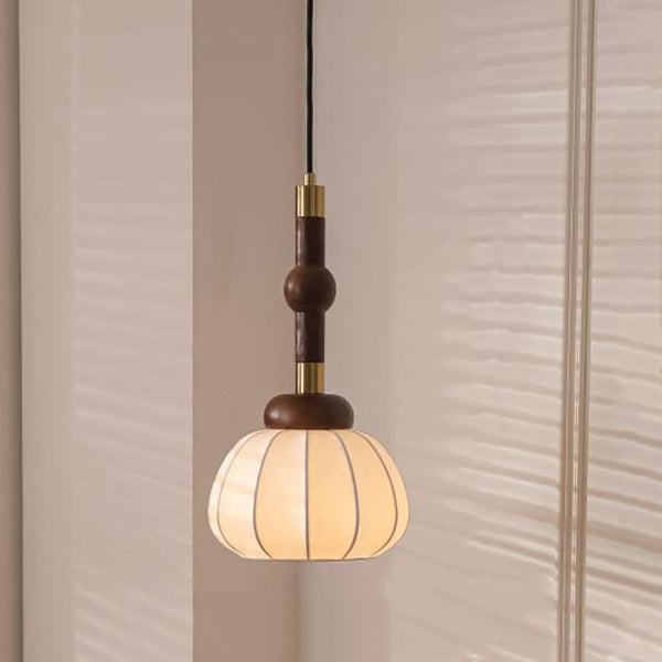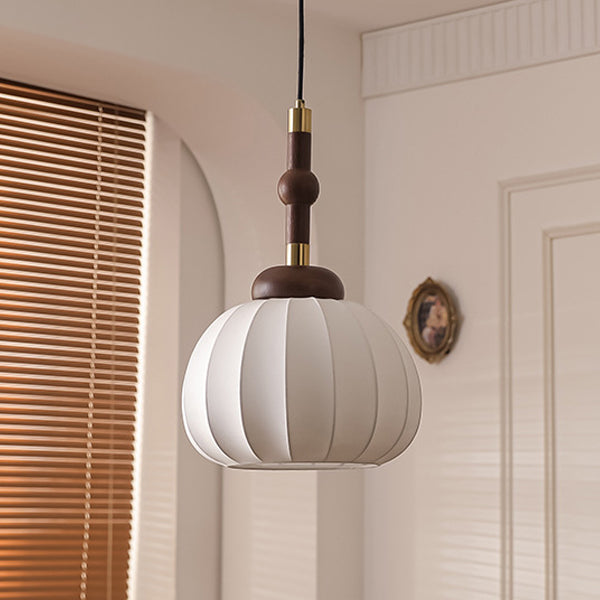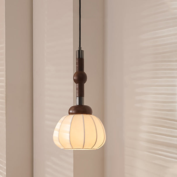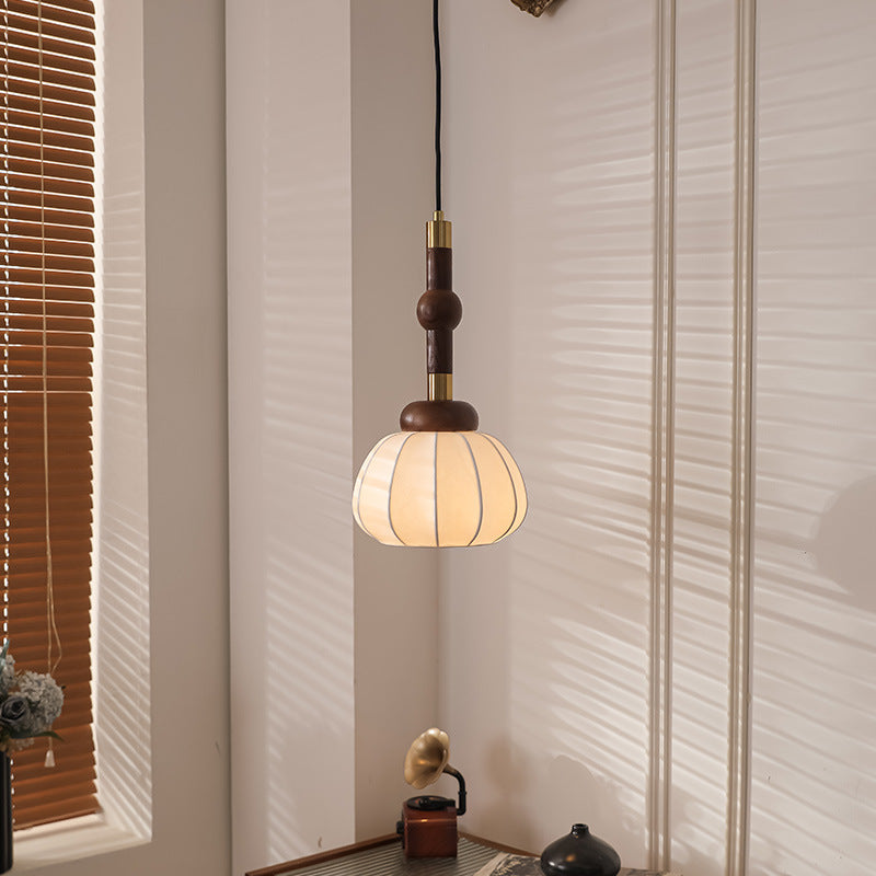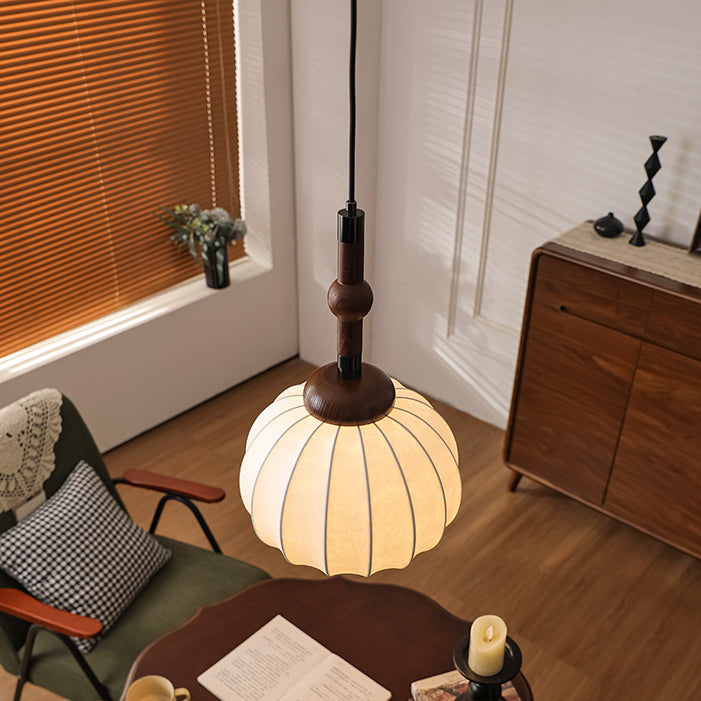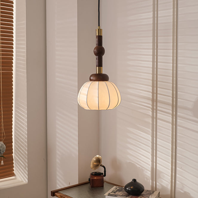 Traditional French Cylinder Lantern Shape Aluminum Wood Frame Silk Shade 1-Light Pendant Light For Living Room
