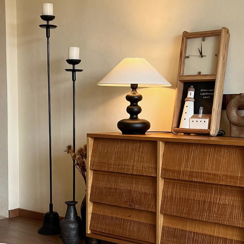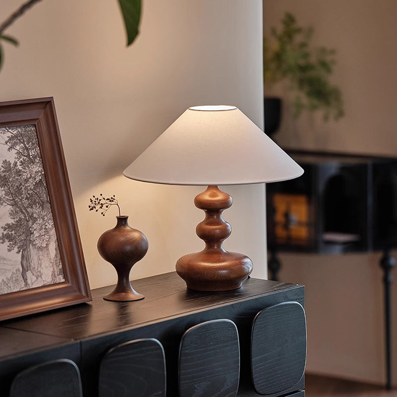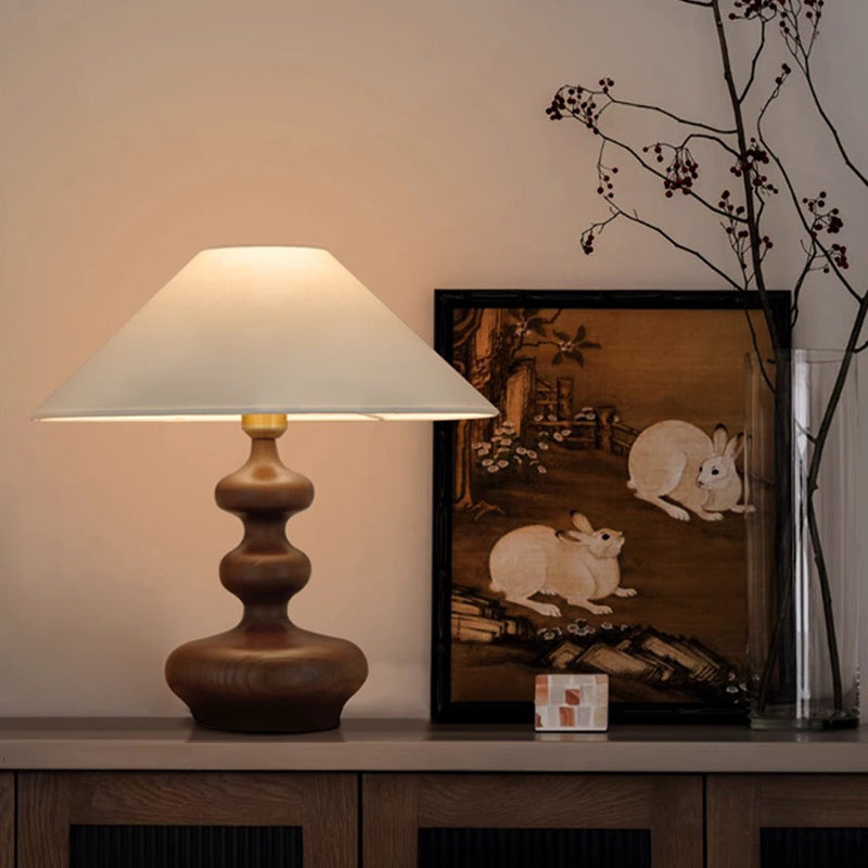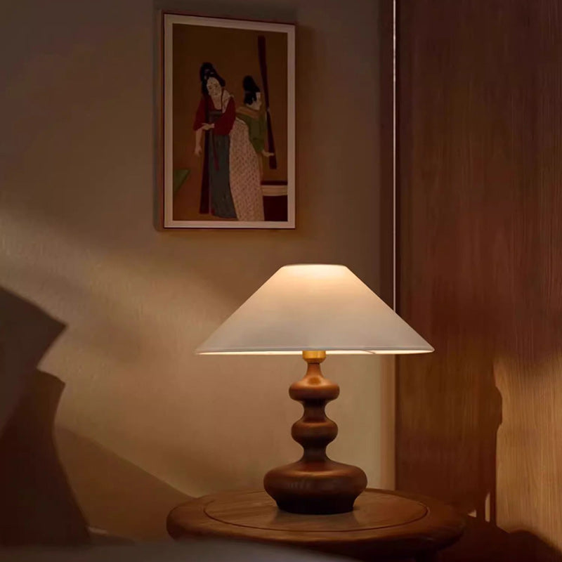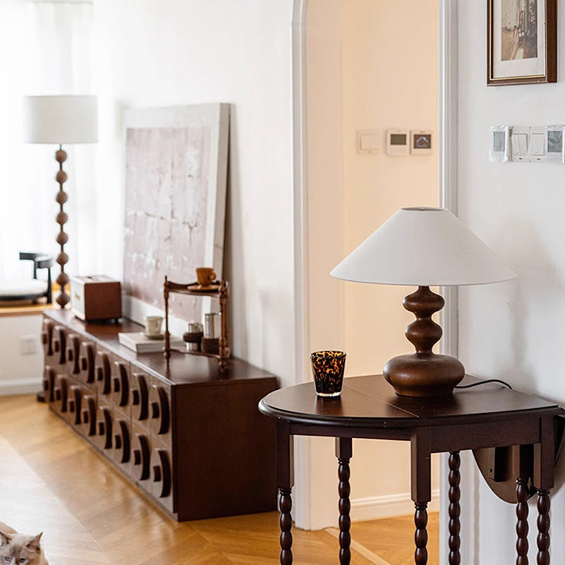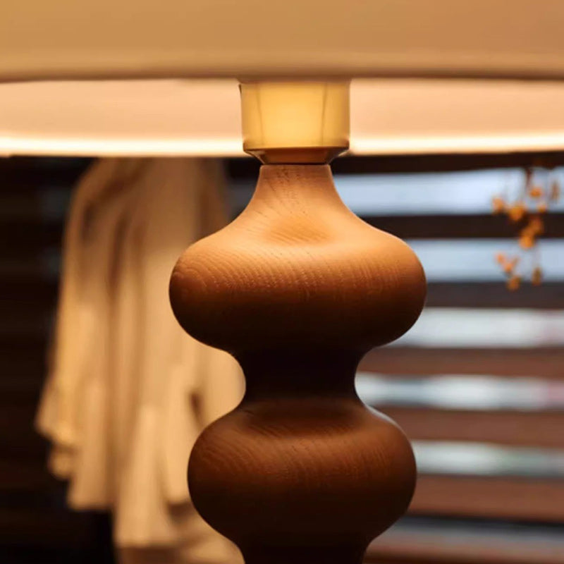 Traditional French Cylinder Round Table Oval Spherical Fabric Solid Wood 1-Light Table Lamp For Bedroom