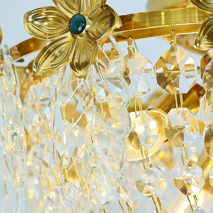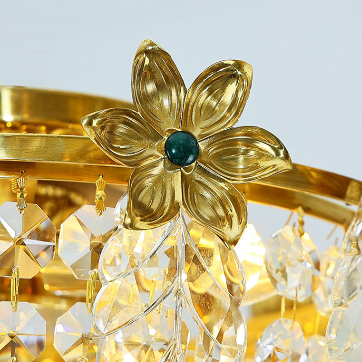 Traditional French Dome Copper Crystal 4-Light Flush Mount Ceiling Light For Living Room