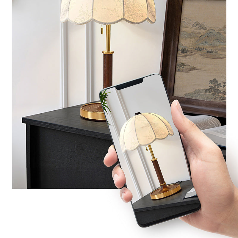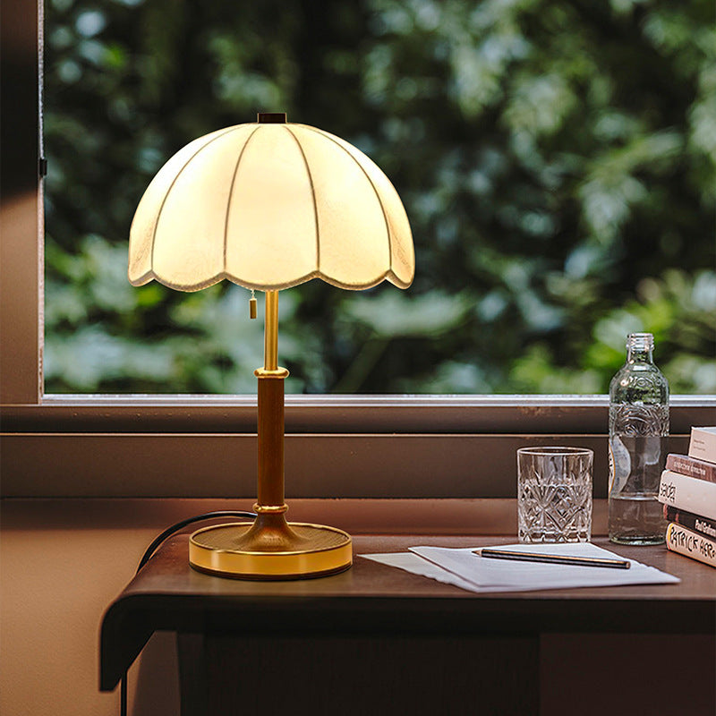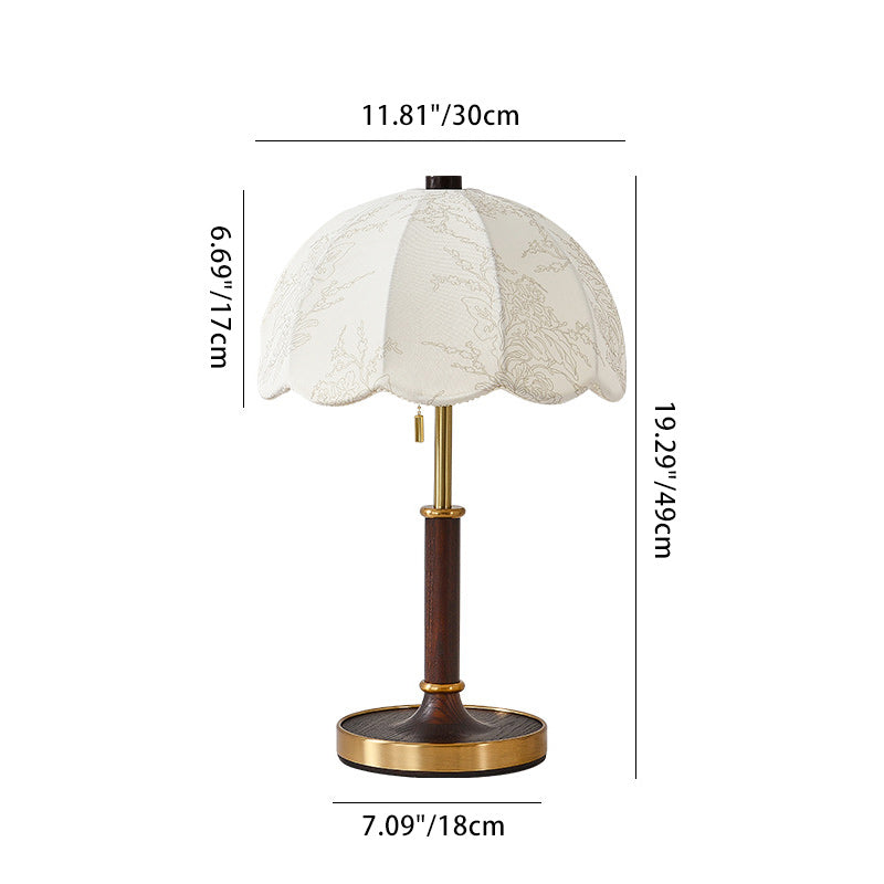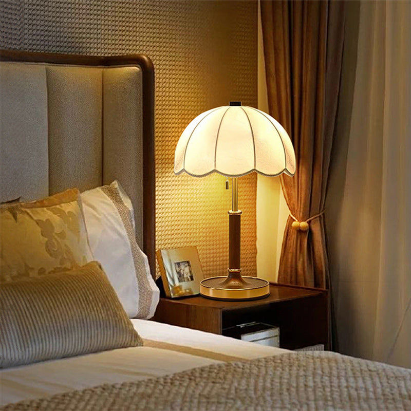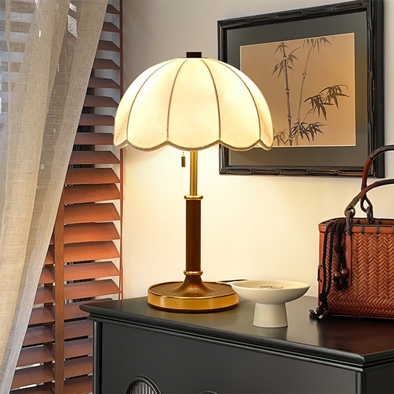 Traditional French Dome Round Dome Cylinder Base Wood Hardware Fabric Shade 2-Light Table Lamp For Bedroom