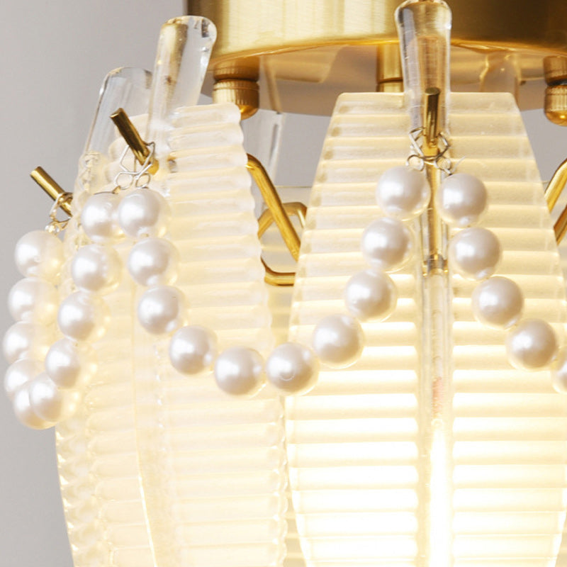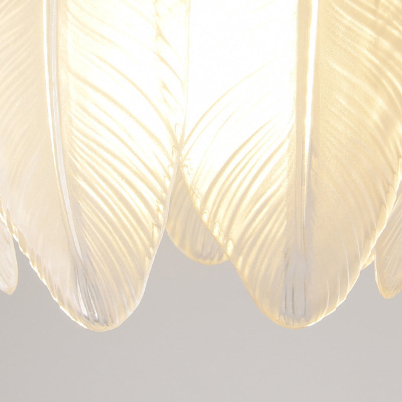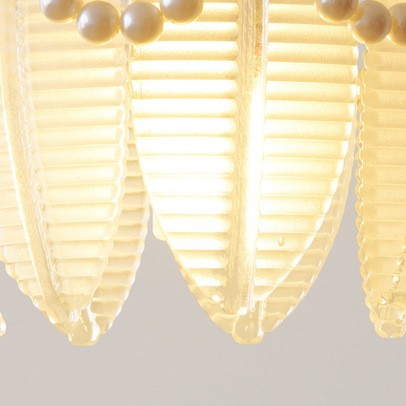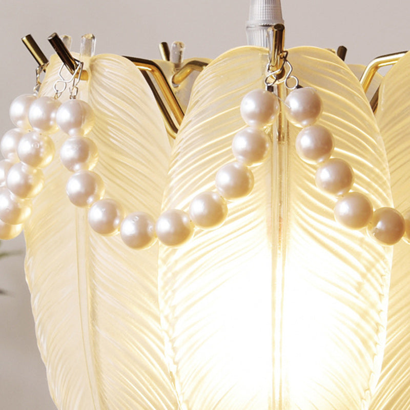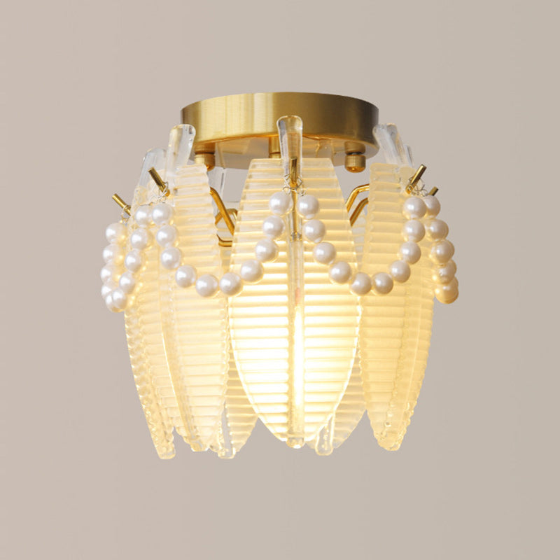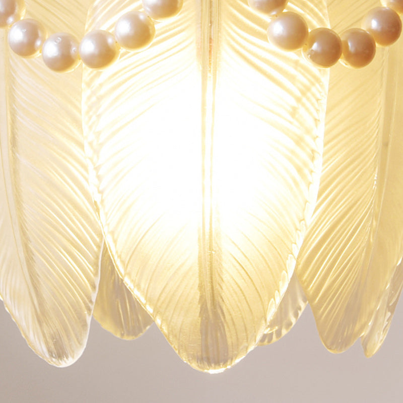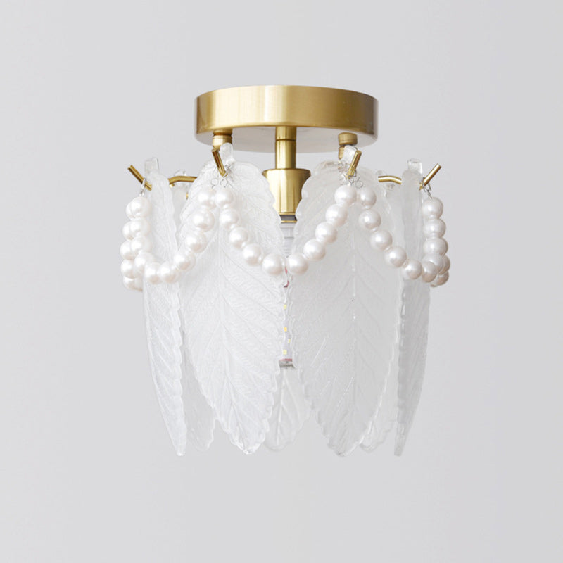 Traditional French Feather Shape Hanging Pearl Edge Iron Glass 1- Light Semi-Flush Mount Ceiling Light For Bedroom