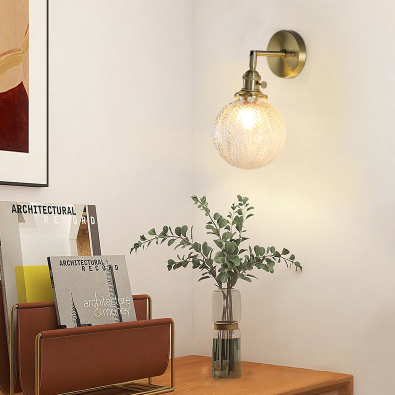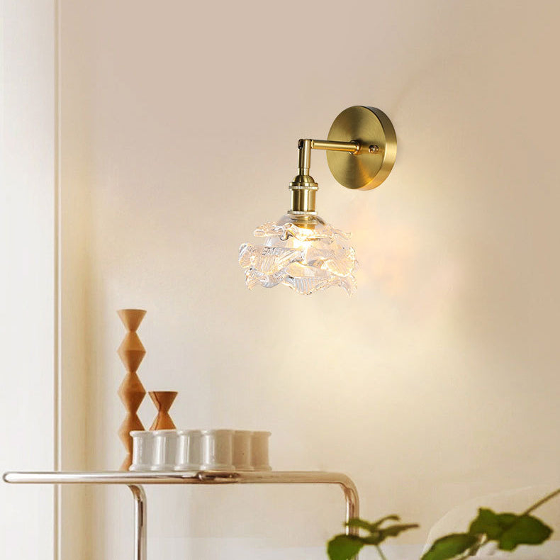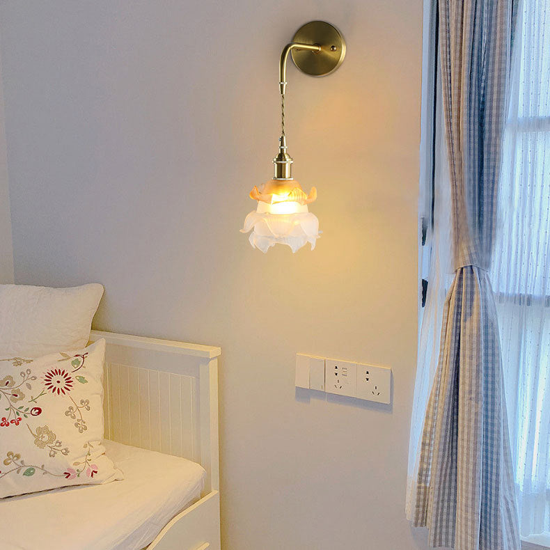 Traditional French Flower Cylinder Ball Copper Glass 1-Light Wall Sconce Lamp For Bedside