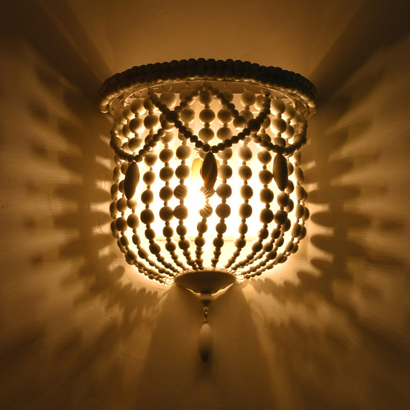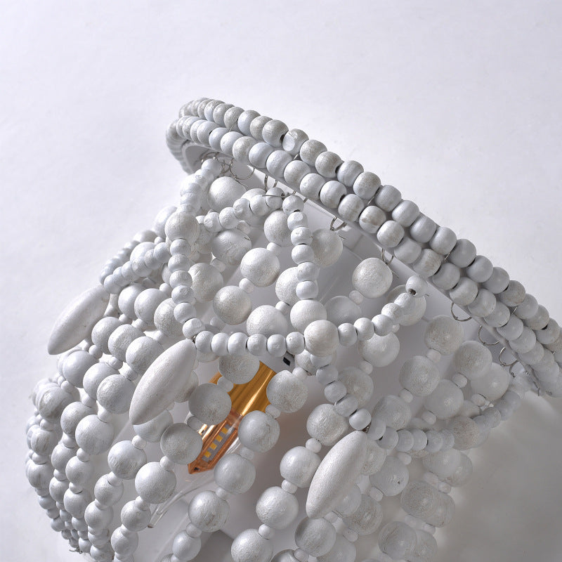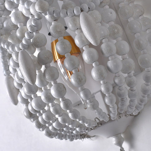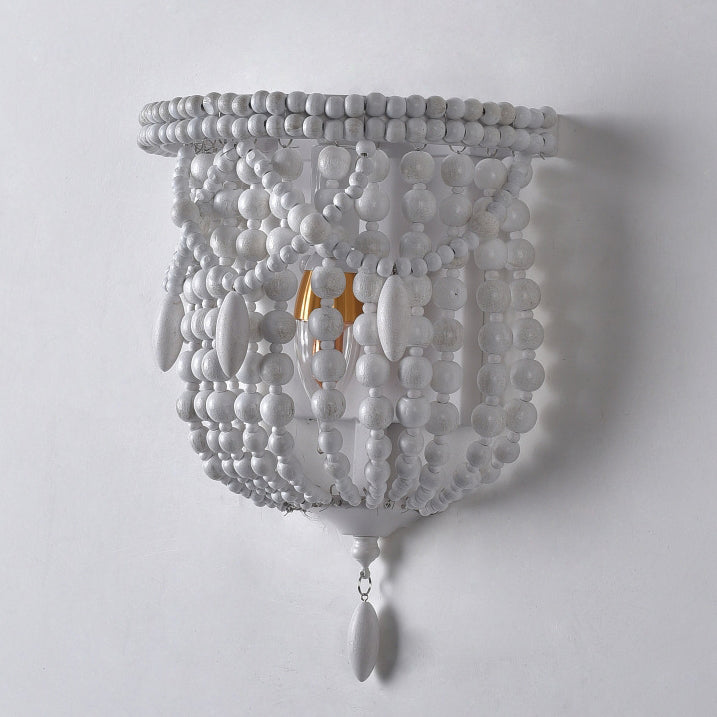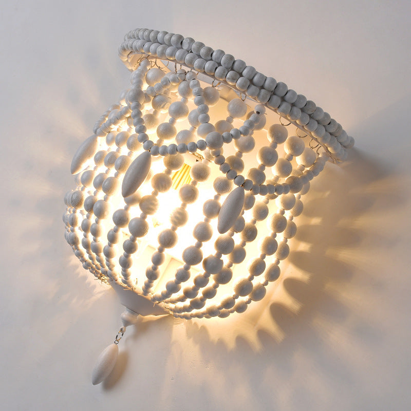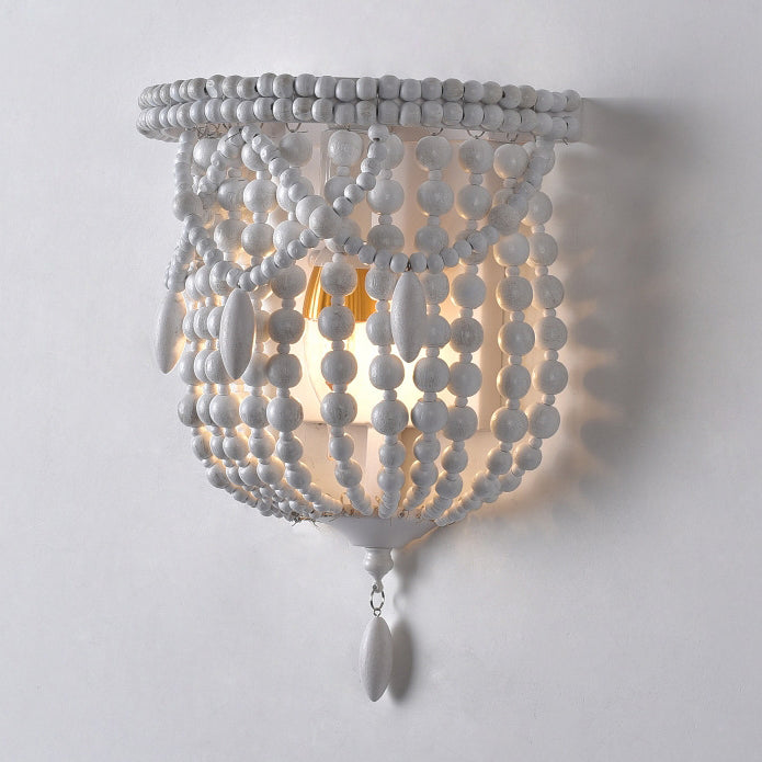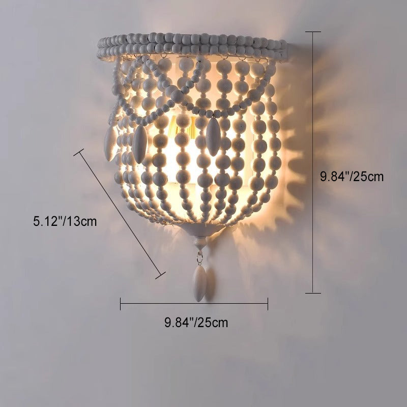 Traditional French Half Round Bead String Solid Wood Iron 1-Light Wall Sconce Lamp For Living Room