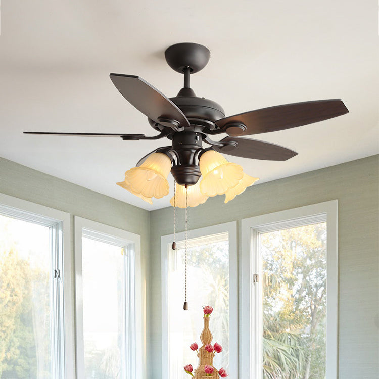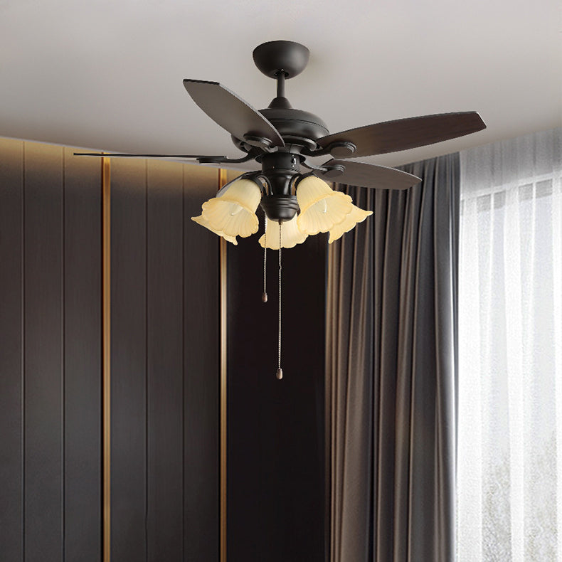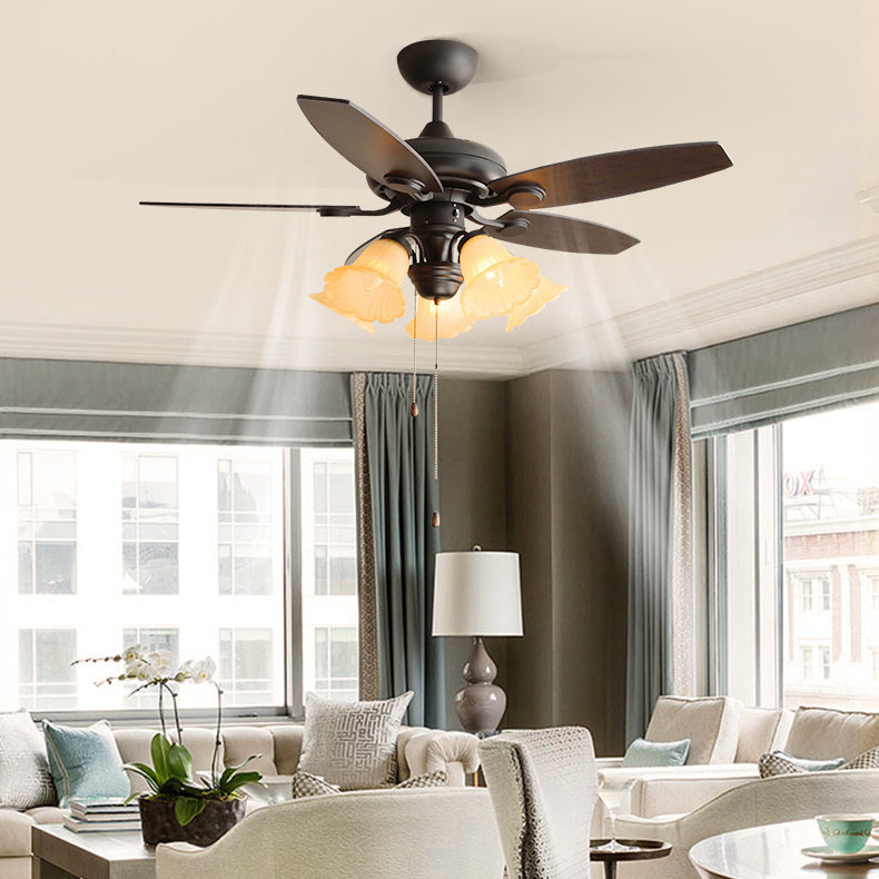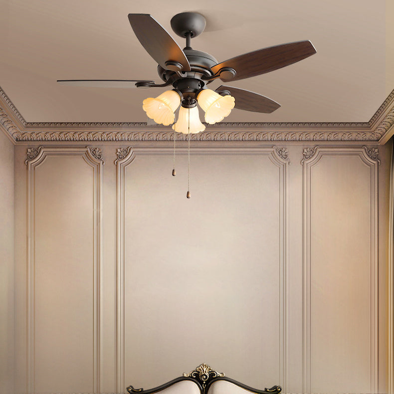 Traditional French Iron Fan Flower Glass Shade 3/5 - Light Downrods Ceiling Fan Light For Living Room