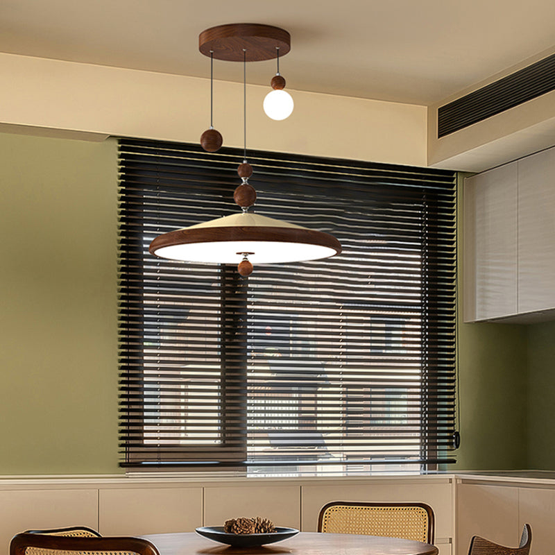 Traditional French Iron Faux Woodgrain Acrylic Cone Shade LED Pendant Light For Living Room