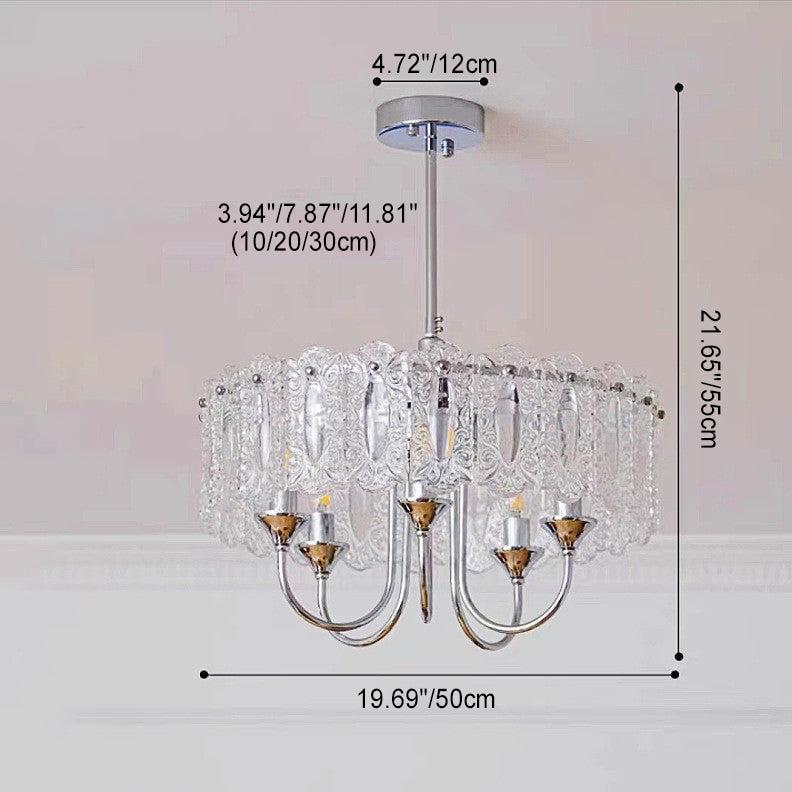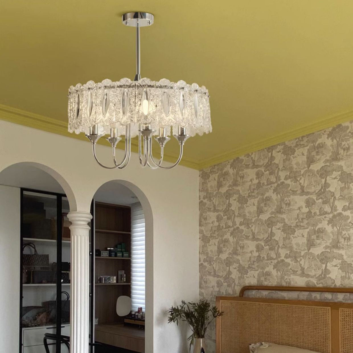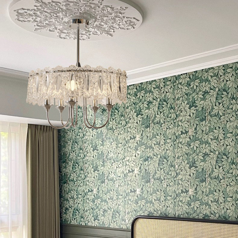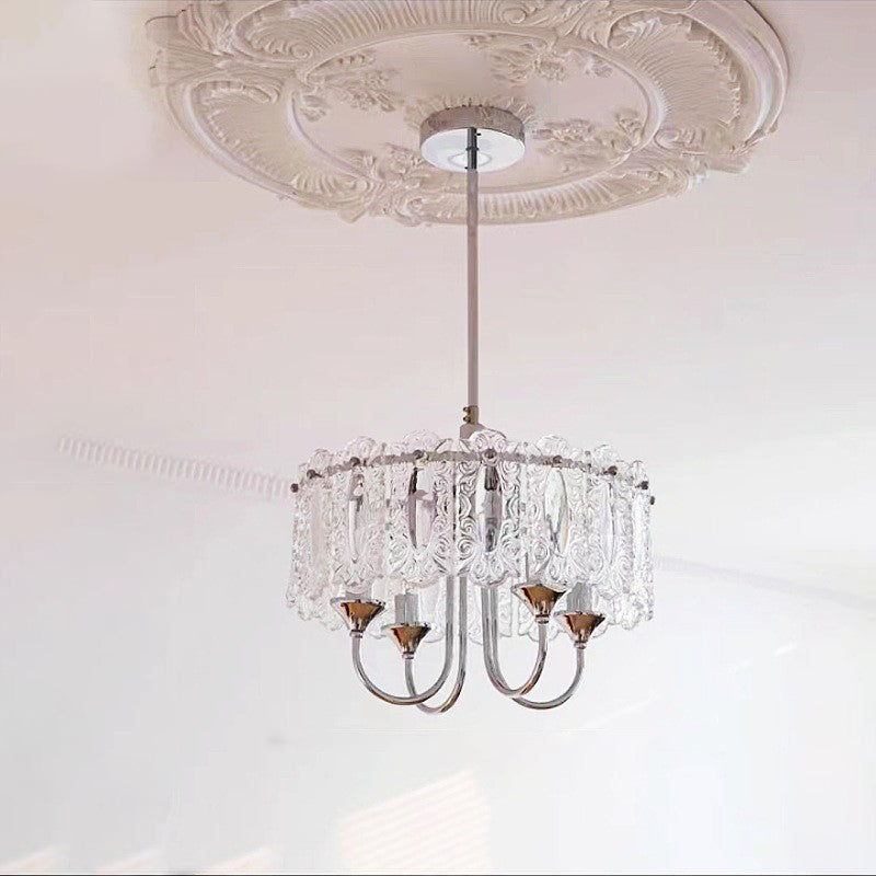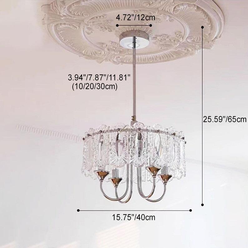 Traditional French Iron Frame Glass Round Shade 4/5-Light Chandelier For Living Room