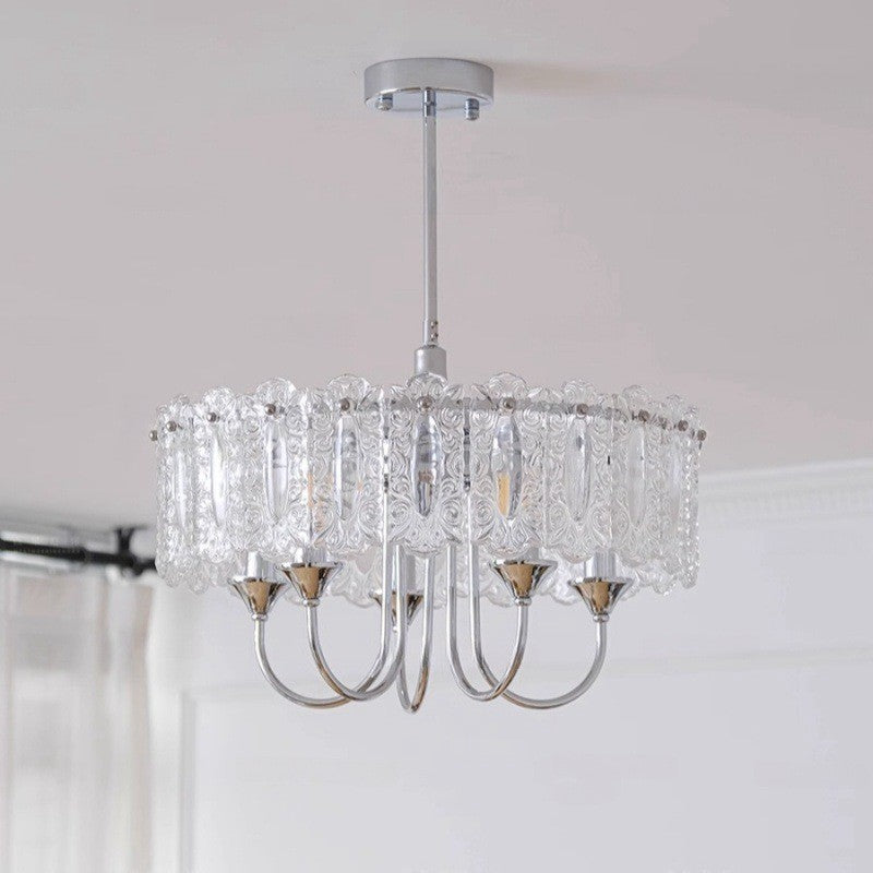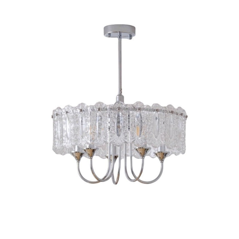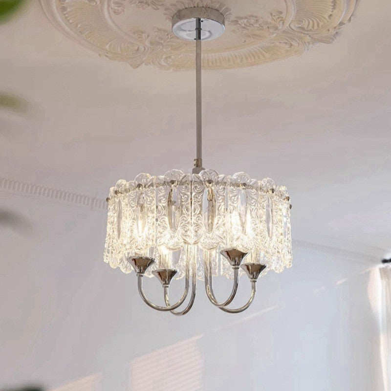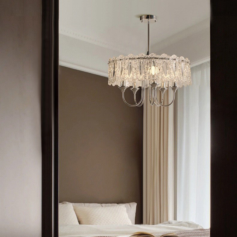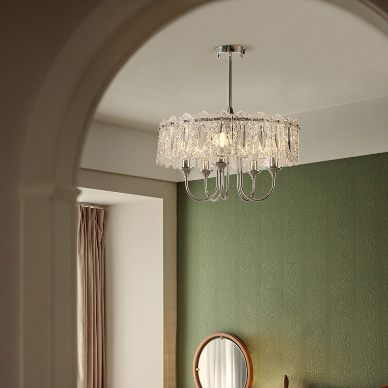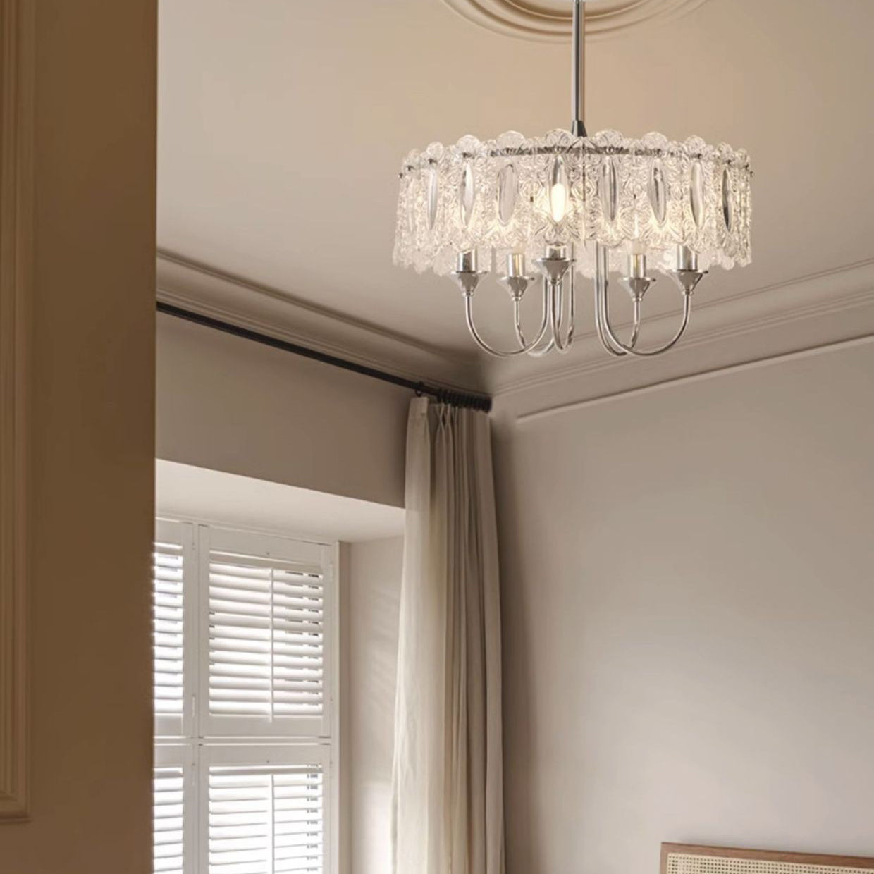 Traditional French Iron Frame Glass Round Shade 4/5-Light Chandelier For Living Room