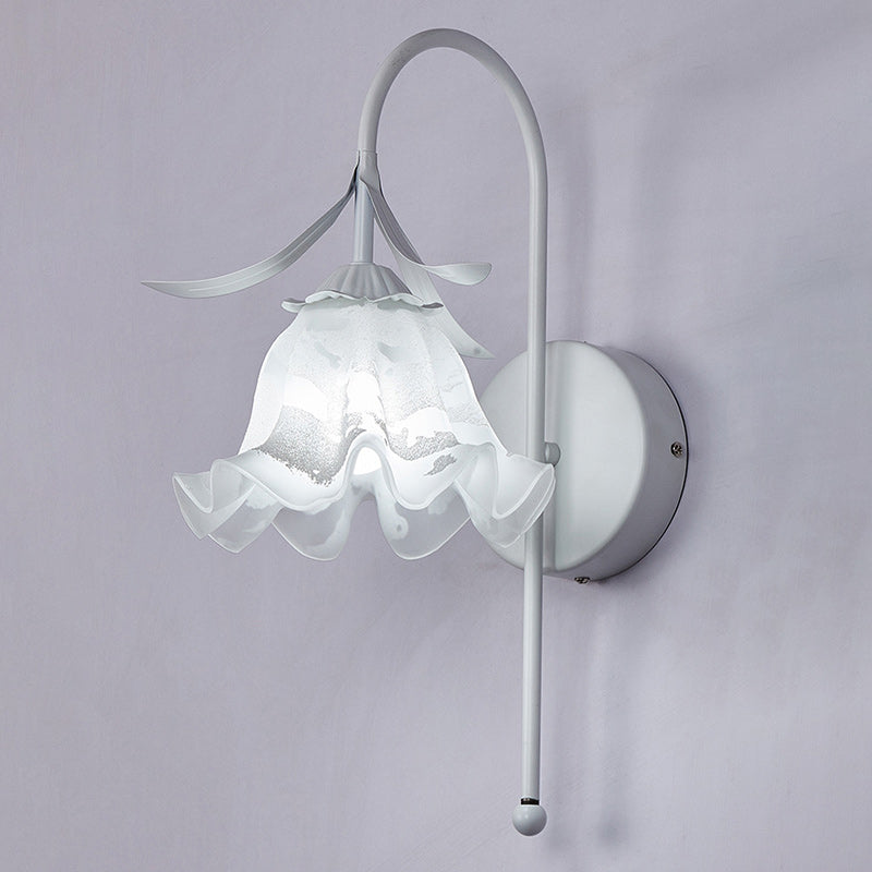 Traditional French Iron Glass Acrylic Floral 1-Light Wall Sconce Lamp For Bedroom And Living Room