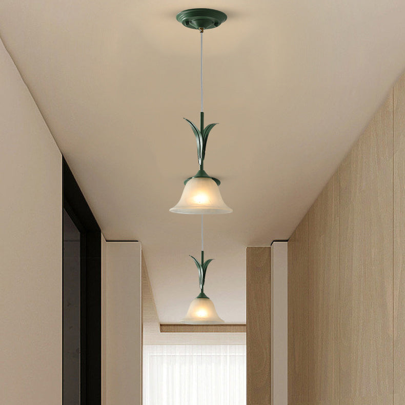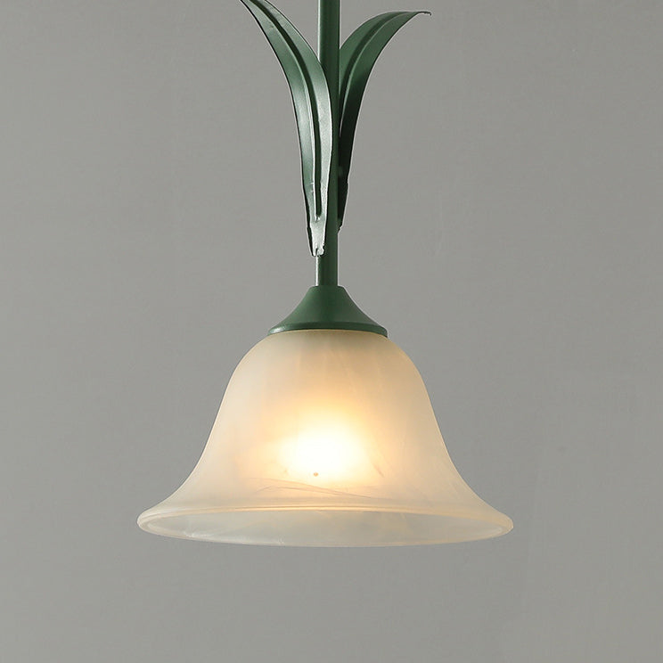 Traditional French Iron Glass Flower 1/3 Light Island Light Chandelier For Living Room