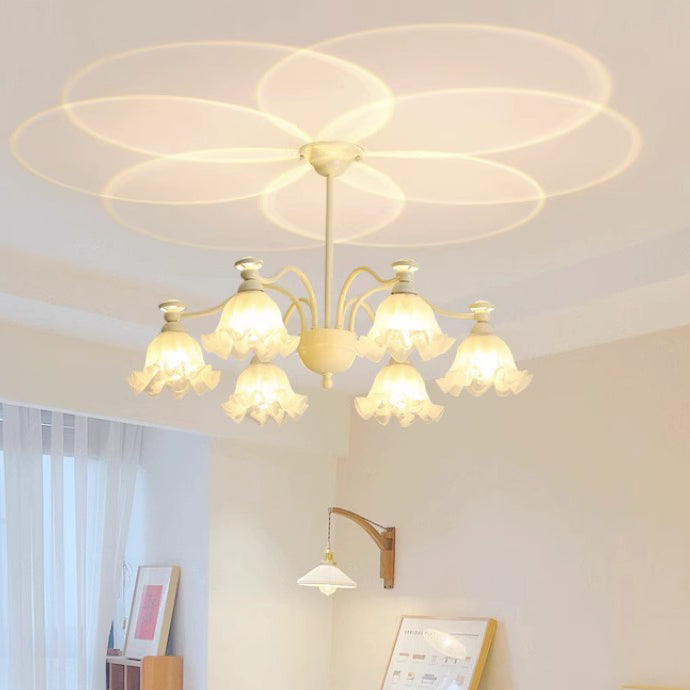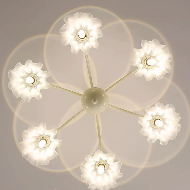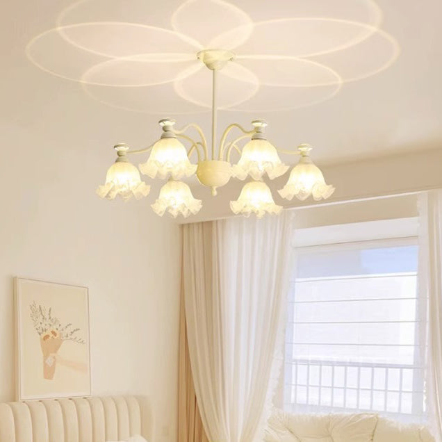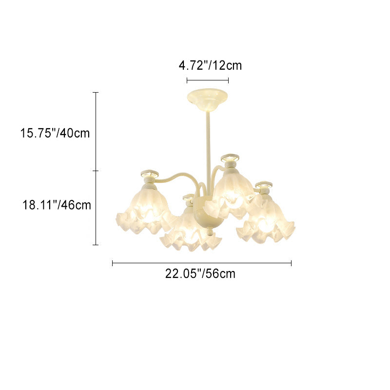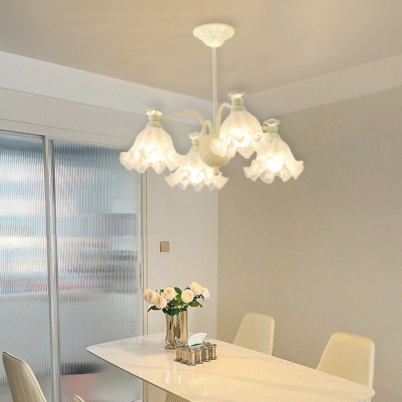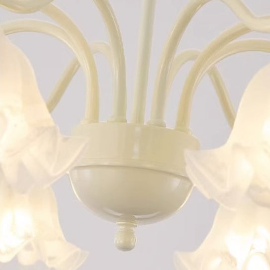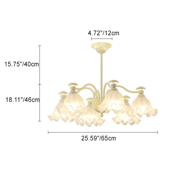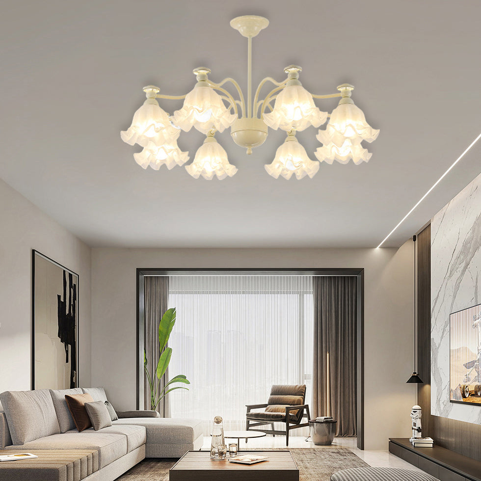 Traditional French Iron Glass Flower 4/6/8 Light Chandelier For Living Room