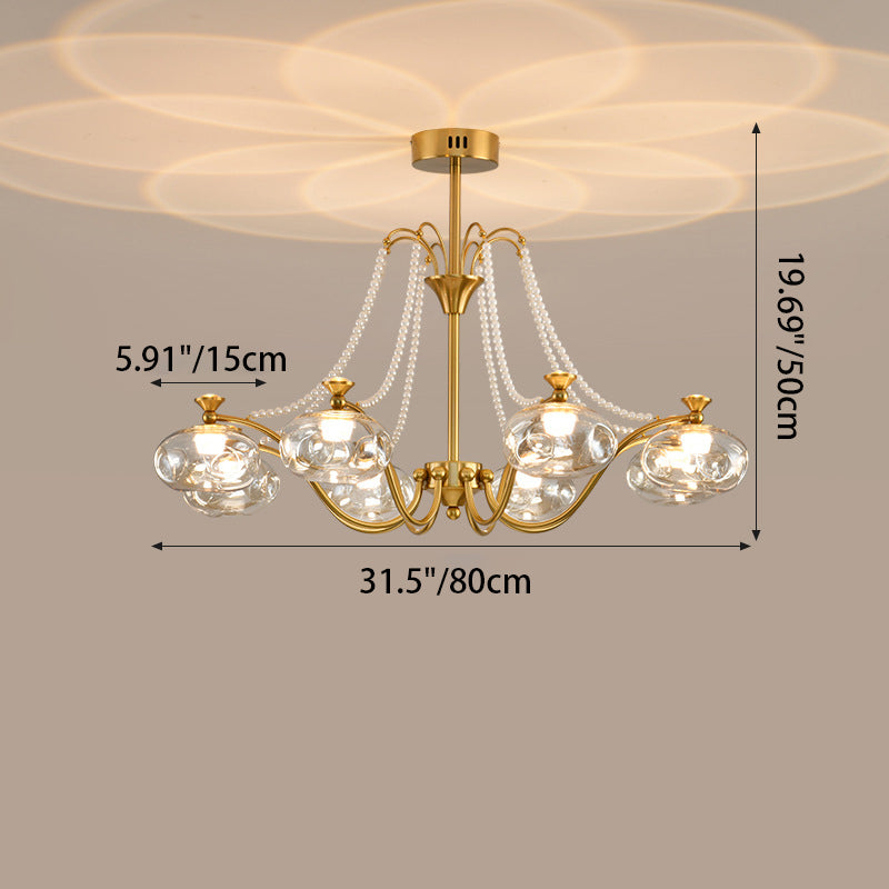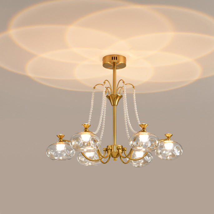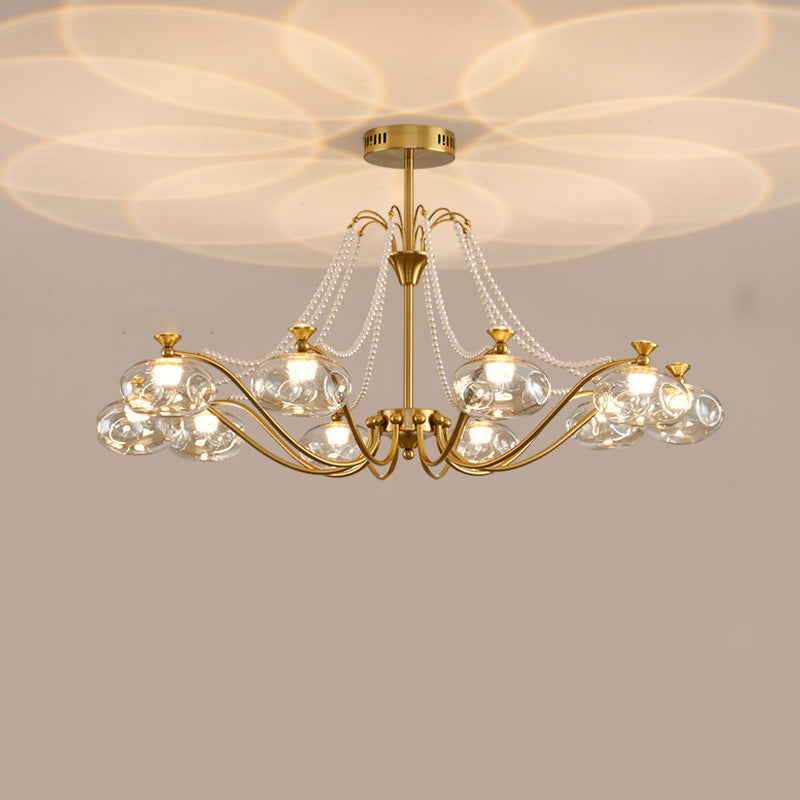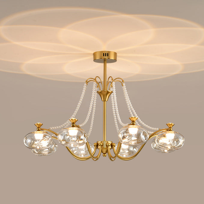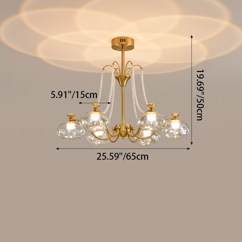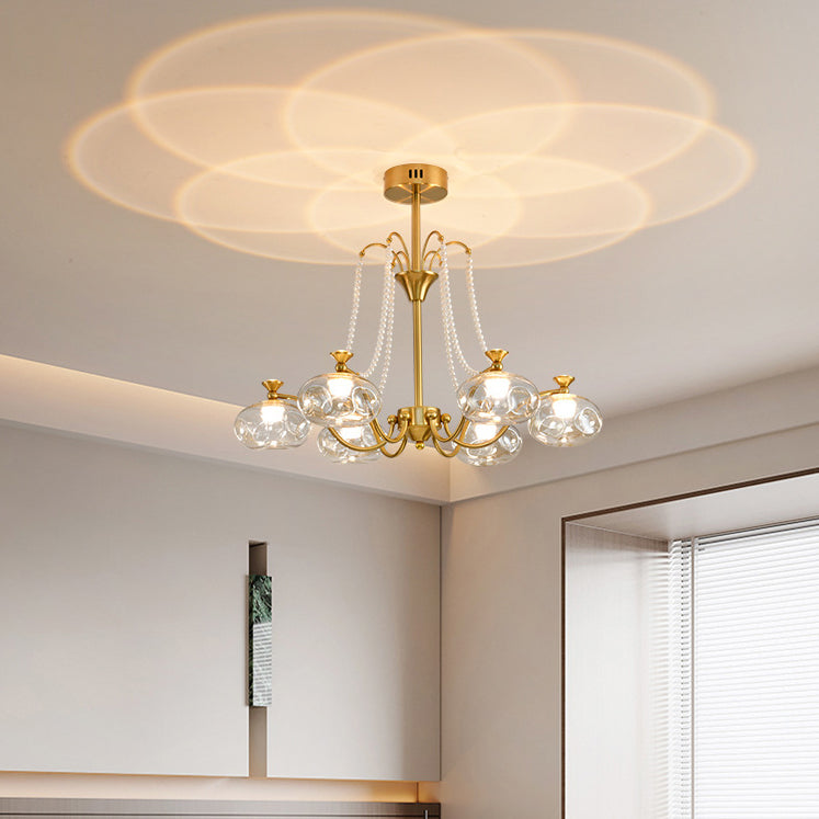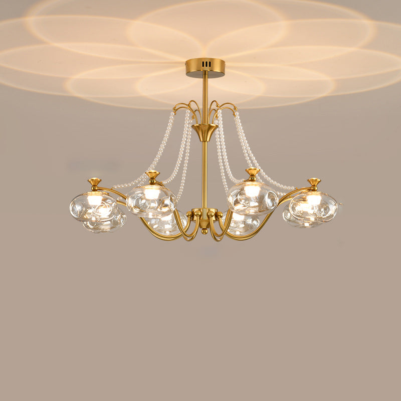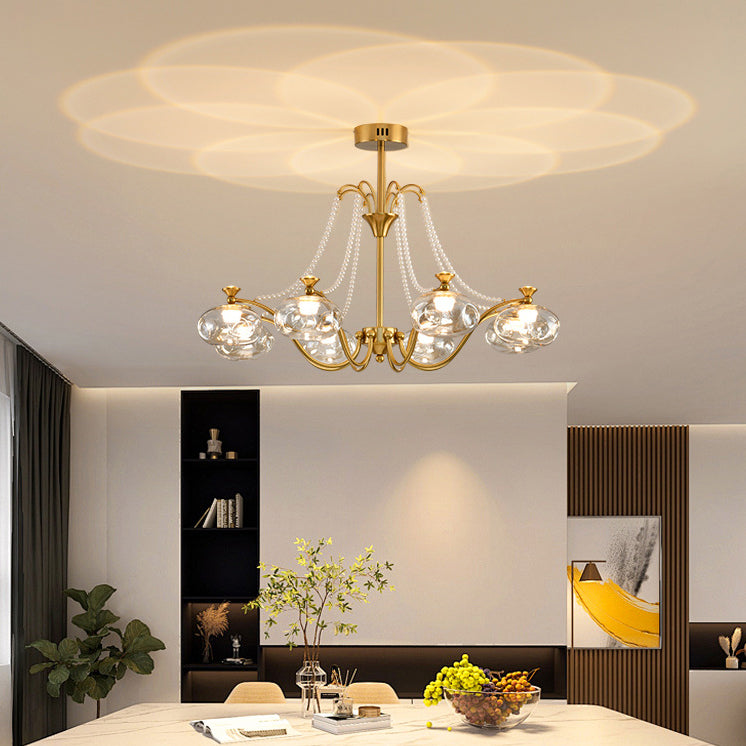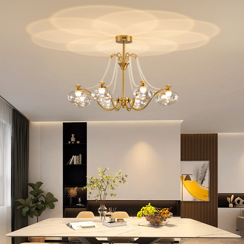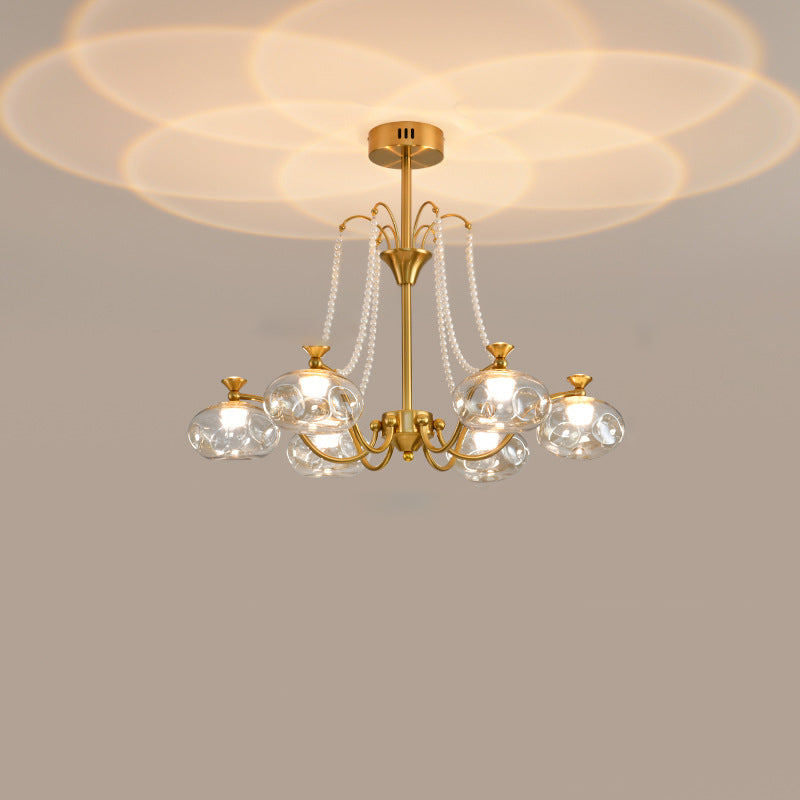 Traditional French Iron Glass Pearl Chain Projection Round LED Chandeliers For Living Room