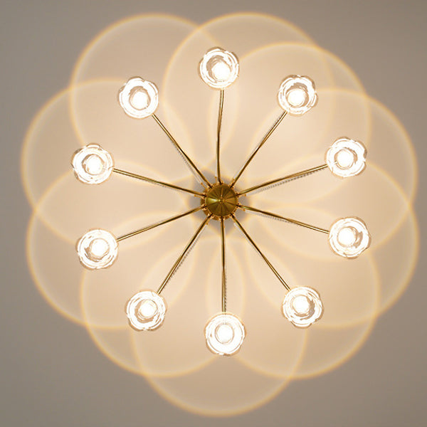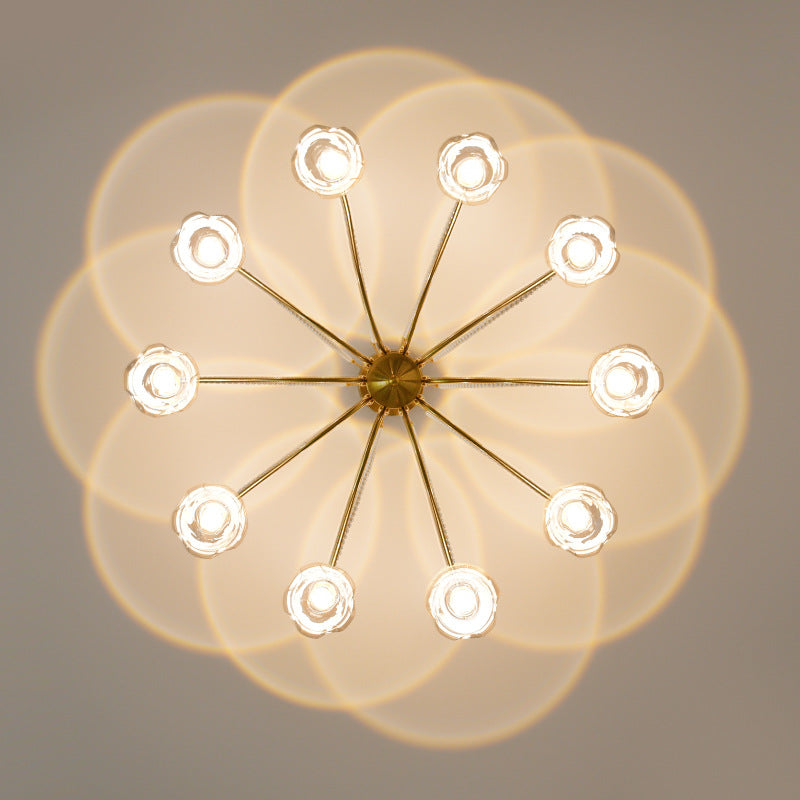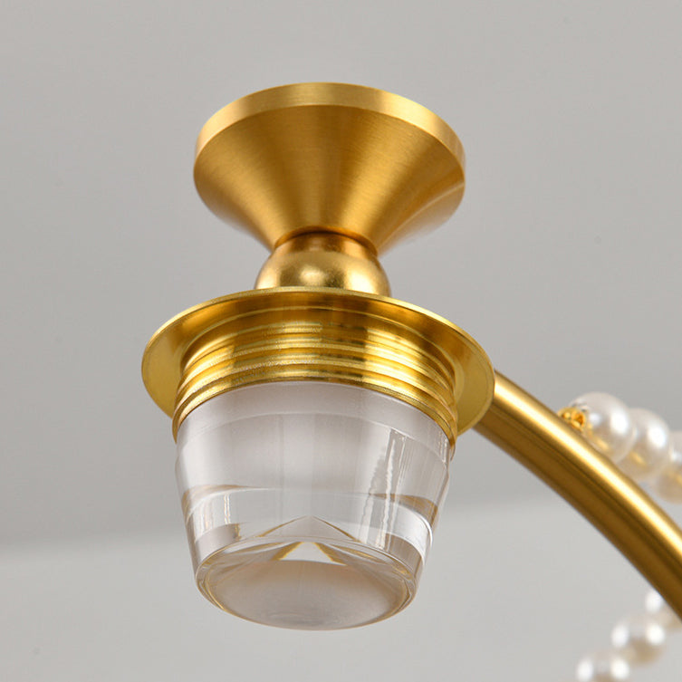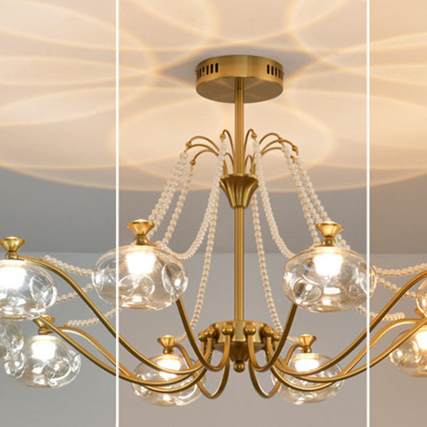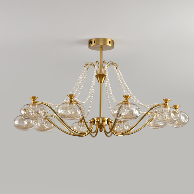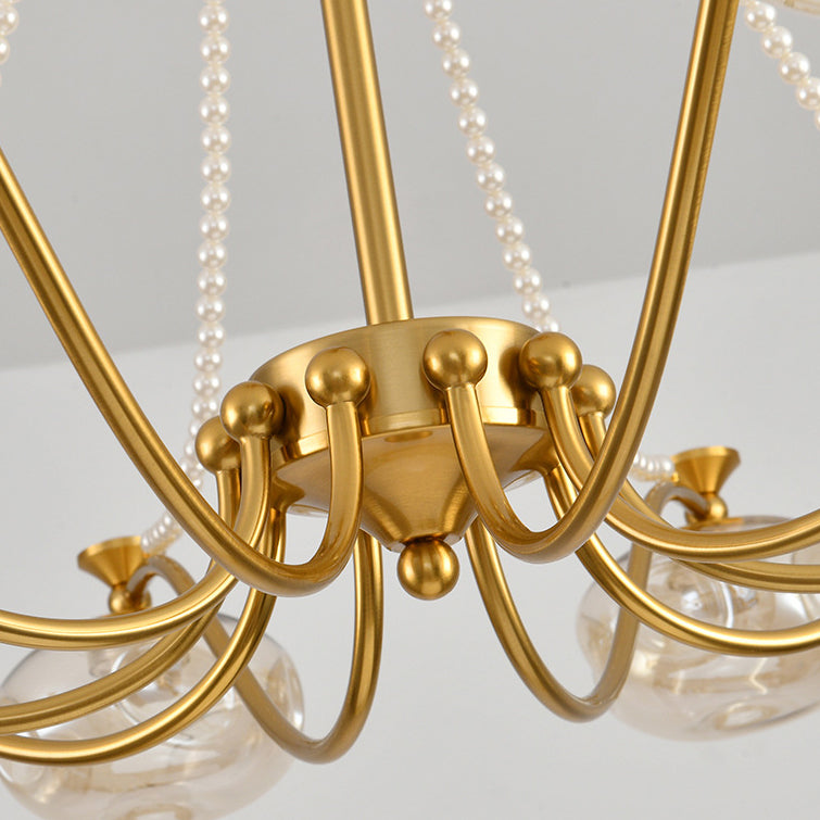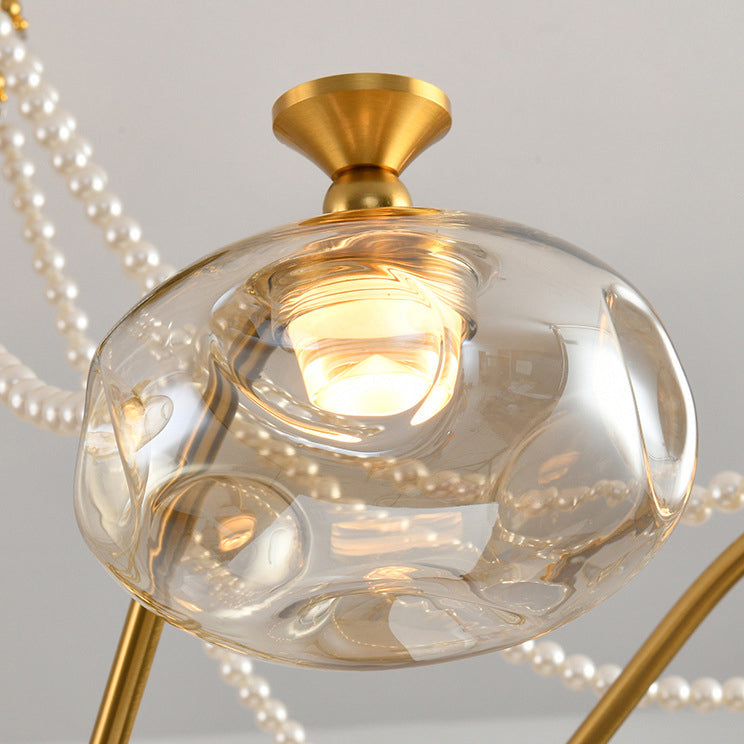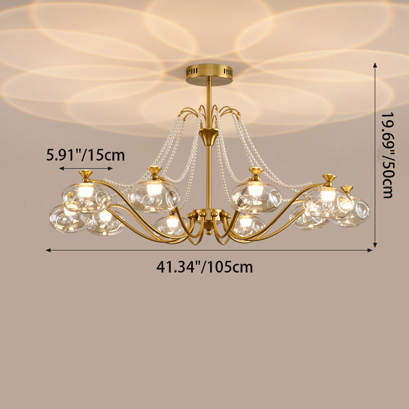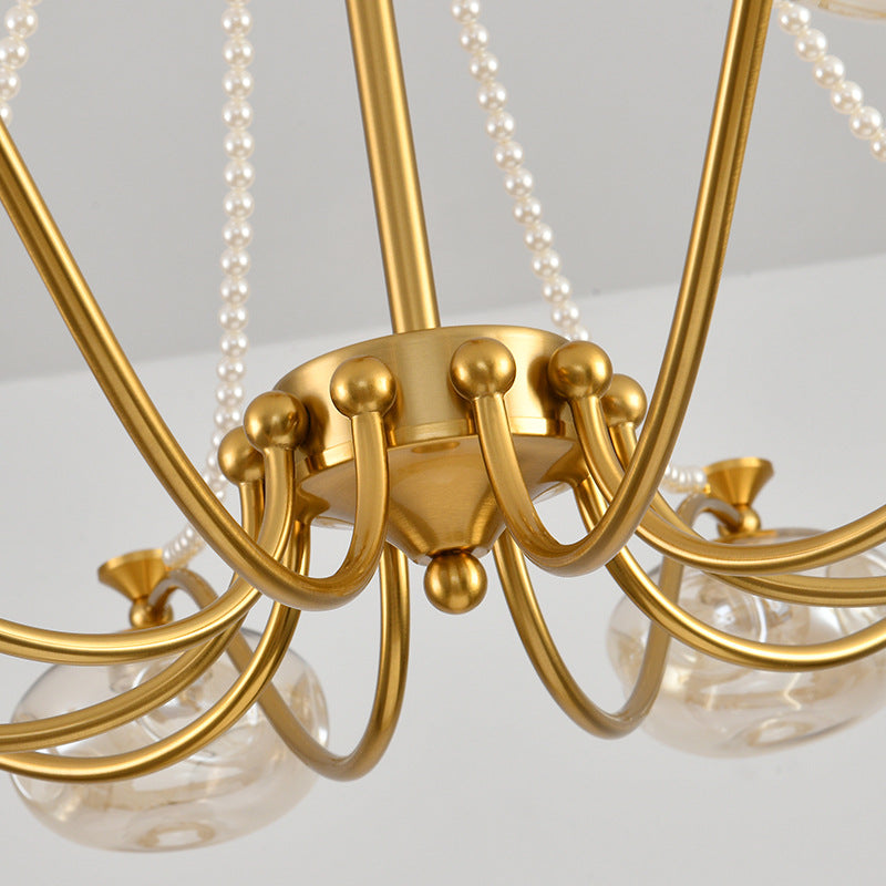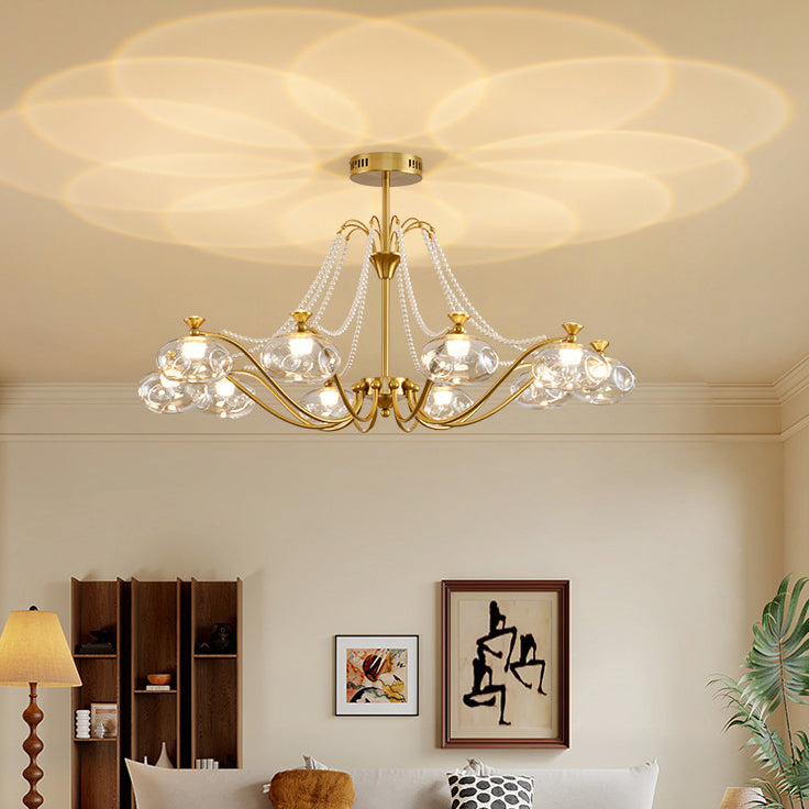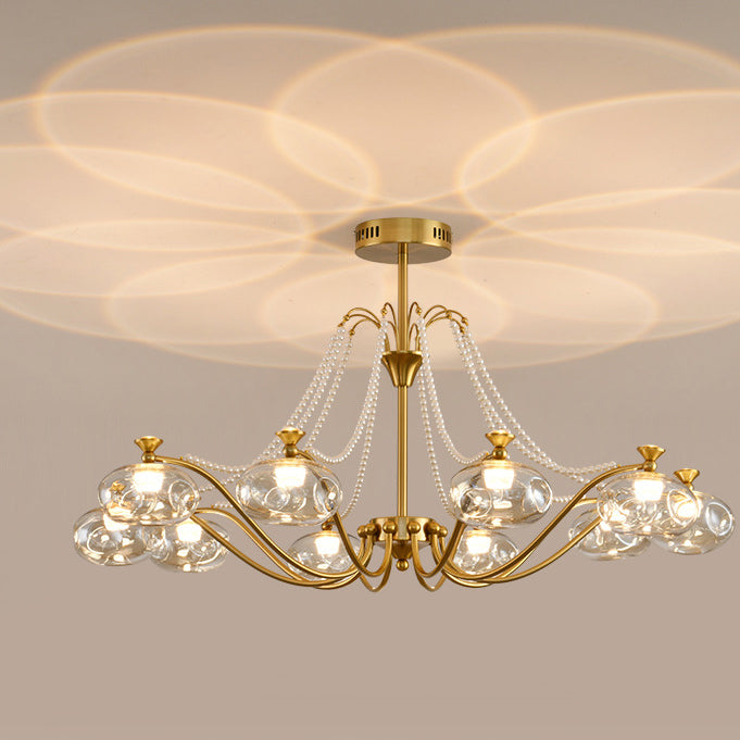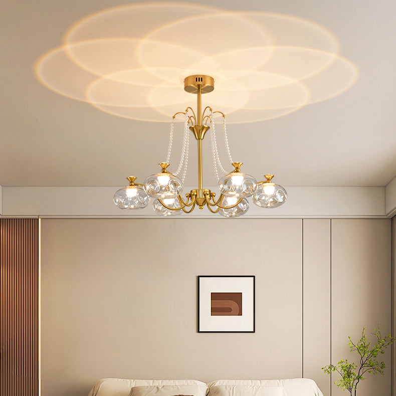 Traditional French Iron Glass Pearl Chain Projection Round LED Chandeliers For Living Room
