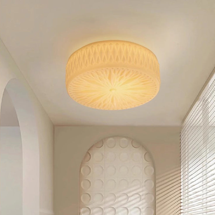 Traditional French Iron Glass Round Stardust Diamond Textured LED Flush Mount Ceiling Light For Bedroom