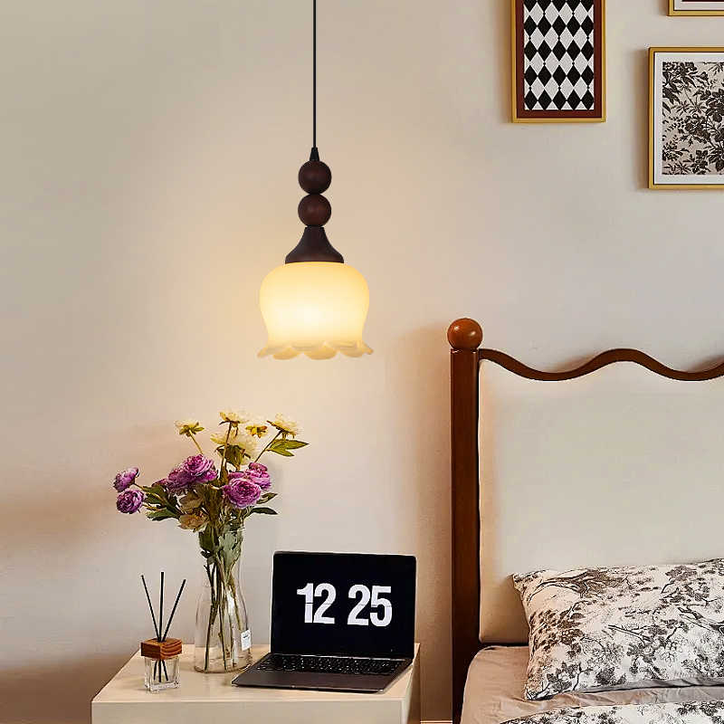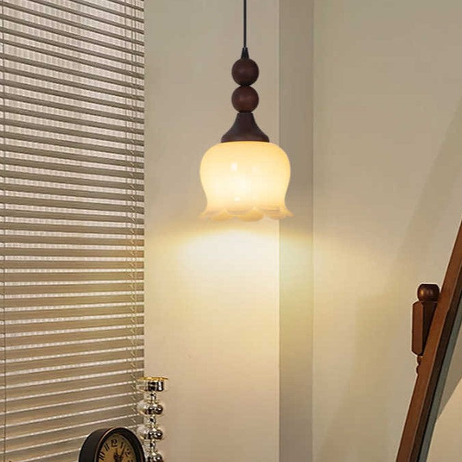Traditional French Iron Wood Flower Shade 1-Light Pendant Light For Living Room