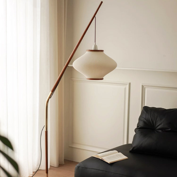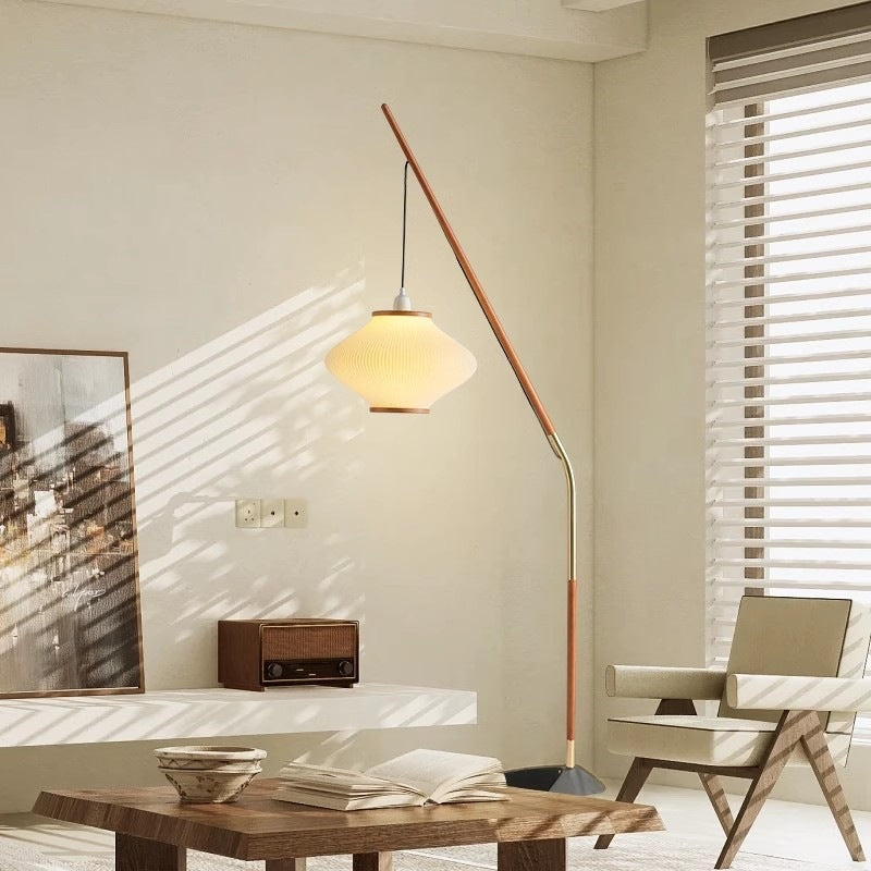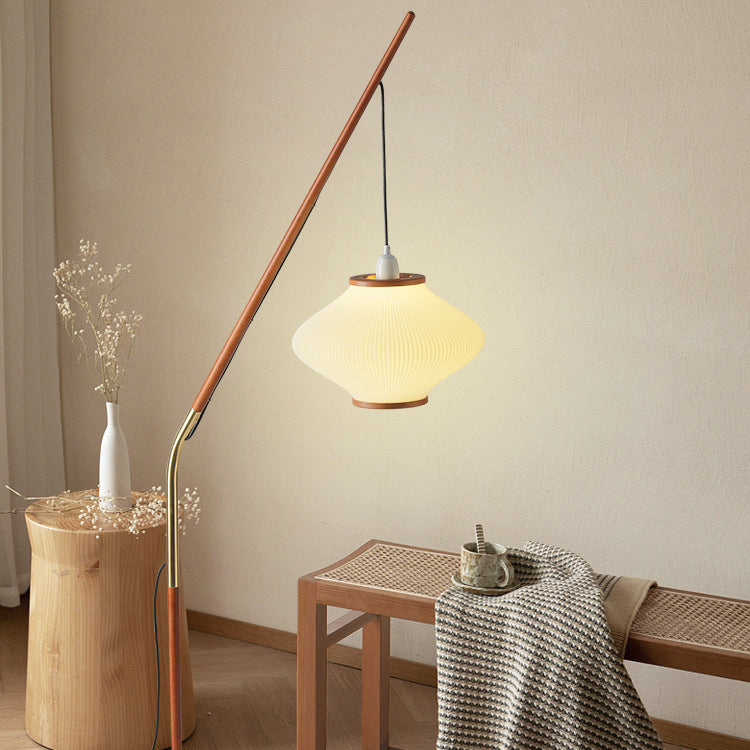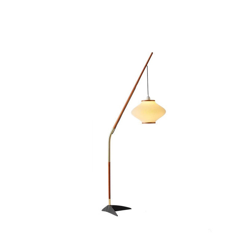Traditional French Lantern Long Acrylic Ash Wood Iron 1-Light Standing Floor Lamp For Bedroom