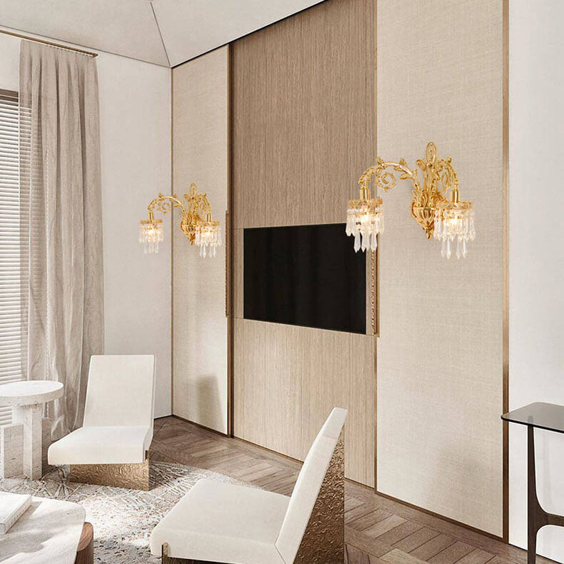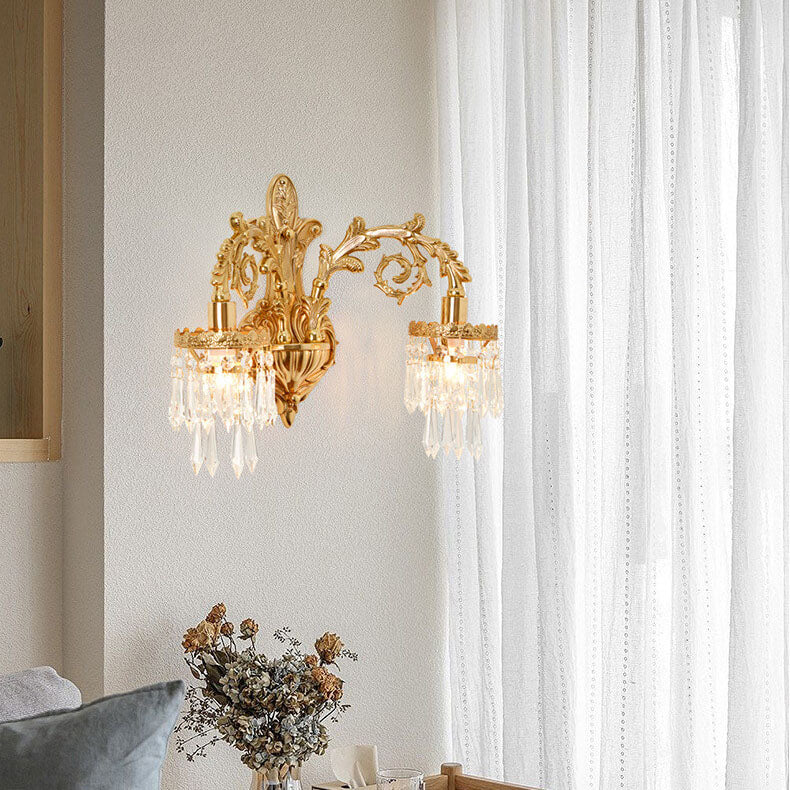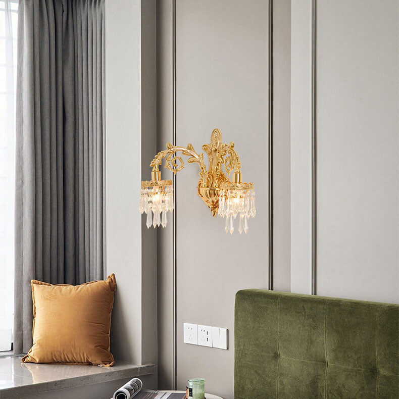 Traditional French Luxury All-Copper Branch 1/2-Light Wall Sconce Lamp For Bedroom
