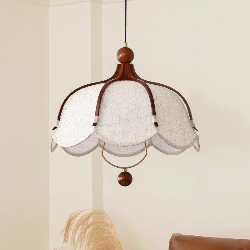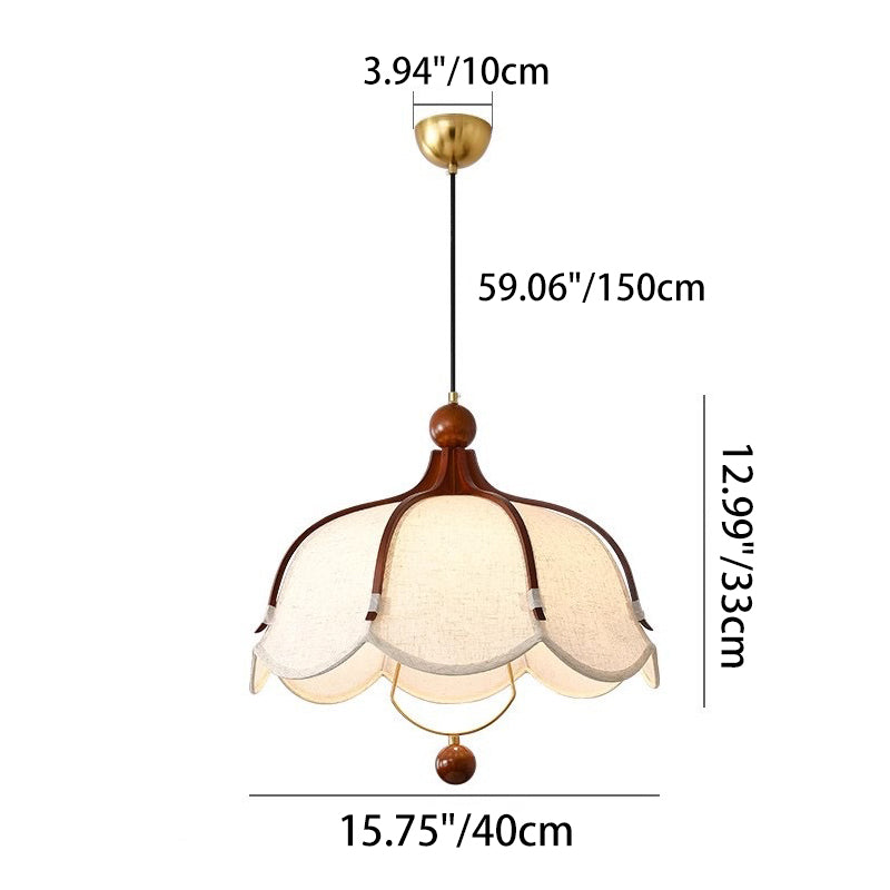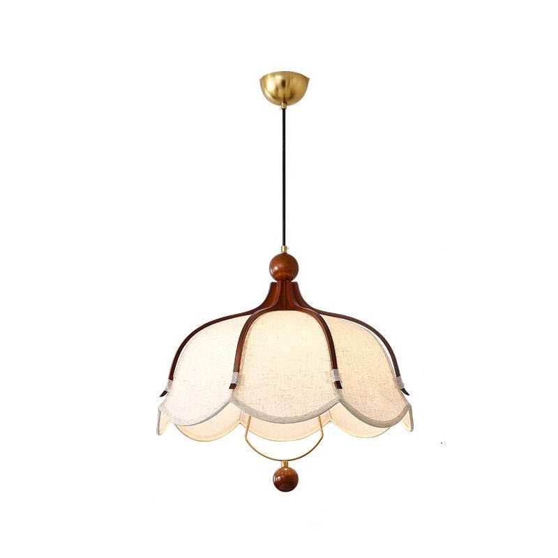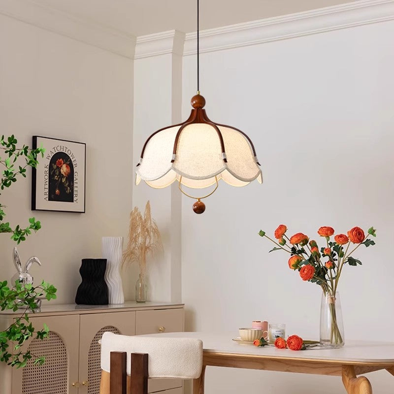 Traditional French Metal Linen & Wood Floral 1-Light Pendant Light For Dining Room