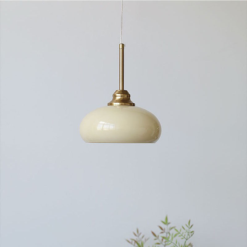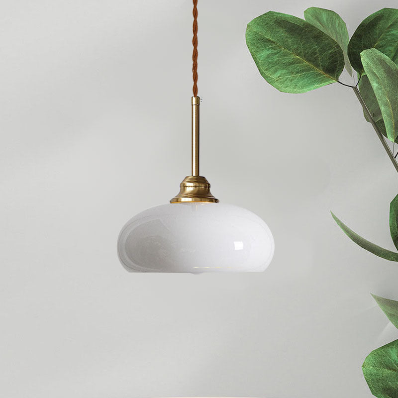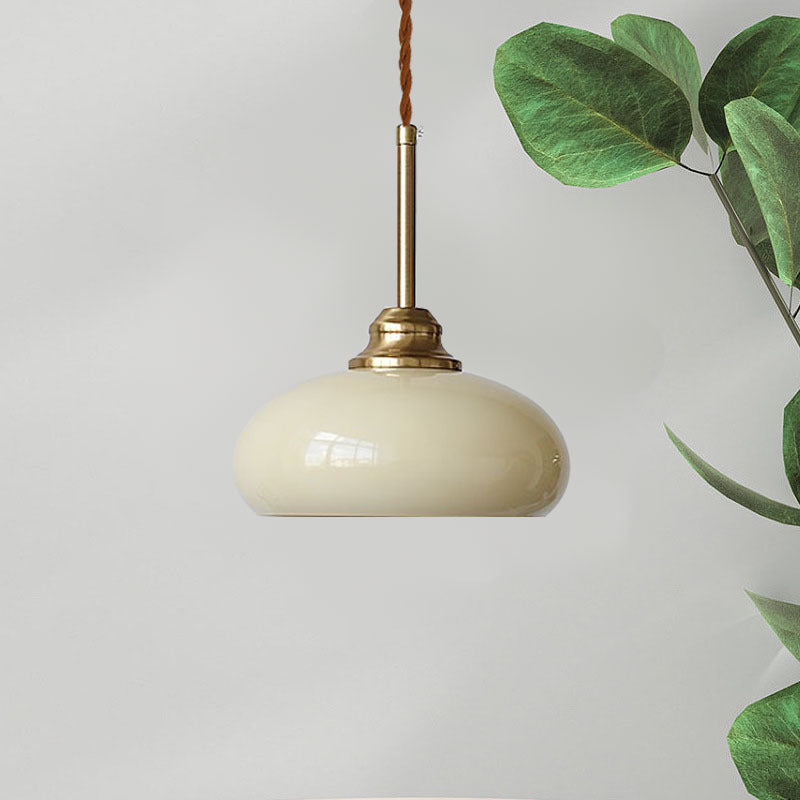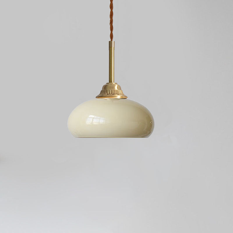 Traditional French Oval Copper Glass 1-Light Pendant Light For Bedroom