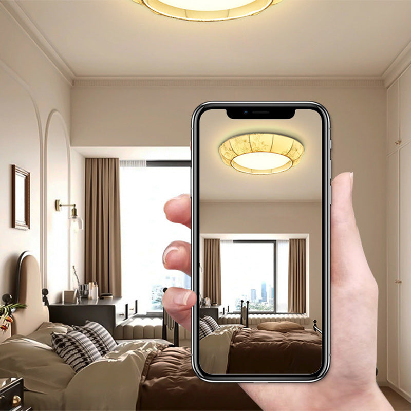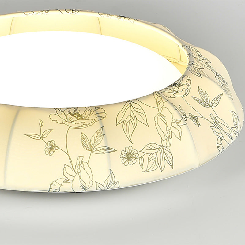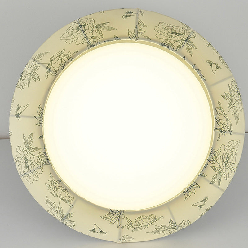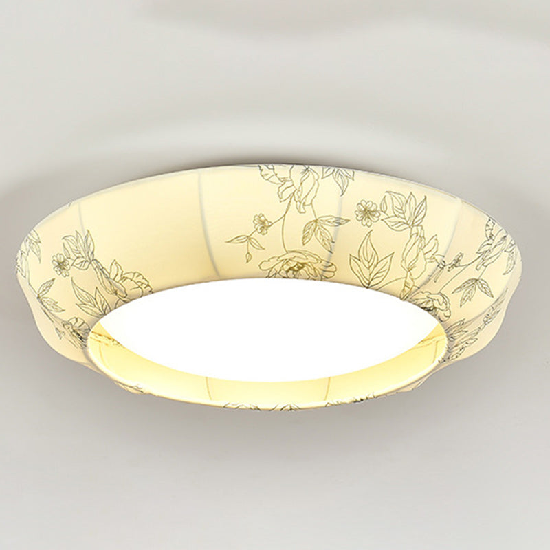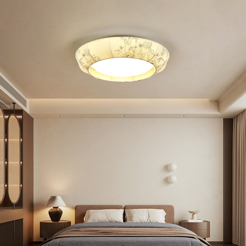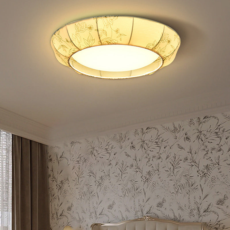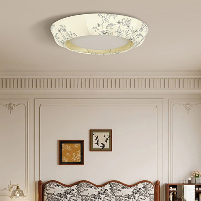 Traditional French Print Bowl Shape Round Iron Fabric LED Flush Mount Ceiling Light For Bedroom