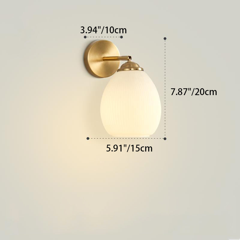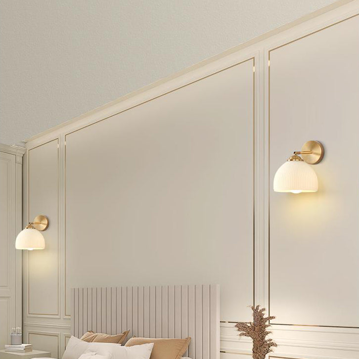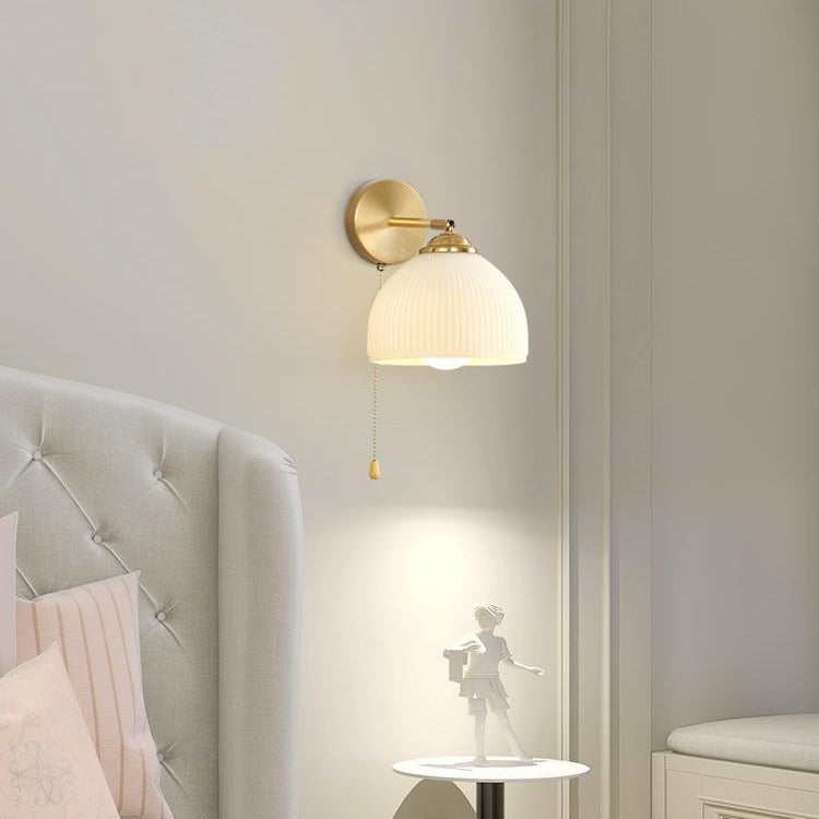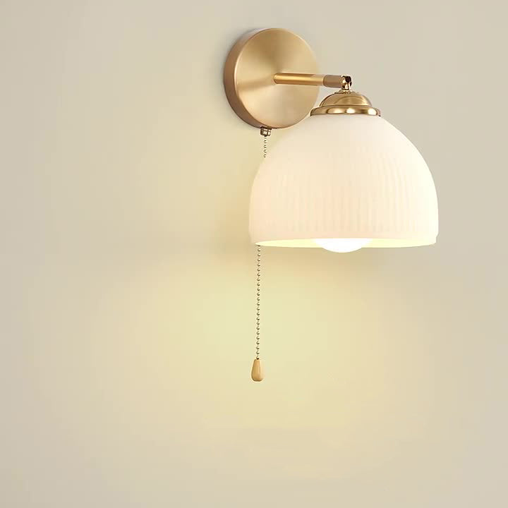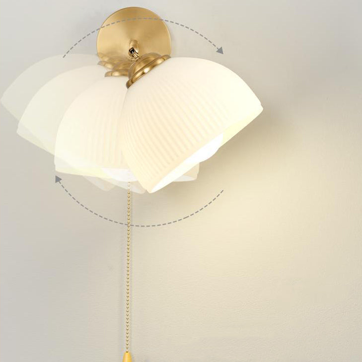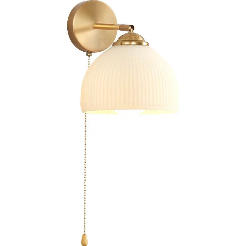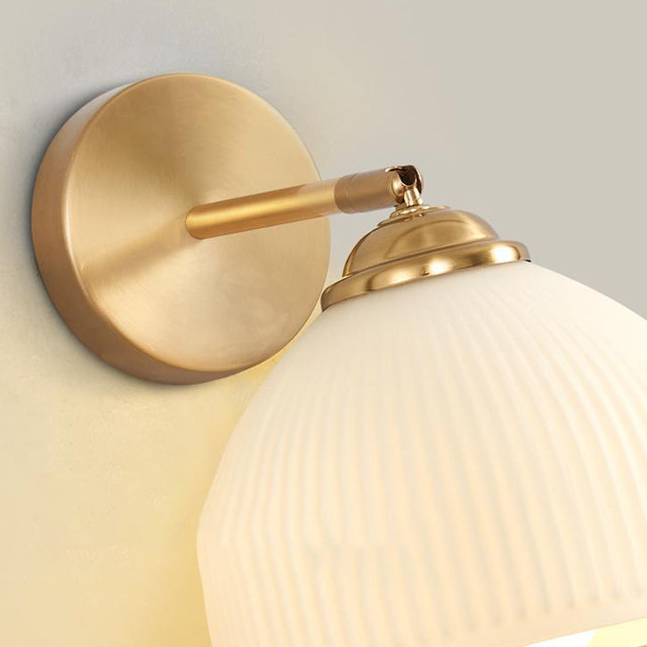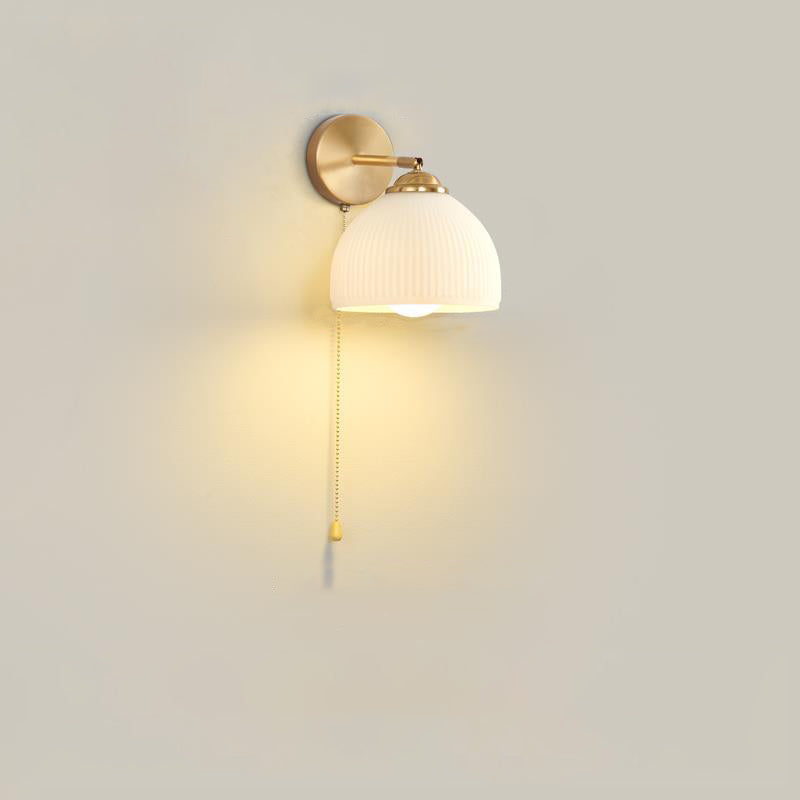 Traditional French Pull Switch Rotatable Dome Half Pleated Glass Shade Iron 1-Light Wall Sconce Lamp For Living Room
