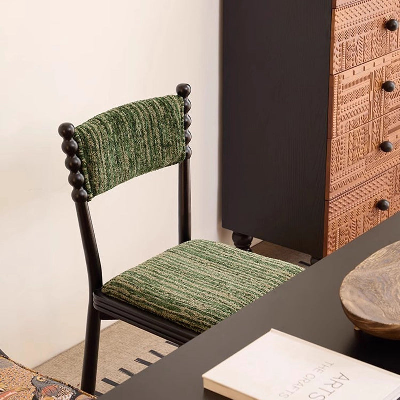 Traditional French Rectangular Chenille Yarn Solid Wood Dining Chair Backrest Armless For Dining Room