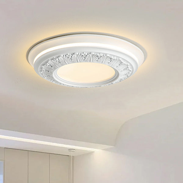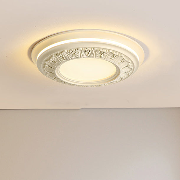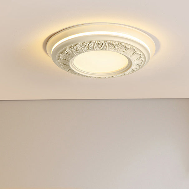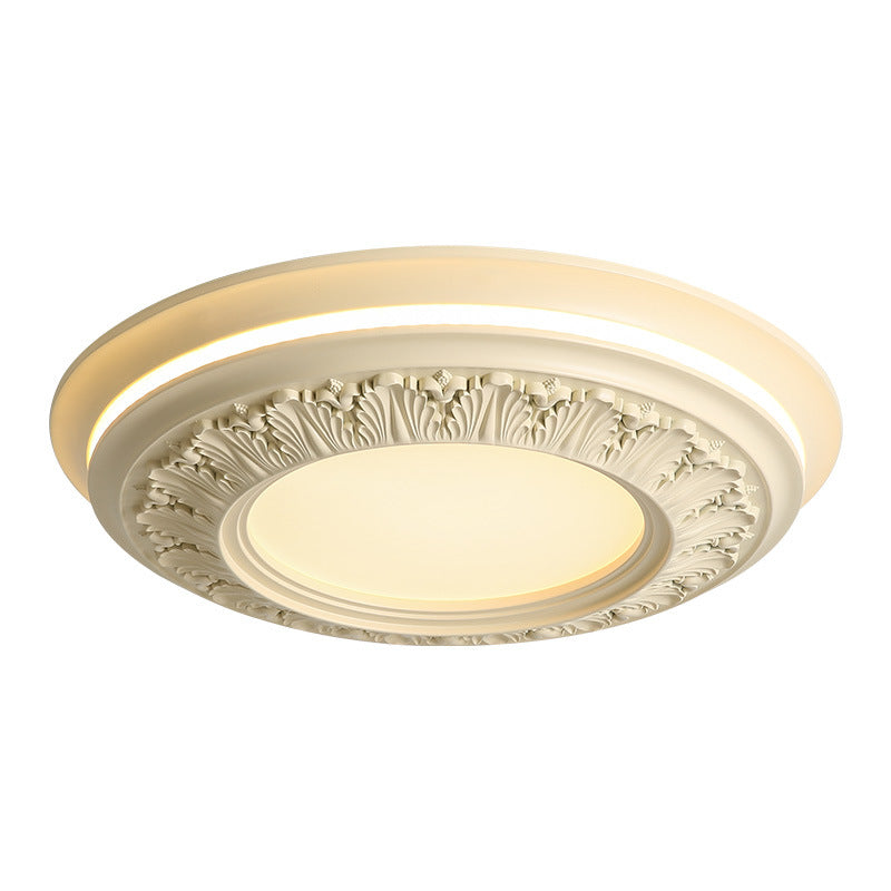 Traditional French Resin PE Round Carved LED Flush Mount Ceiling Light For Bedroom