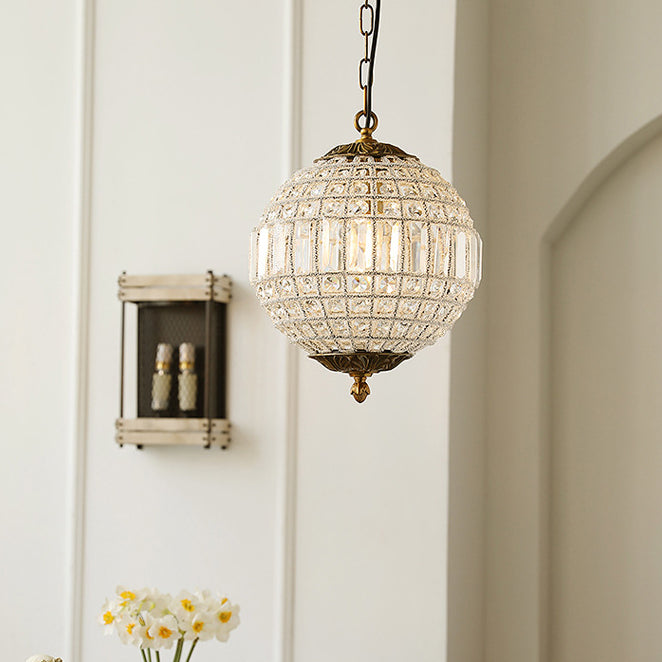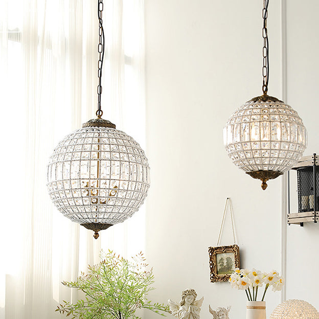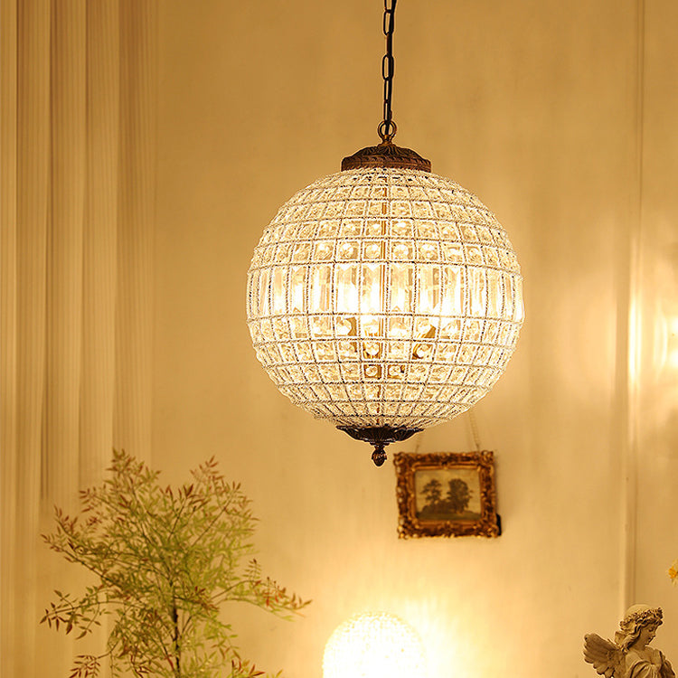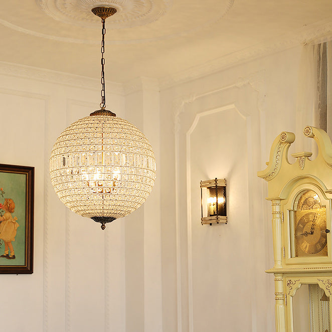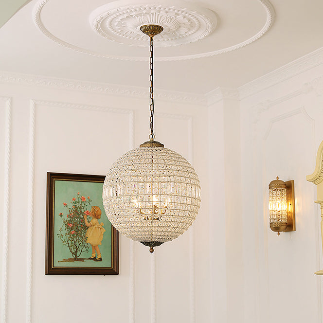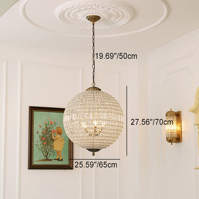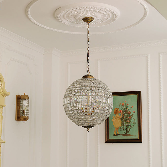 Traditional French Round Ball Crystal Copper 1/3/5 - Light Chandeliers For Dining Room