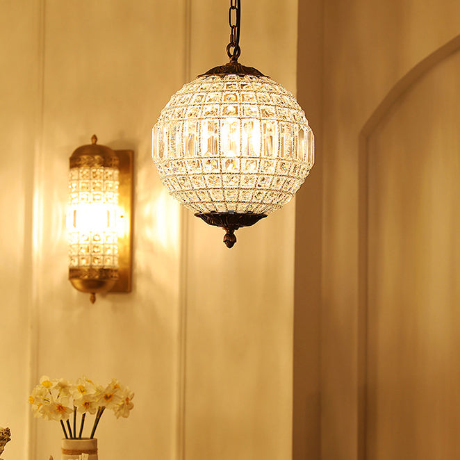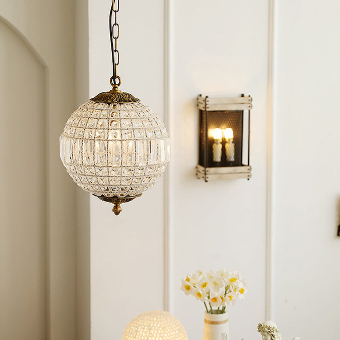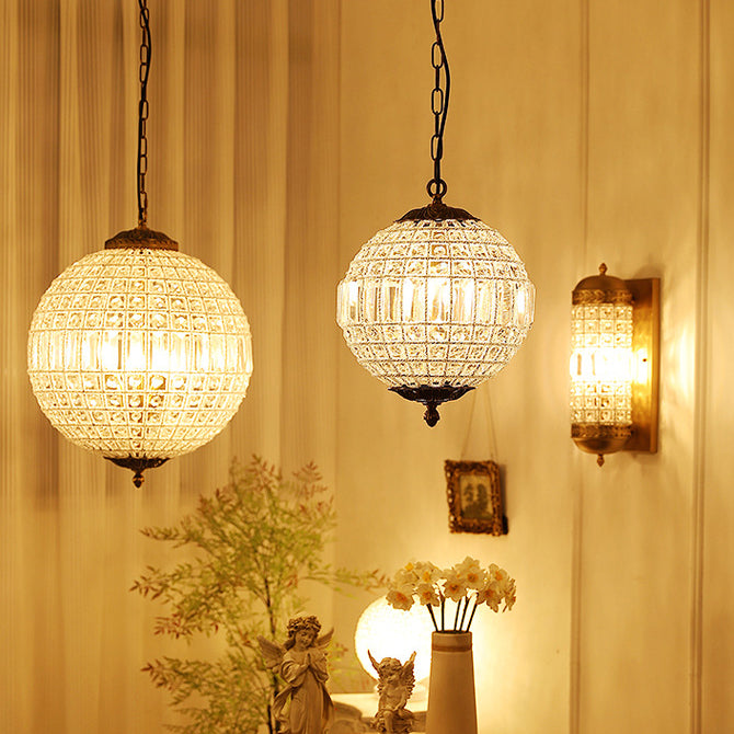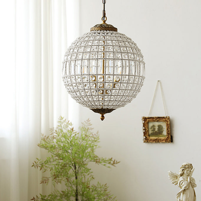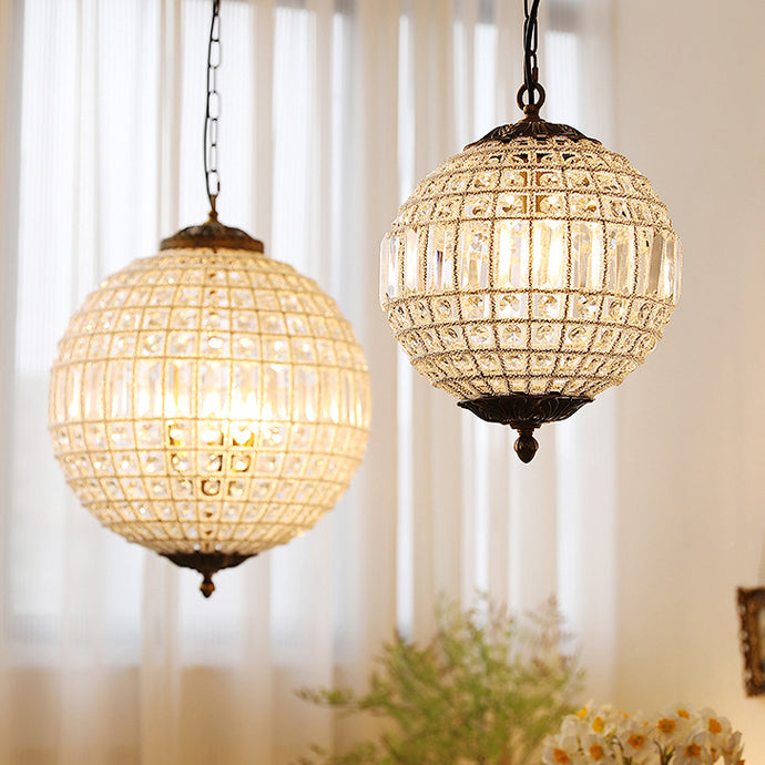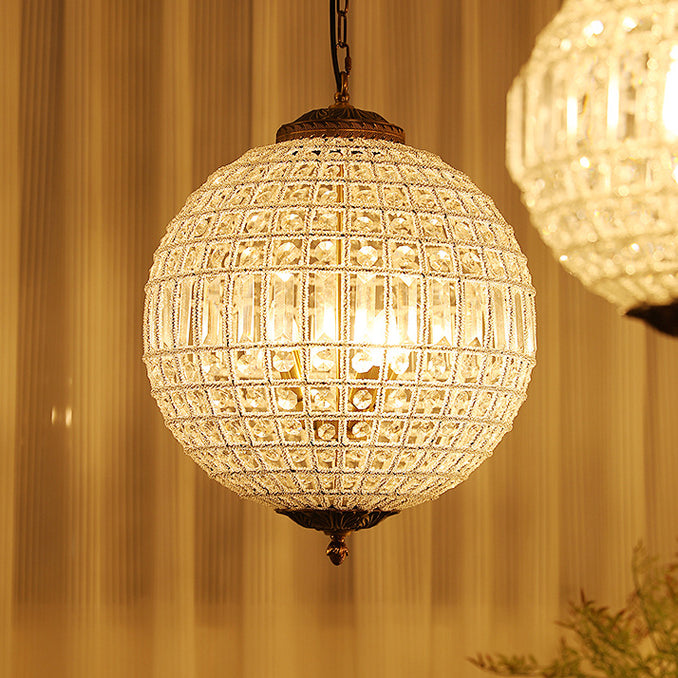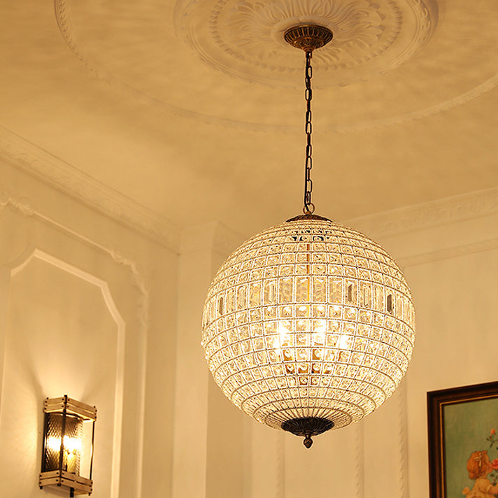 Traditional French Round Ball Crystal Copper 1/3/5 - Light Chandeliers For Dining Room