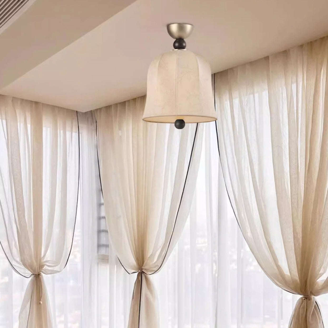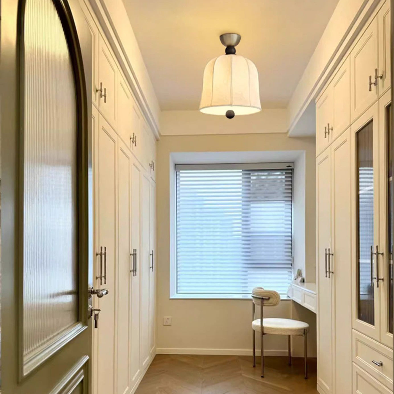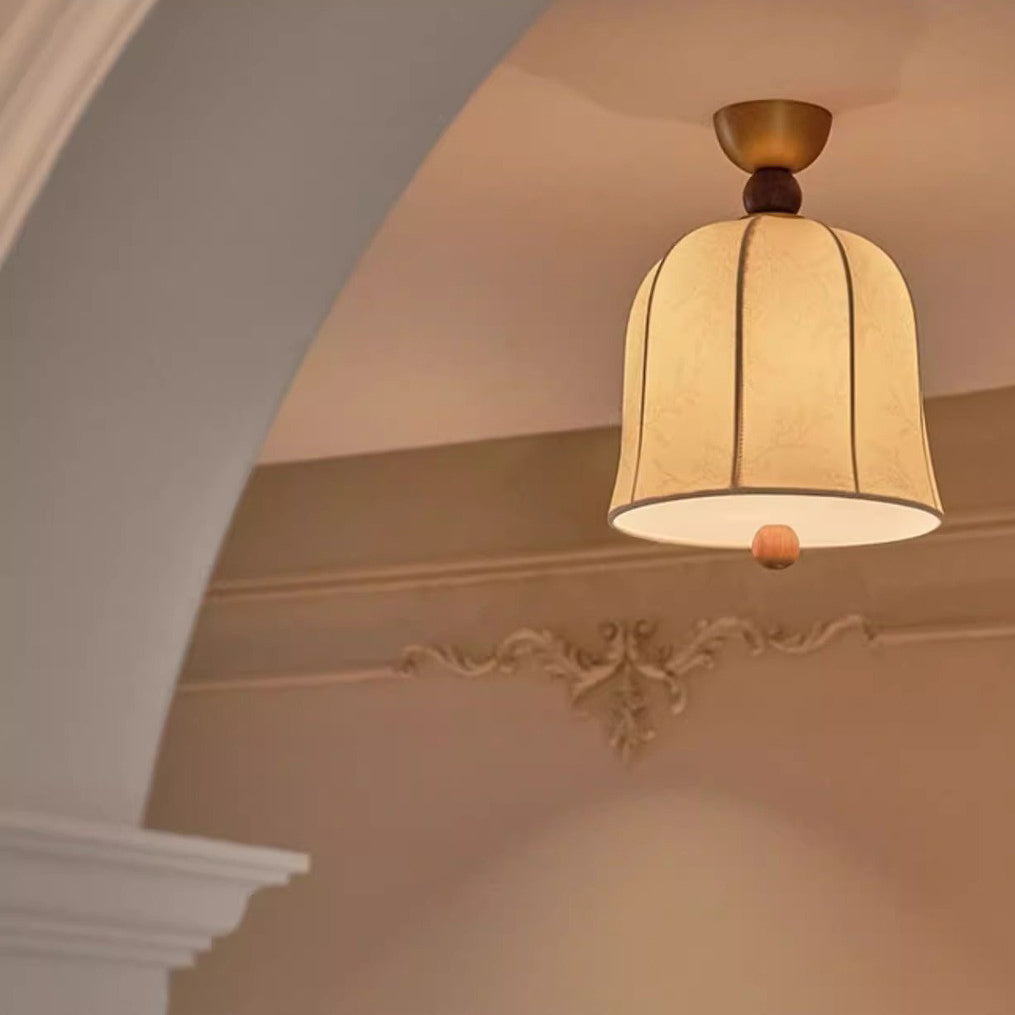 Traditional French Round Birdcage Shape Fabric Wood Metal 1-Light Semi-Flush Mount Ceiling Light For Living Room