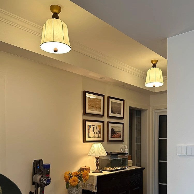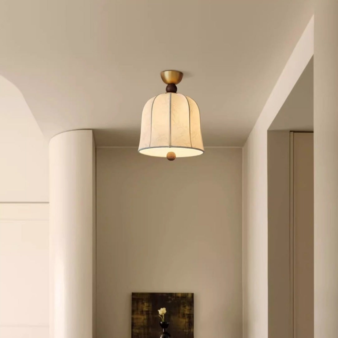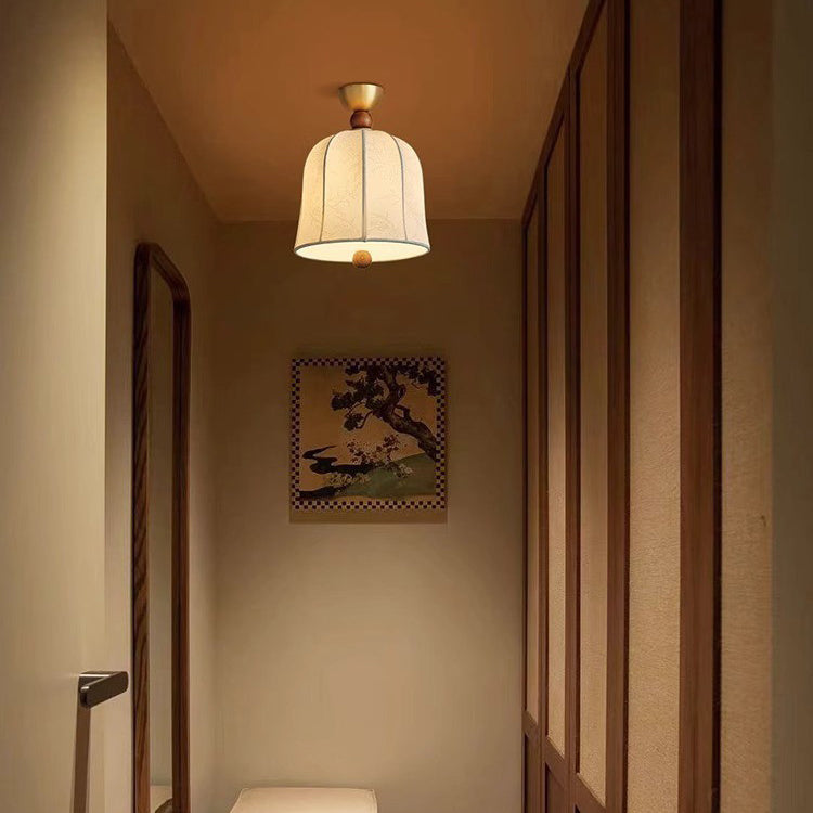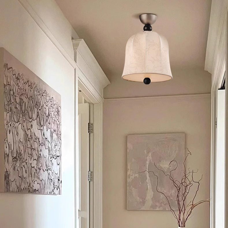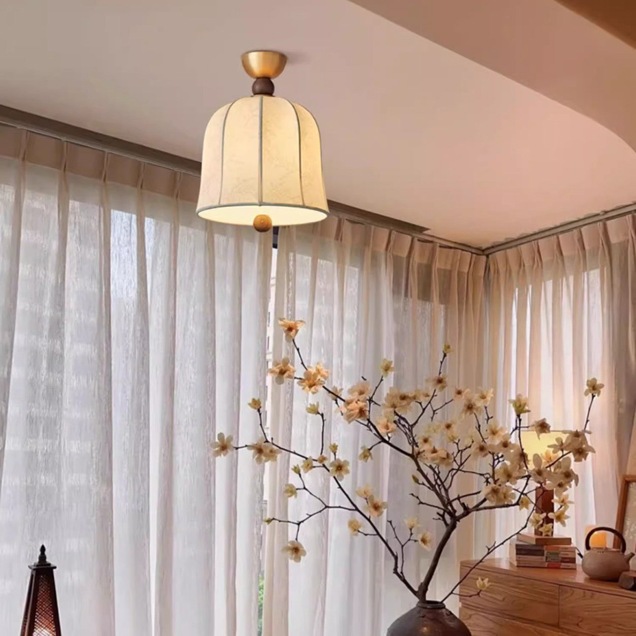 Traditional French Round Birdcage Shape Fabric Wood Metal 1-Light Semi-Flush Mount Ceiling Light For Living Room