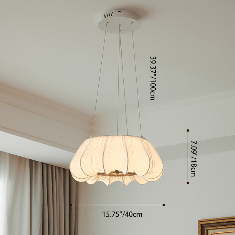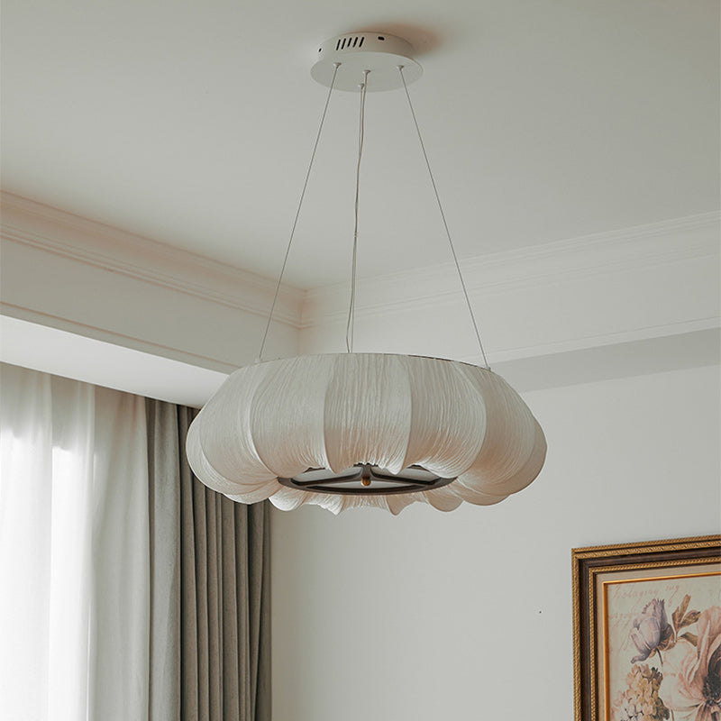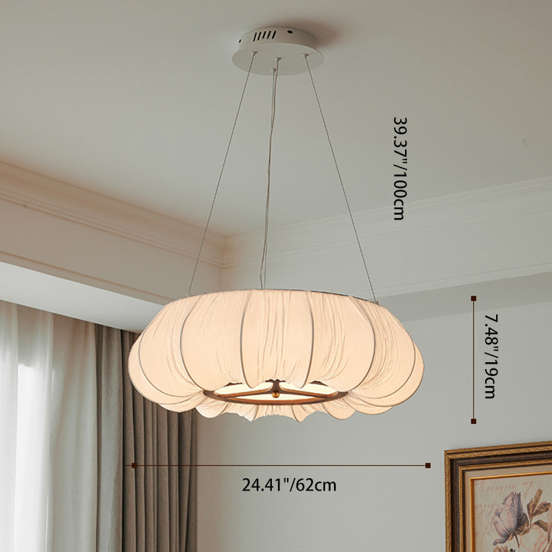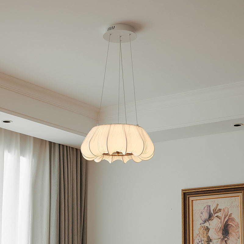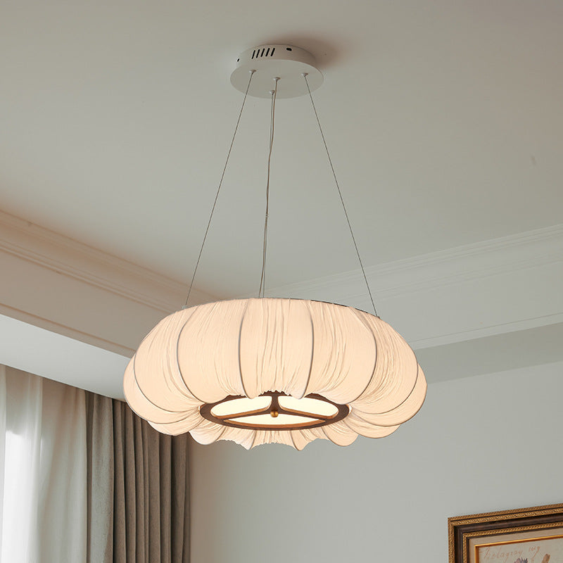 Traditional French Round Fabric Lampshade Iron Solid Wood LED Chandeliers For Living Room