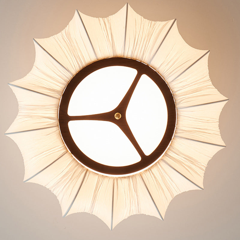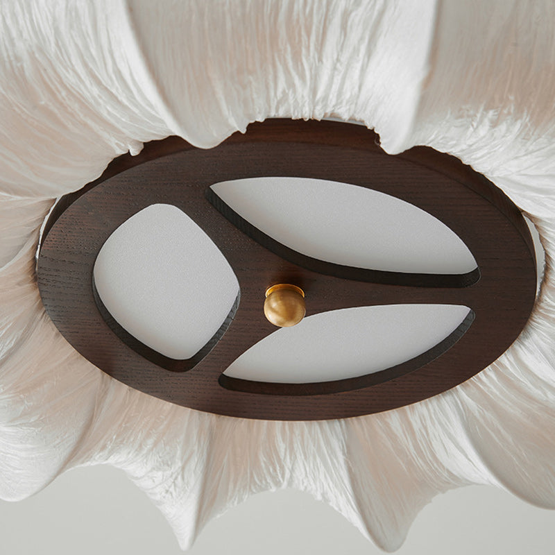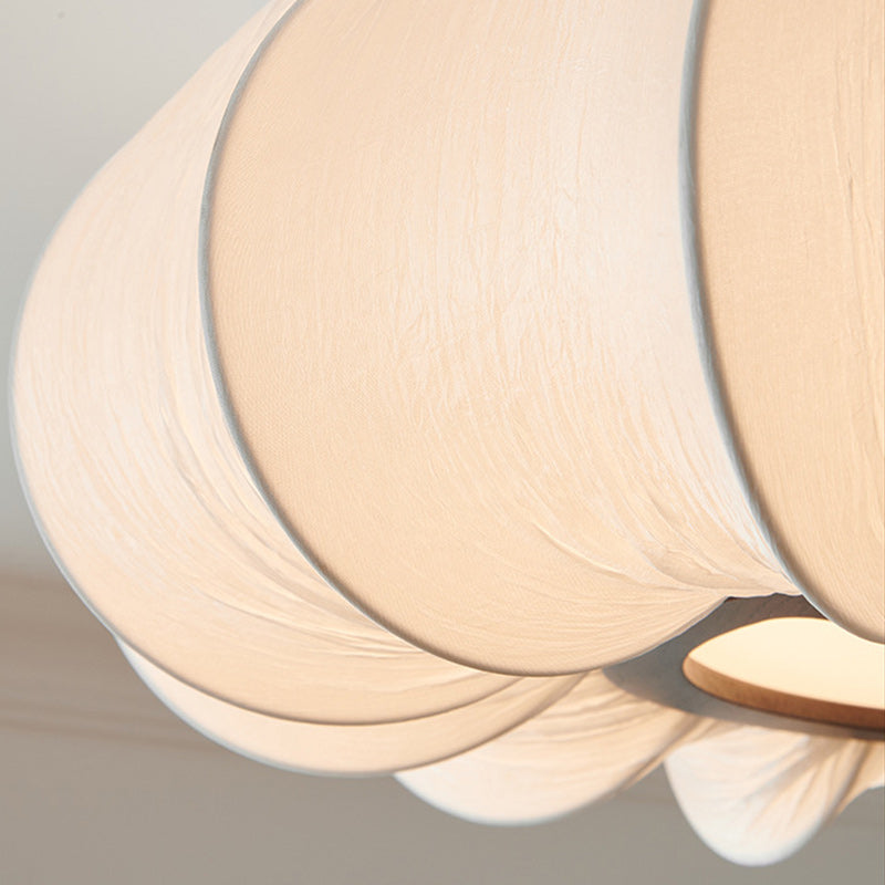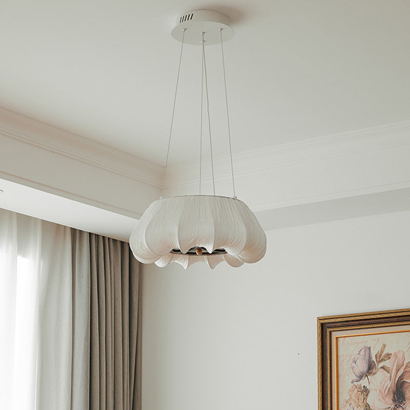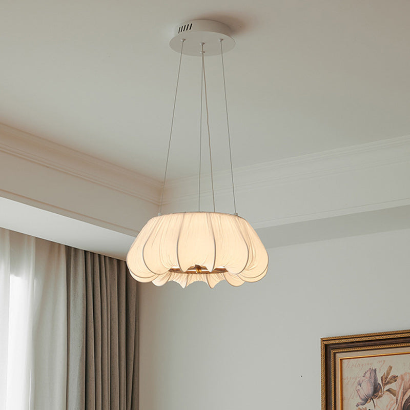 Traditional French Round Fabric Lampshade Iron Solid Wood LED Chandeliers For Living Room