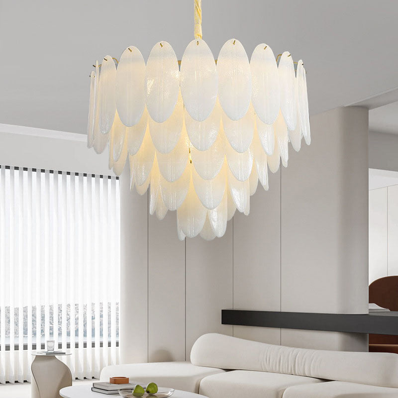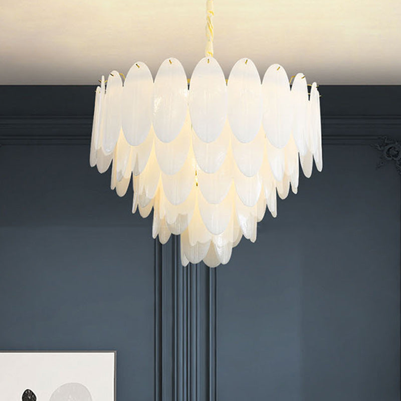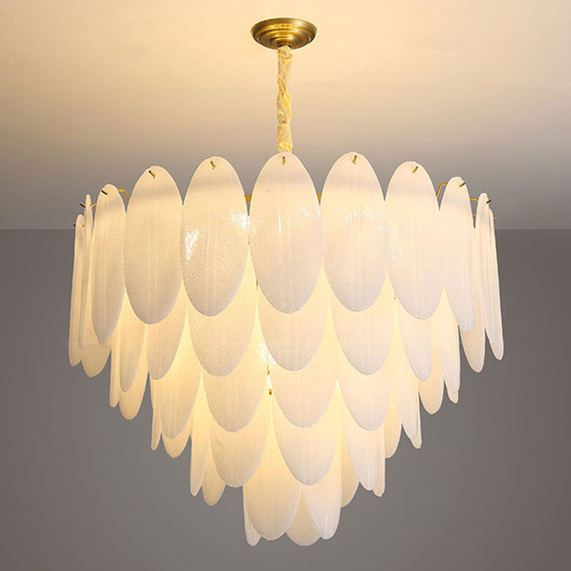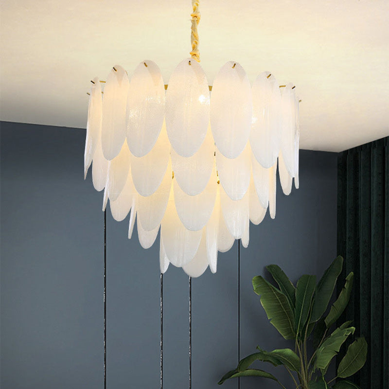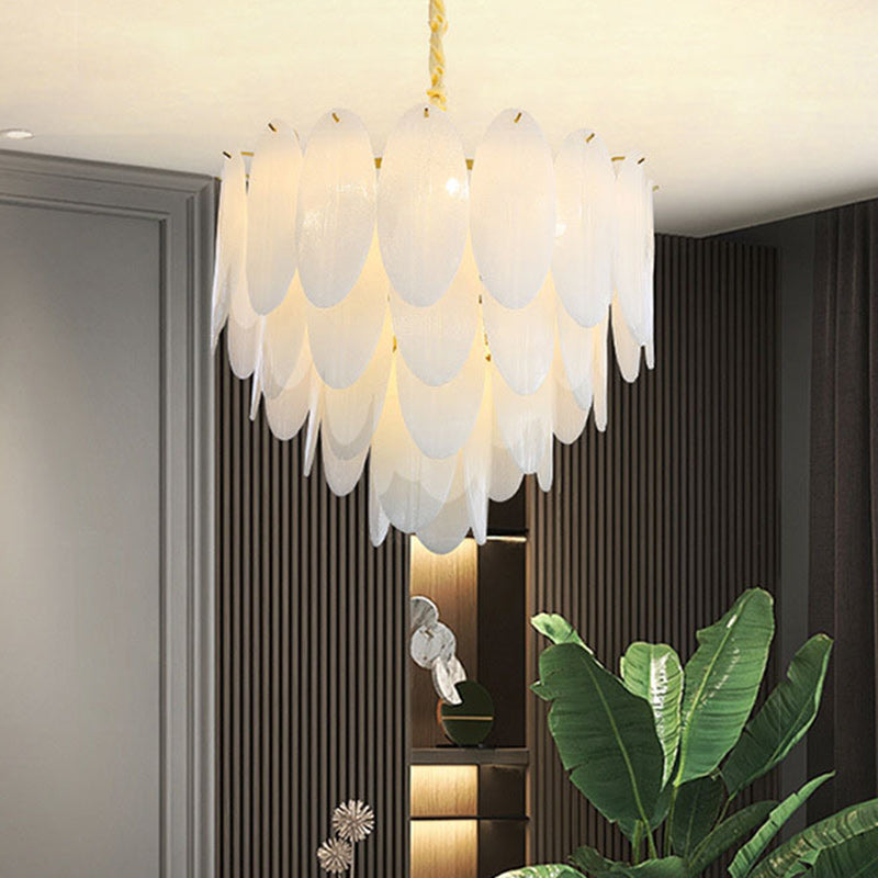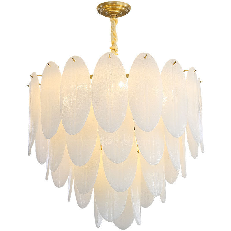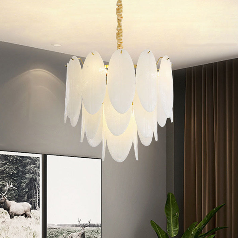 Traditional French Round Leaf Stacked Glass Iron 7/11/16 Light Chandelier For Living Room