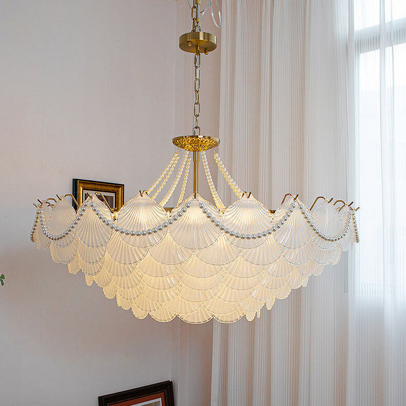 Traditional French Round Shell Hardware Glass Crystal 9/12 Chandelier For Living Room