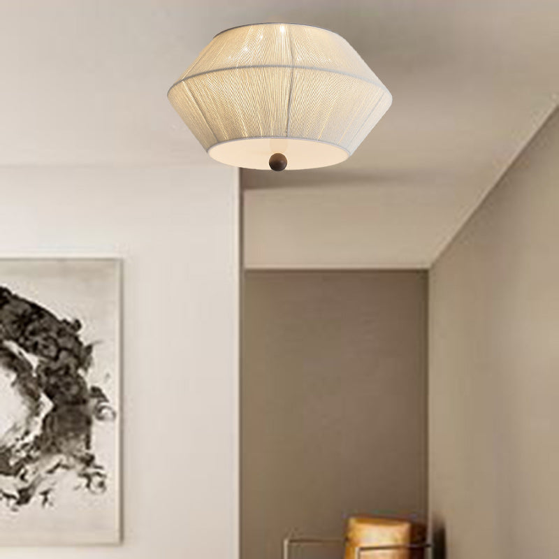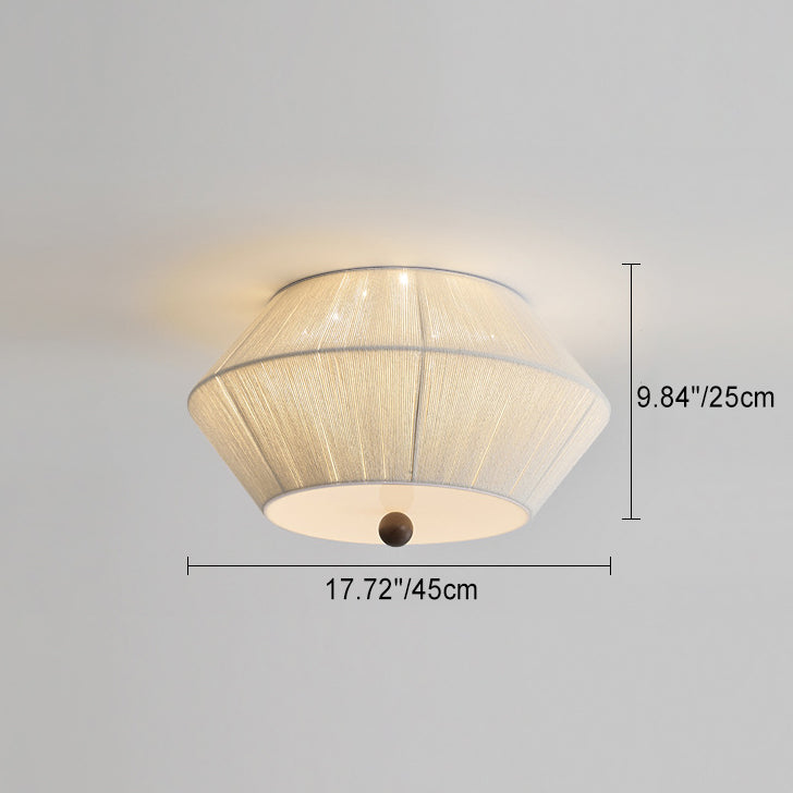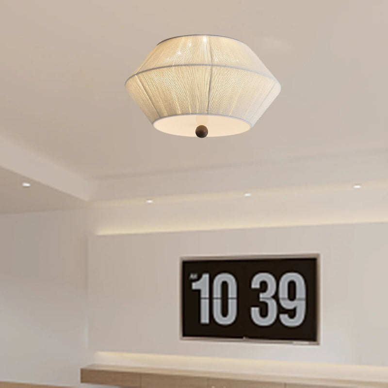 Traditional French Wood Hemp Rope Flying Saucer 3-Light Flush Mount Ceiling Light For Bedroom
