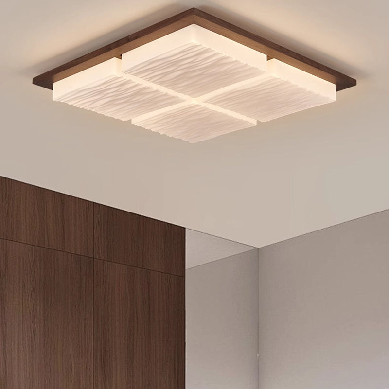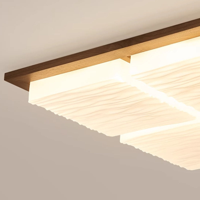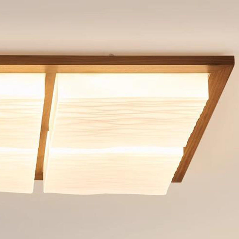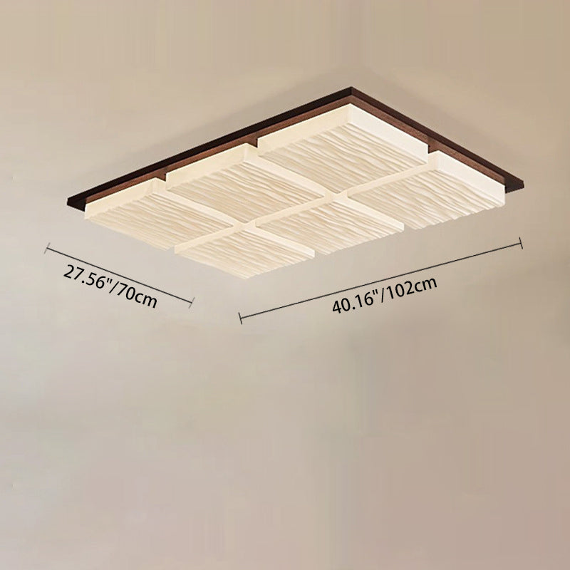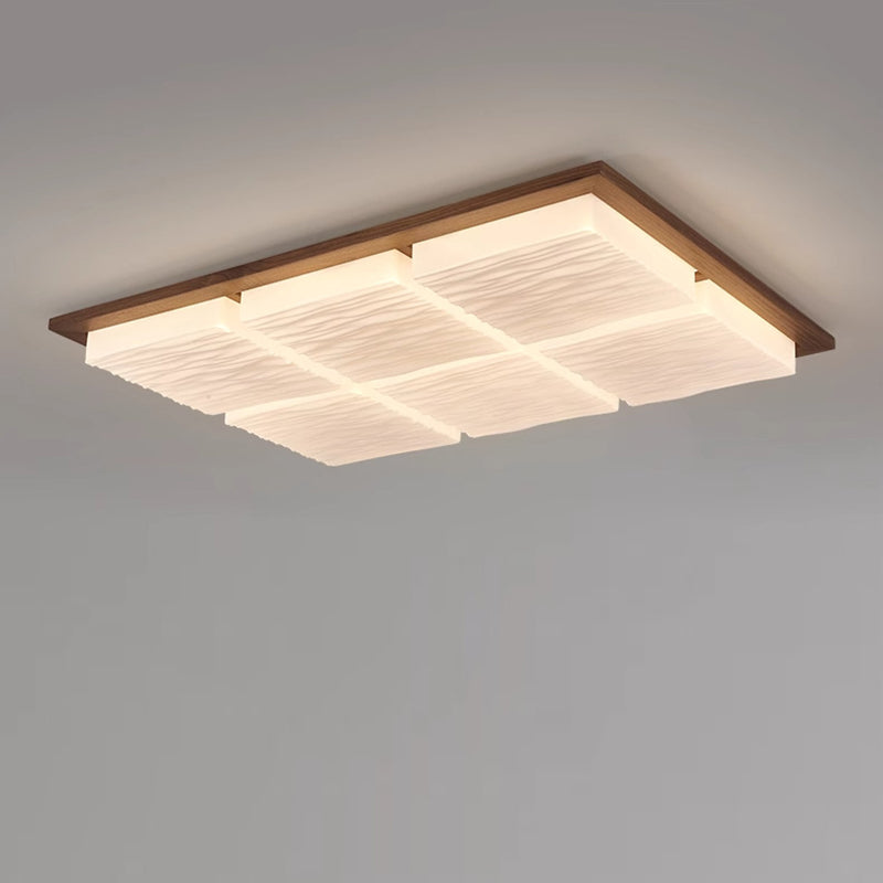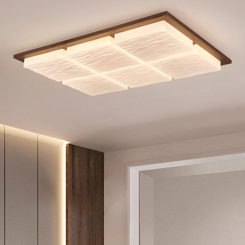 Traditional Japanese Acrylic Wood Base Rectangular Square Blocks Water Grain LED Flush Mount Ceiling Light For Hallway