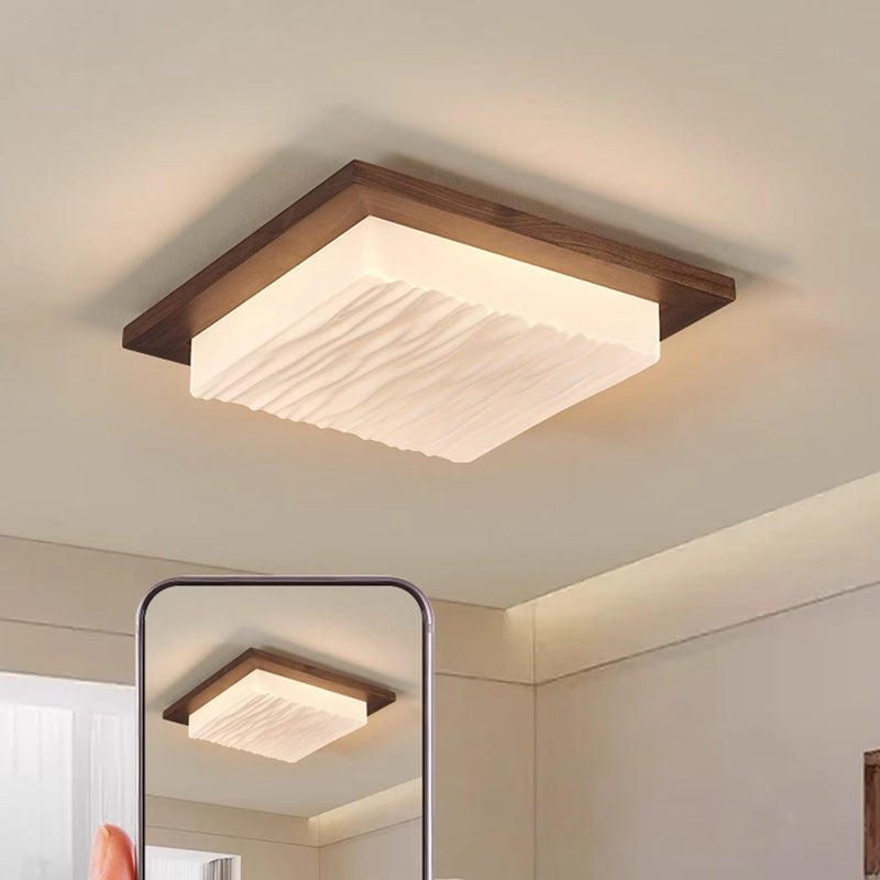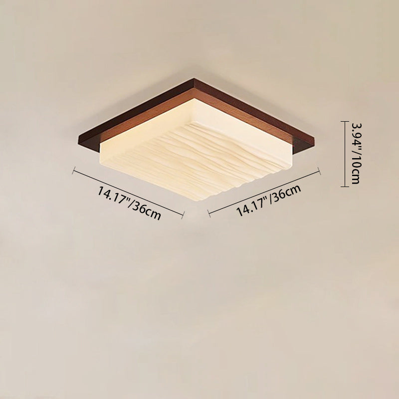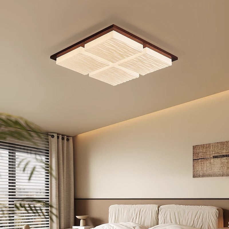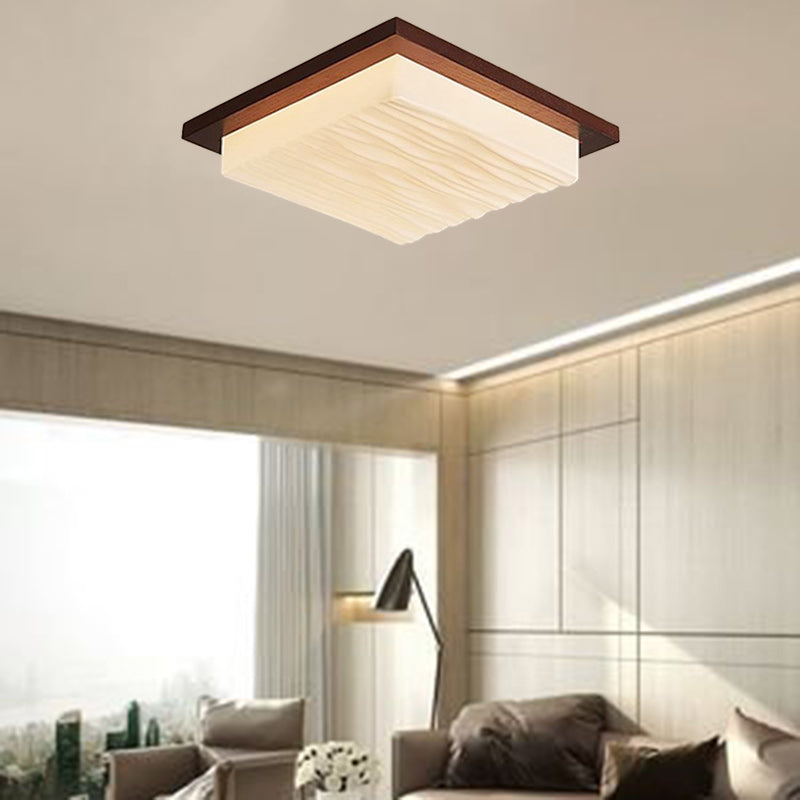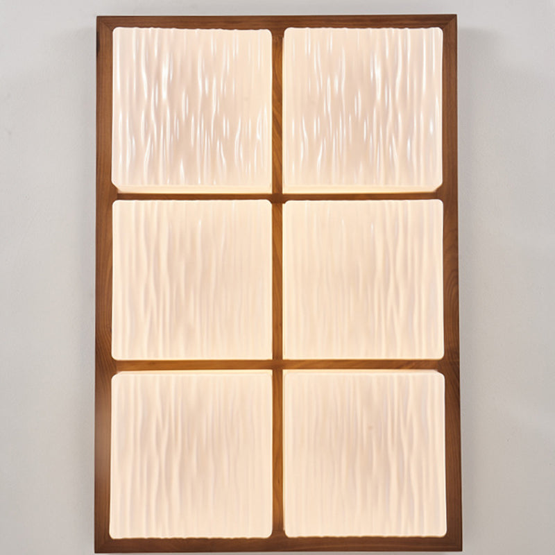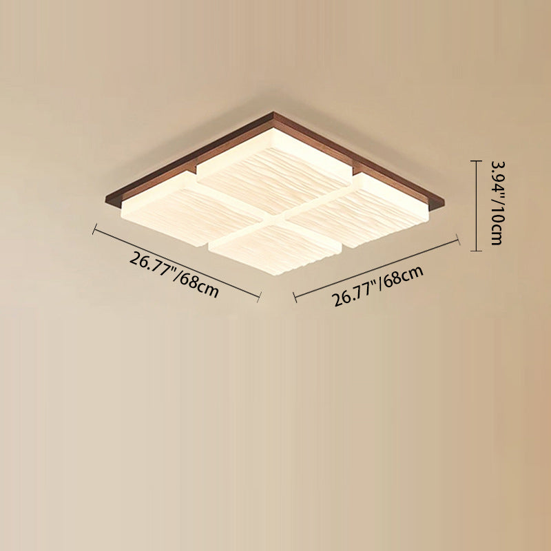 Traditional Japanese Acrylic Wood Base Rectangular Square Blocks Water Grain LED Flush Mount Ceiling Light For Hallway