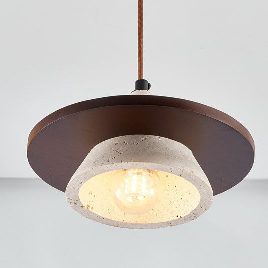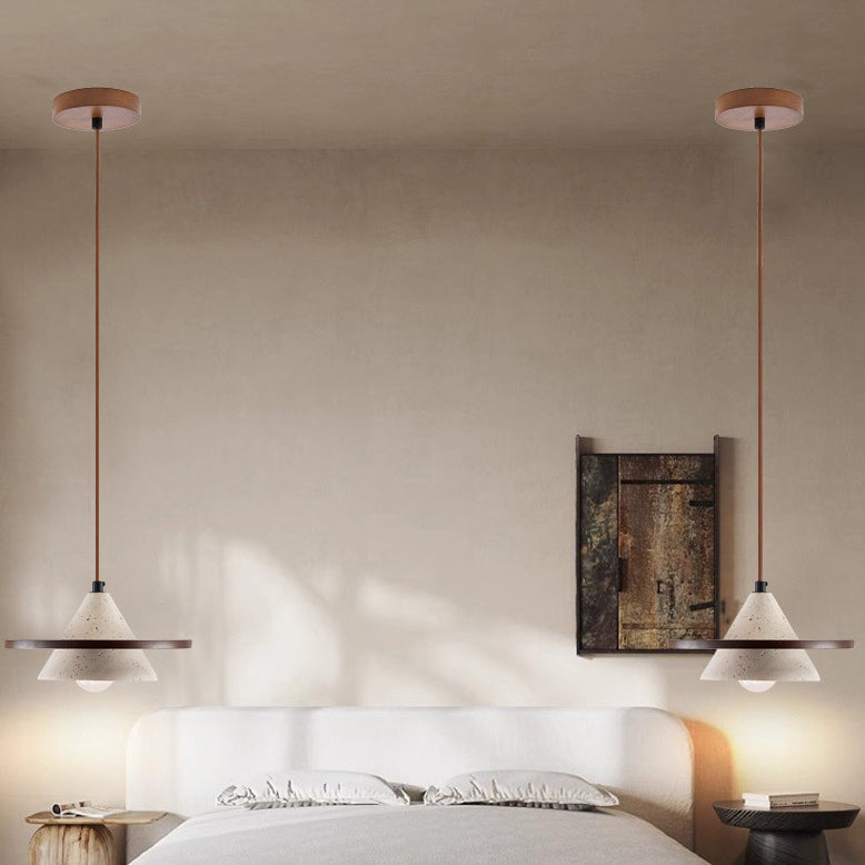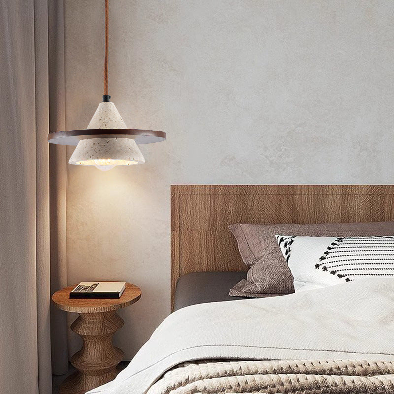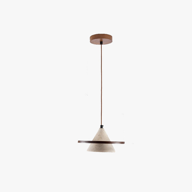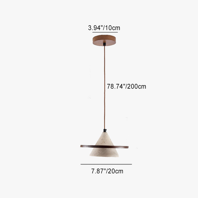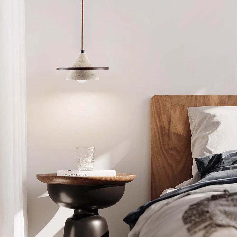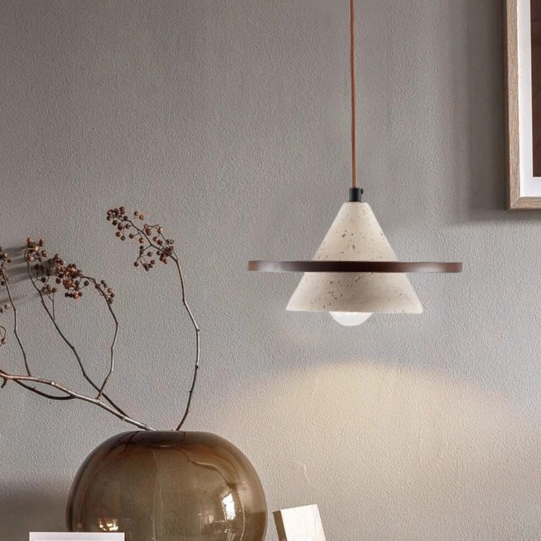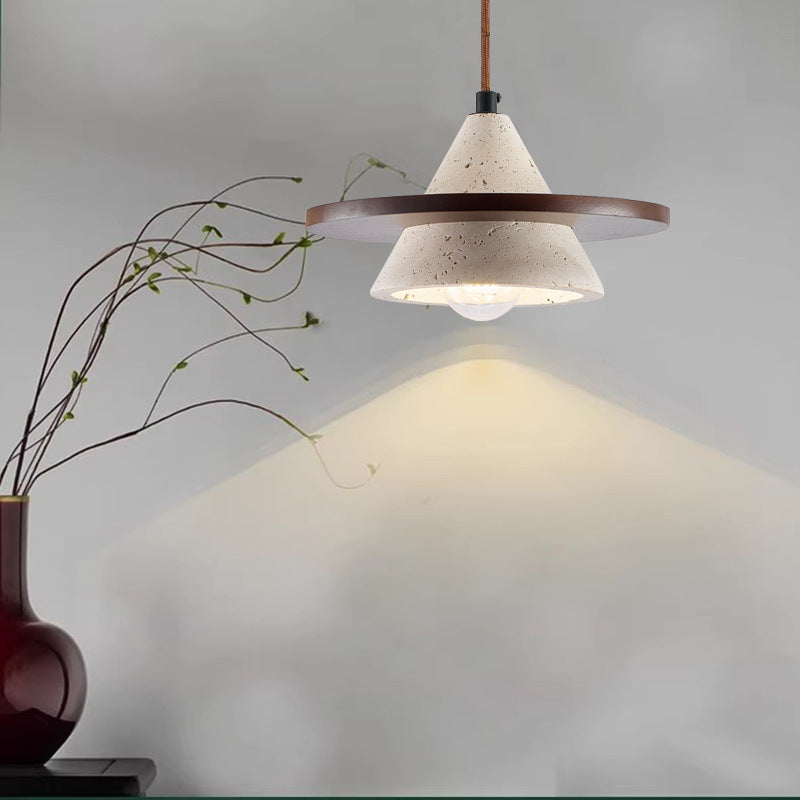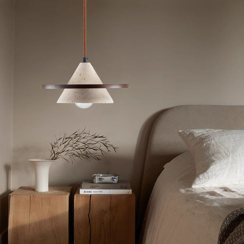 Traditional Japanese Cone Yellow Travertine Walnut 1-Light Pendant Light For Bedroom