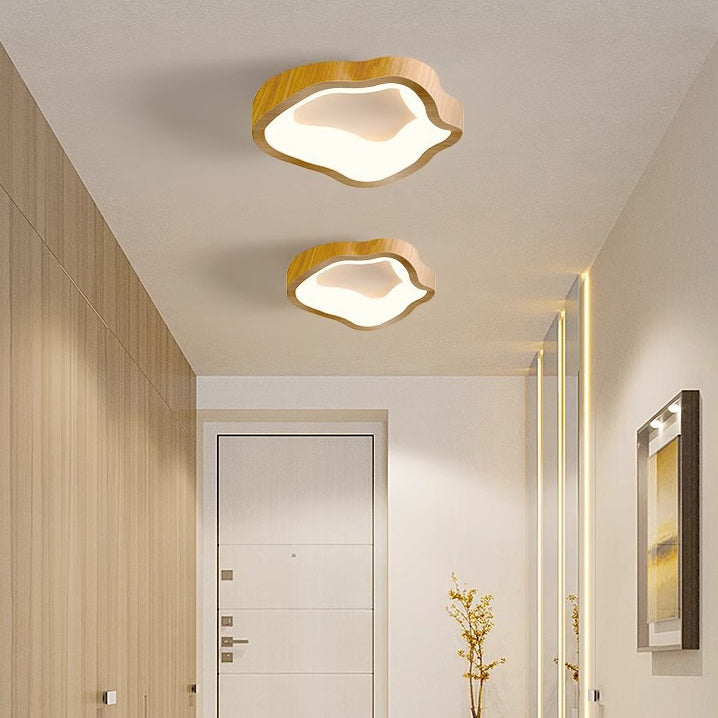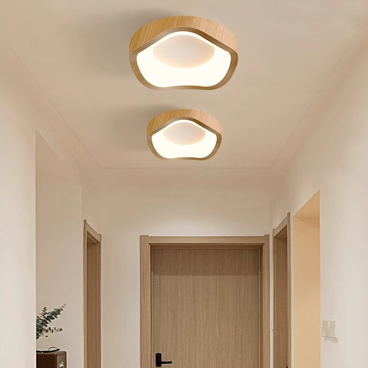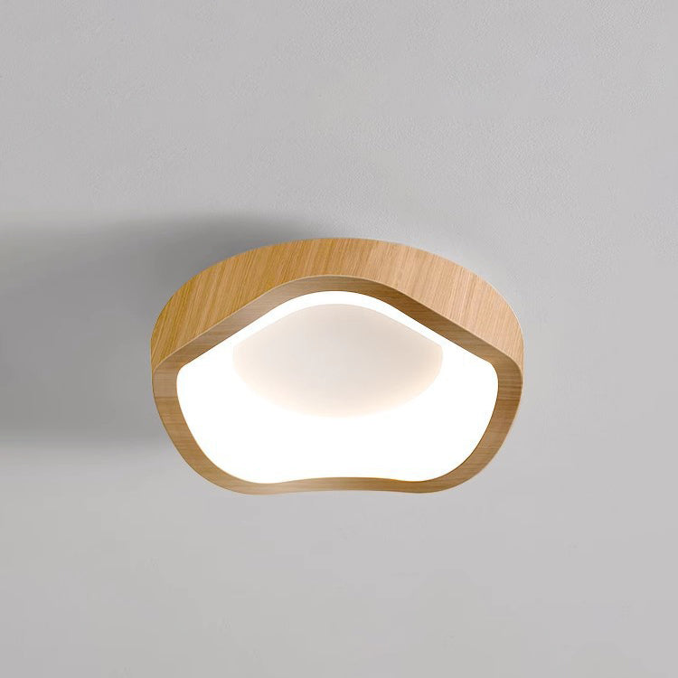 Traditional Japanese Corrugated Iron PE LED Flush Mount Ceiling Light For Living Room
