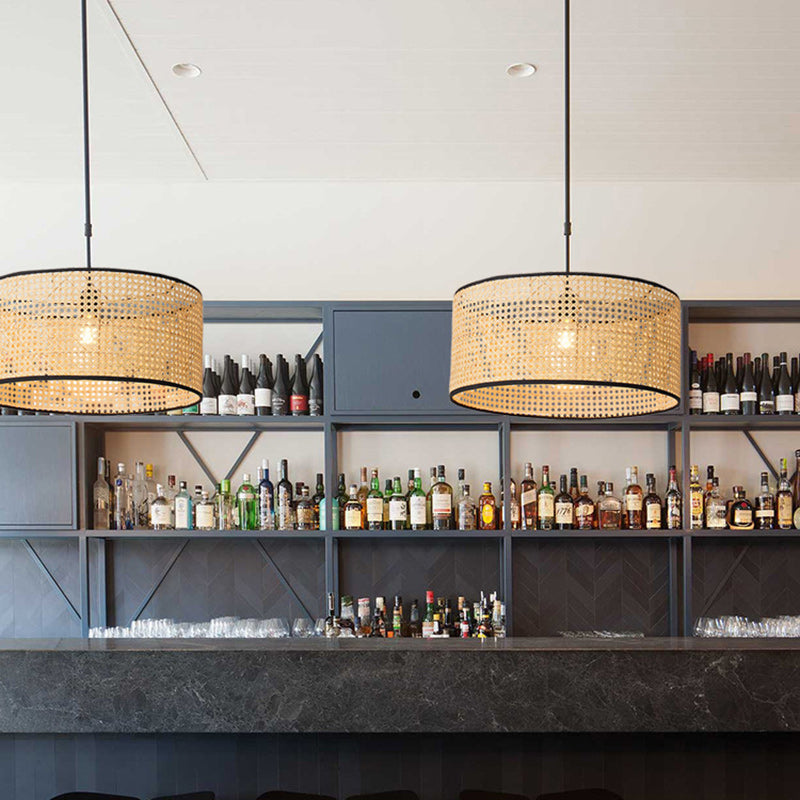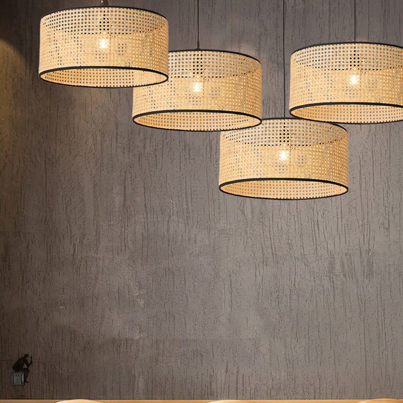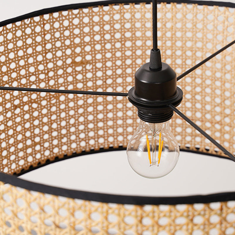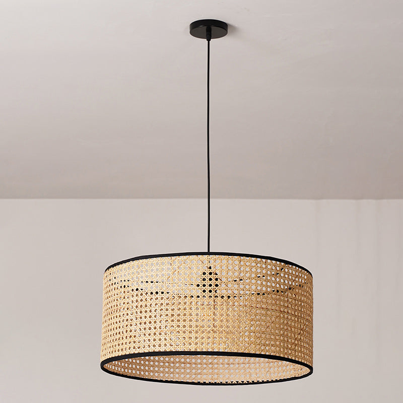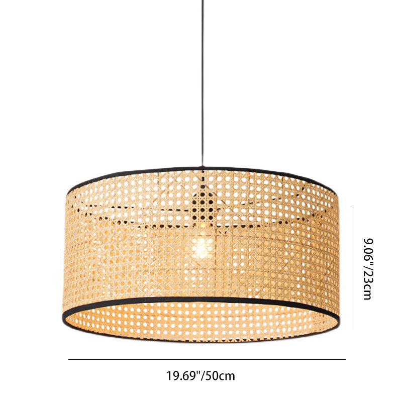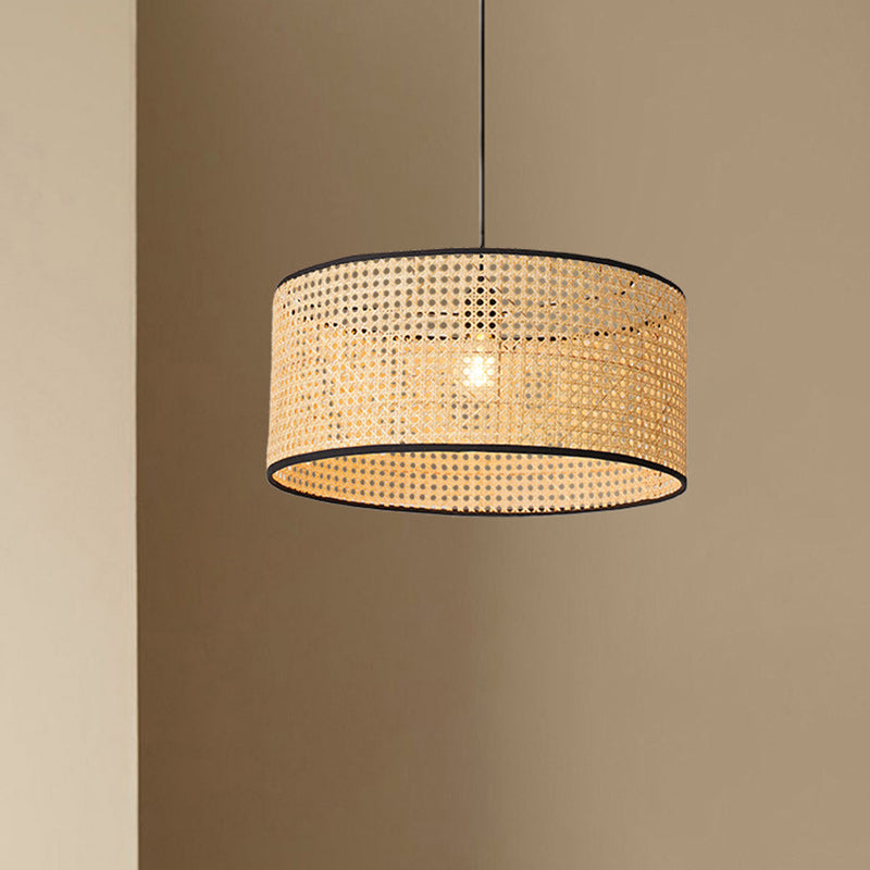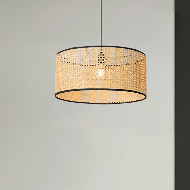 Traditional Japanese Cylindrical Wicker Iron 1-light Pendant Light For Bedroom