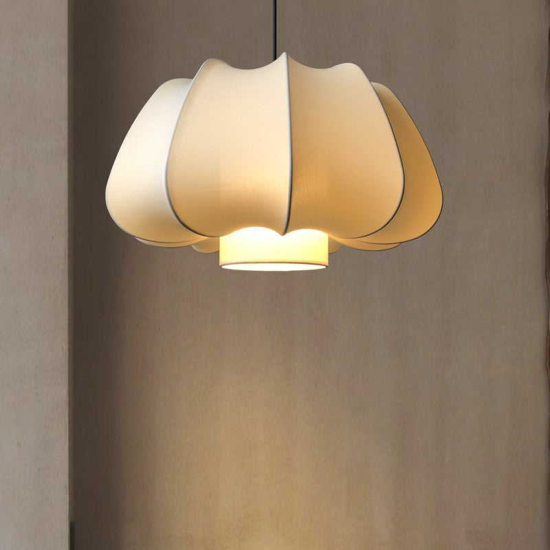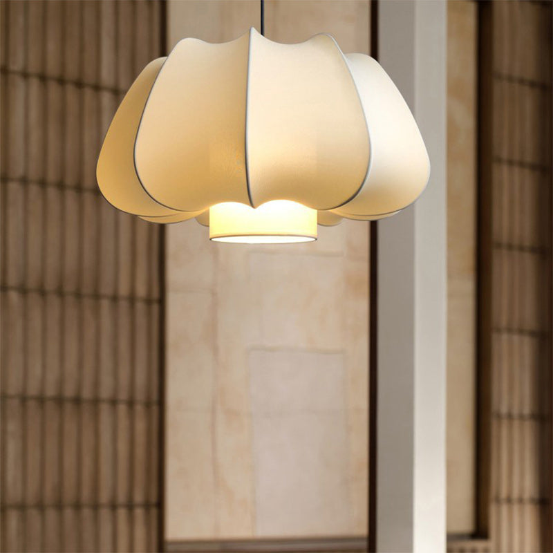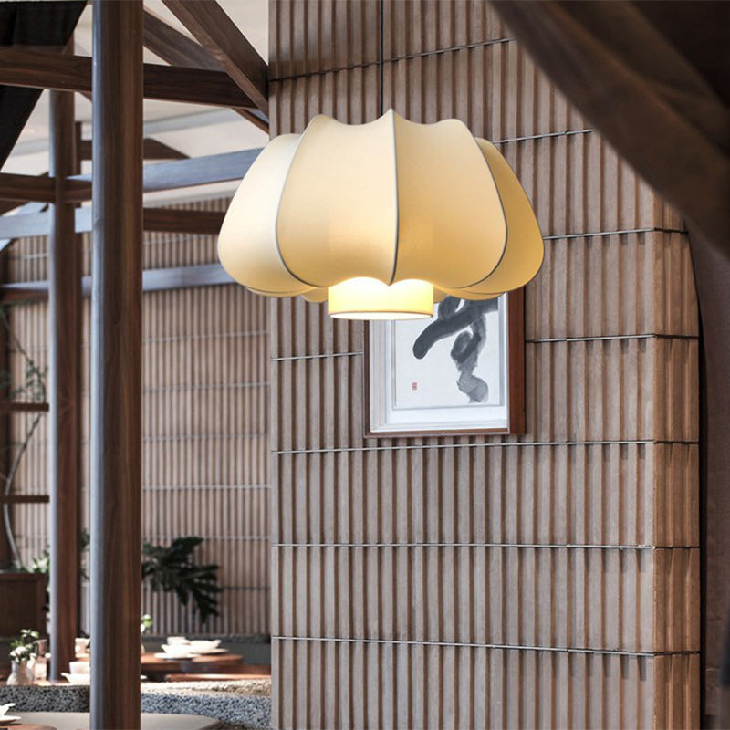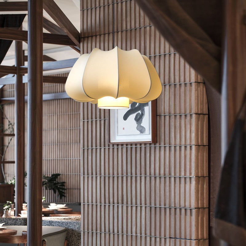 Traditional Japanese Dome Iron Fabric 1-Light Pendant Light For Living Room