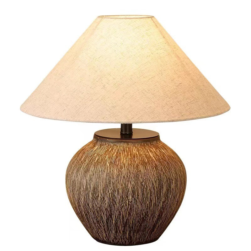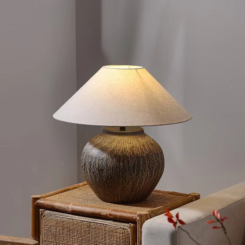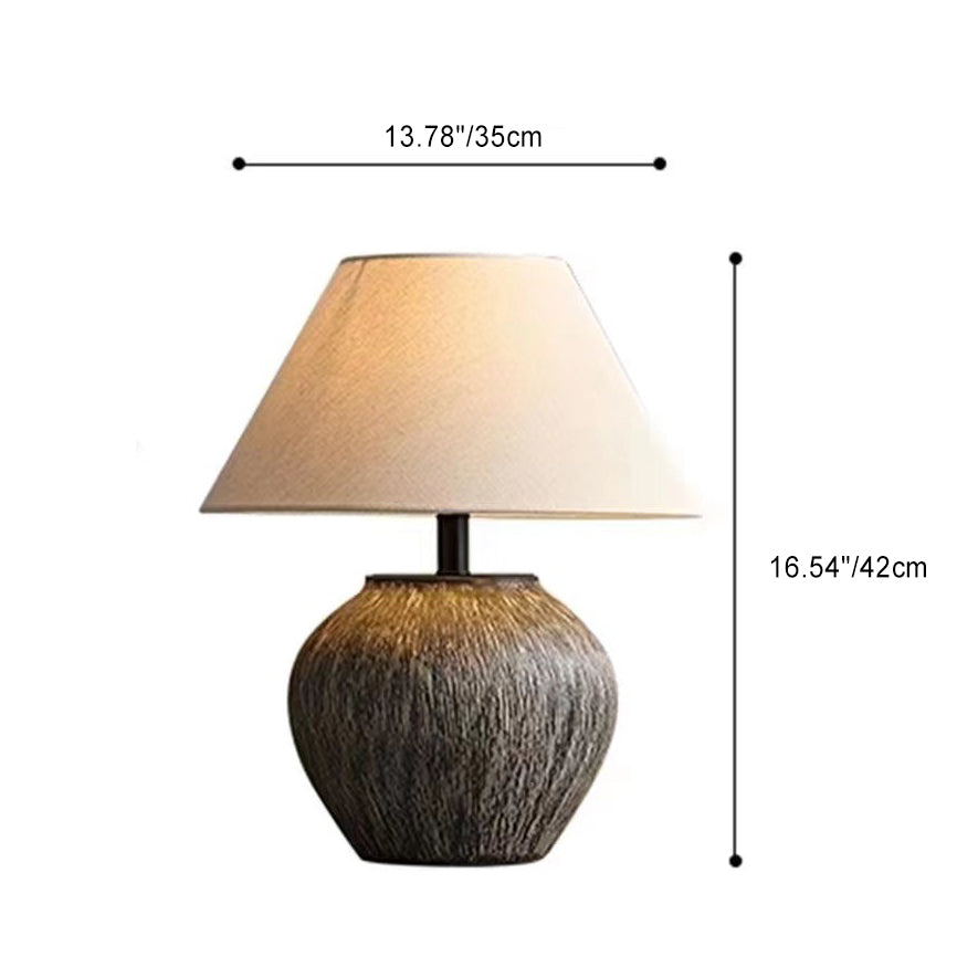 Traditional Japanese Drum Iron Ceramic Fabric 1-Light Table Lamp For Living Room