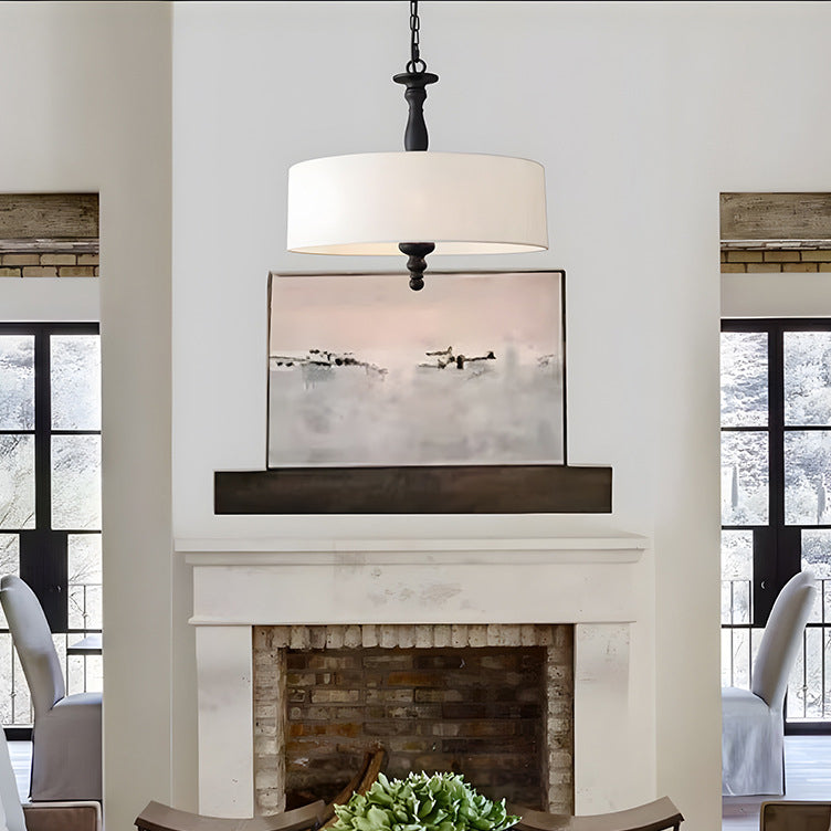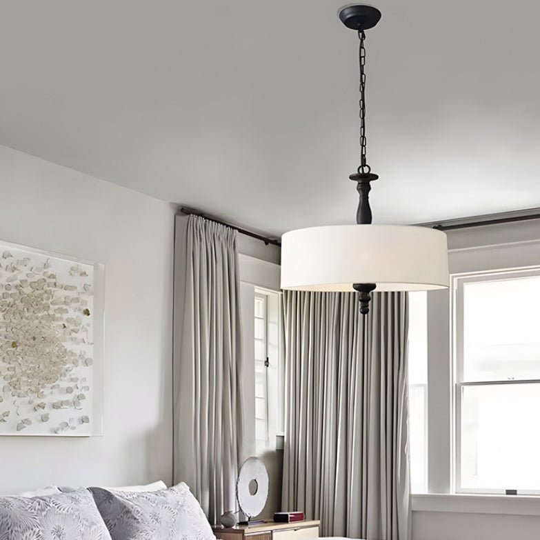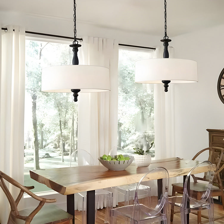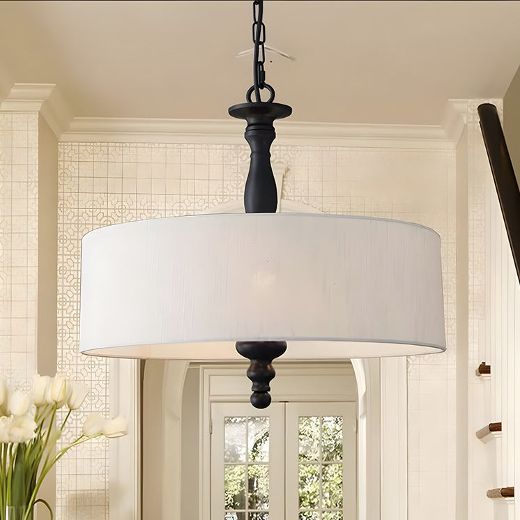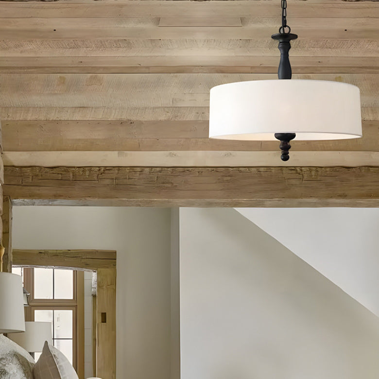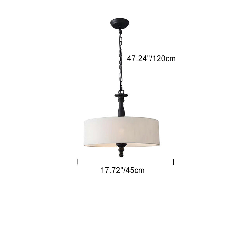 Traditional Japanese Fabric Cylinder Iron 1-Light Pendant Light For Living Room