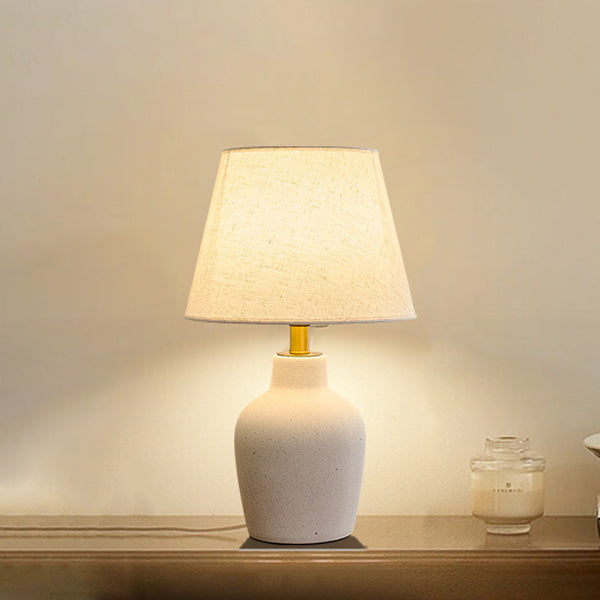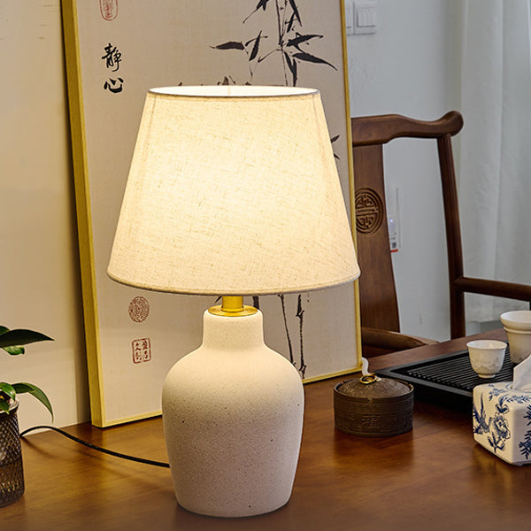 Traditional Japanese Fabric Shade Ceramic Bottle Base 1-Light Table Lamp For Bedroom