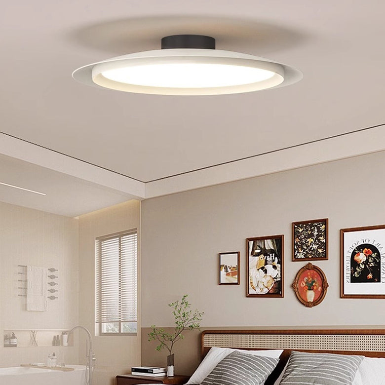 Traditional Japanese Fisherman Hat Shape Iron Acrylic LED Semi-Flush Mount Ceiling Light For Living Room