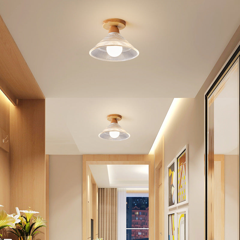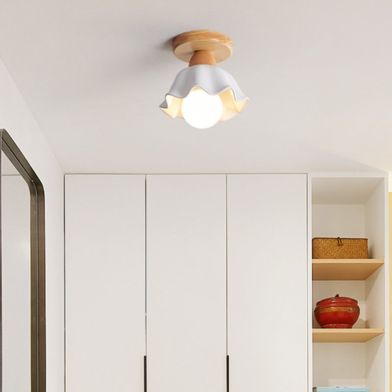 Traditional Japanese Flower Disc Glass Wood 1-Light Semi-Flush Mount Ceiling Light For Hallway