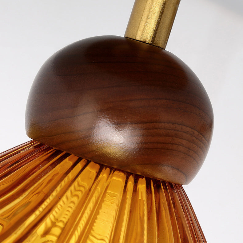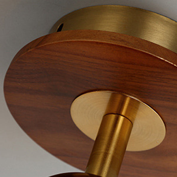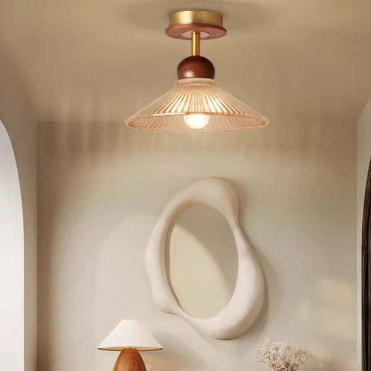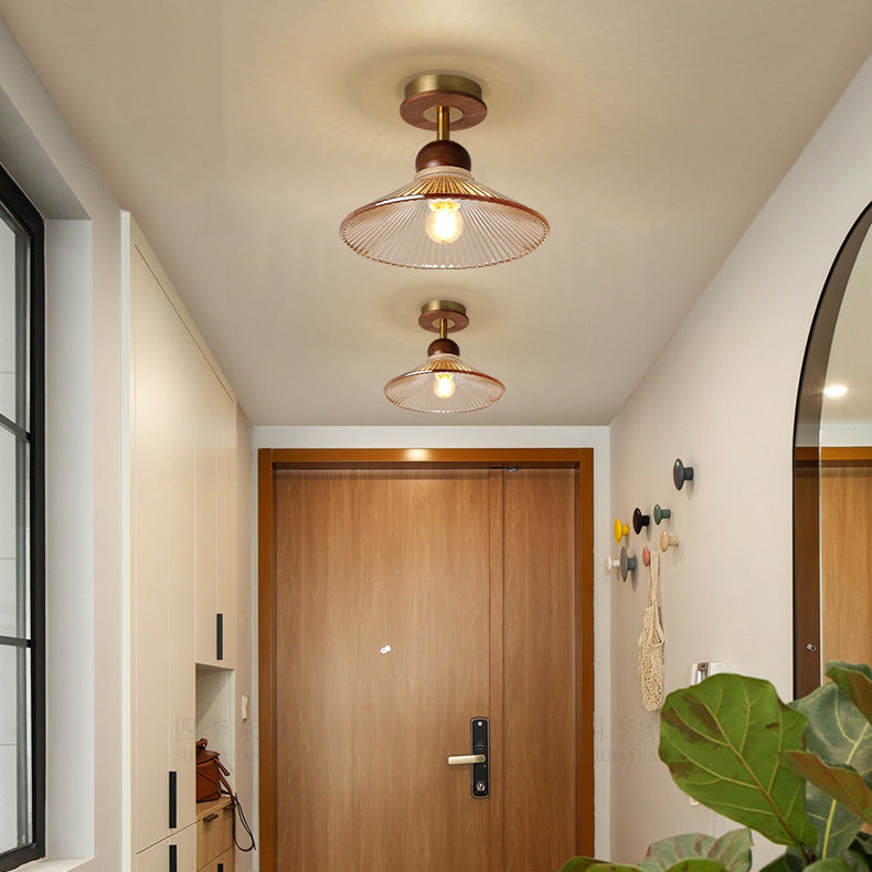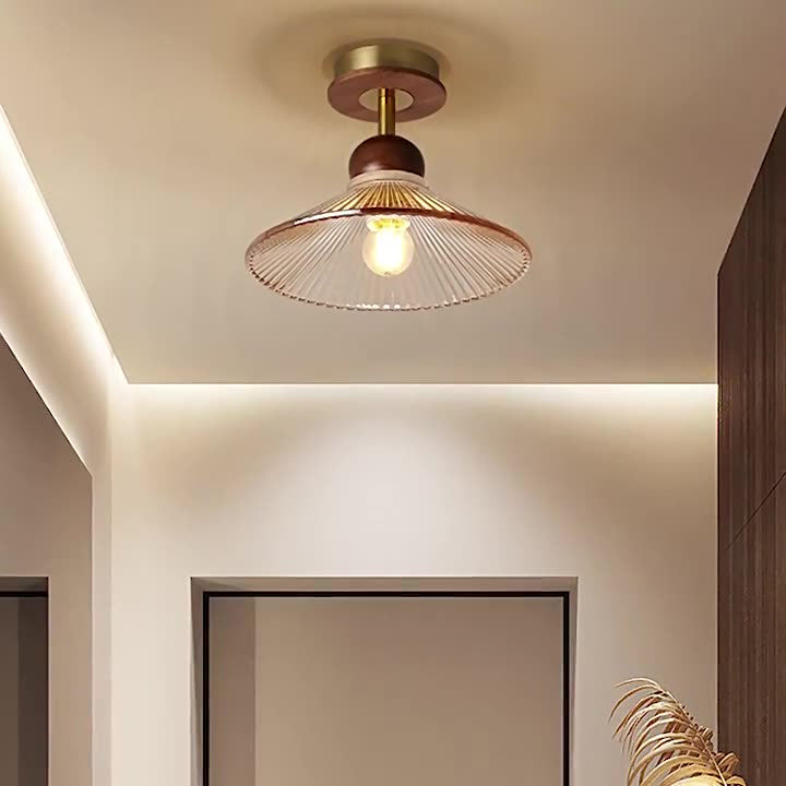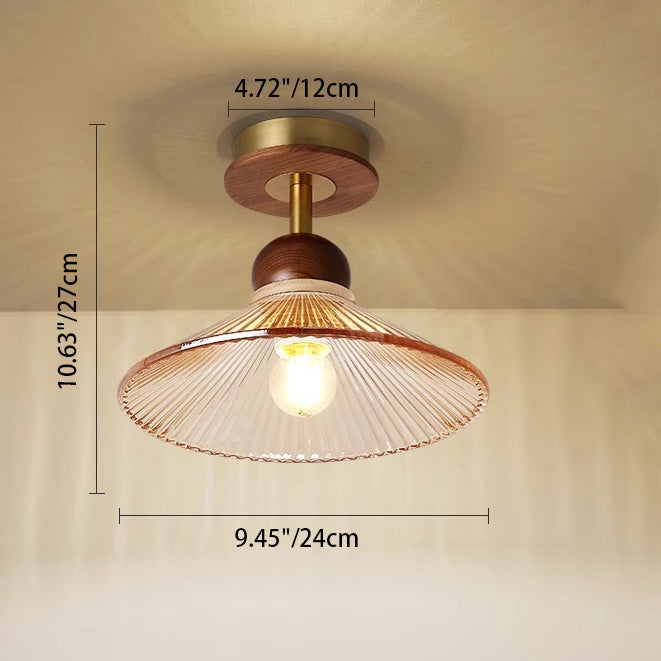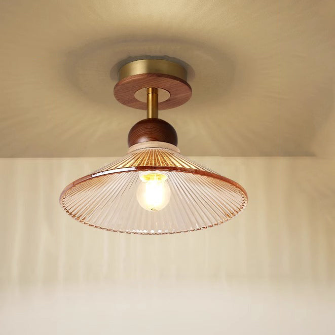 Traditional Japanese Flower Glass Shade Solid Wood 1-Light Semi-Flush Mount Ceiling Light For Living Room